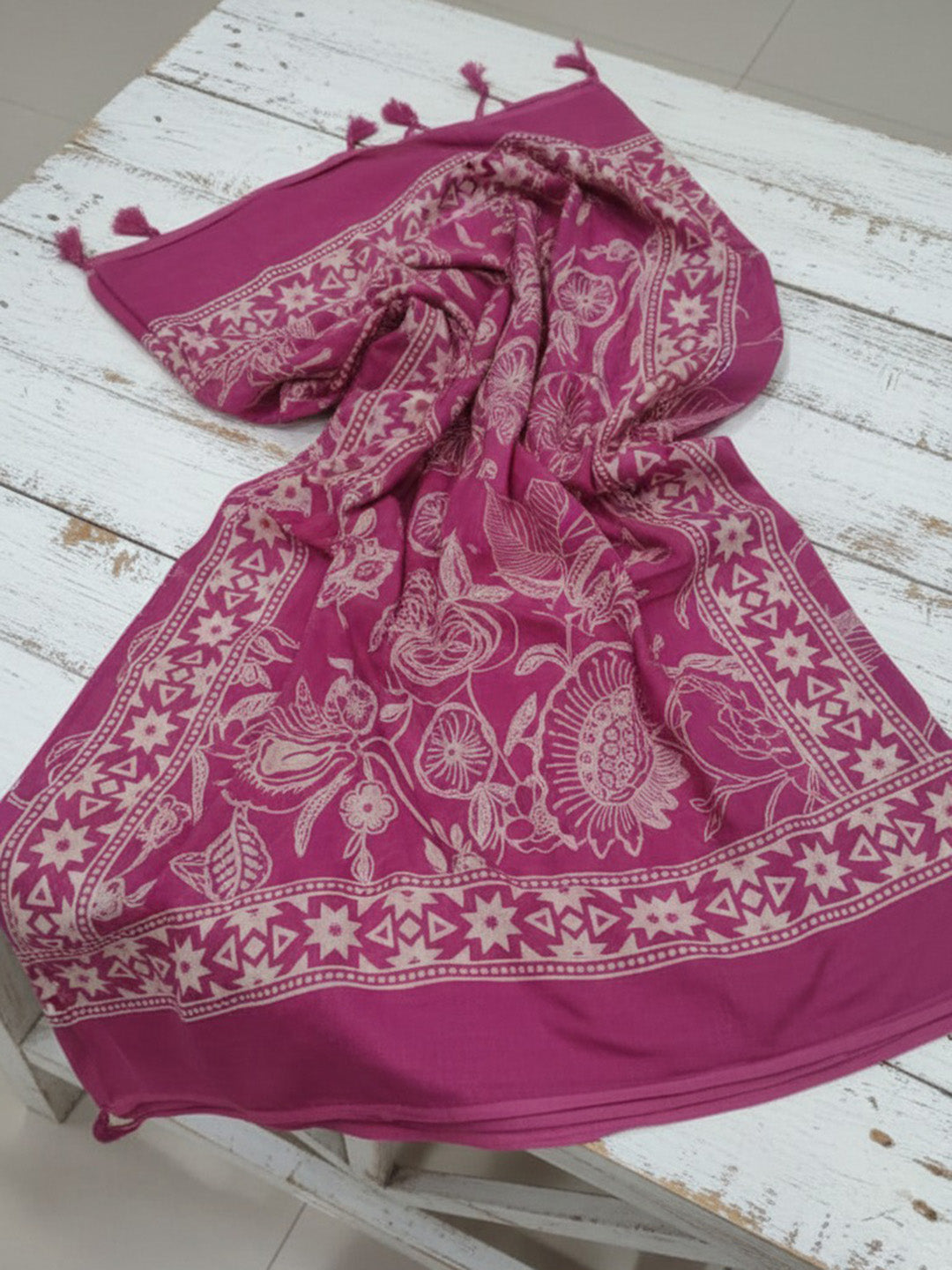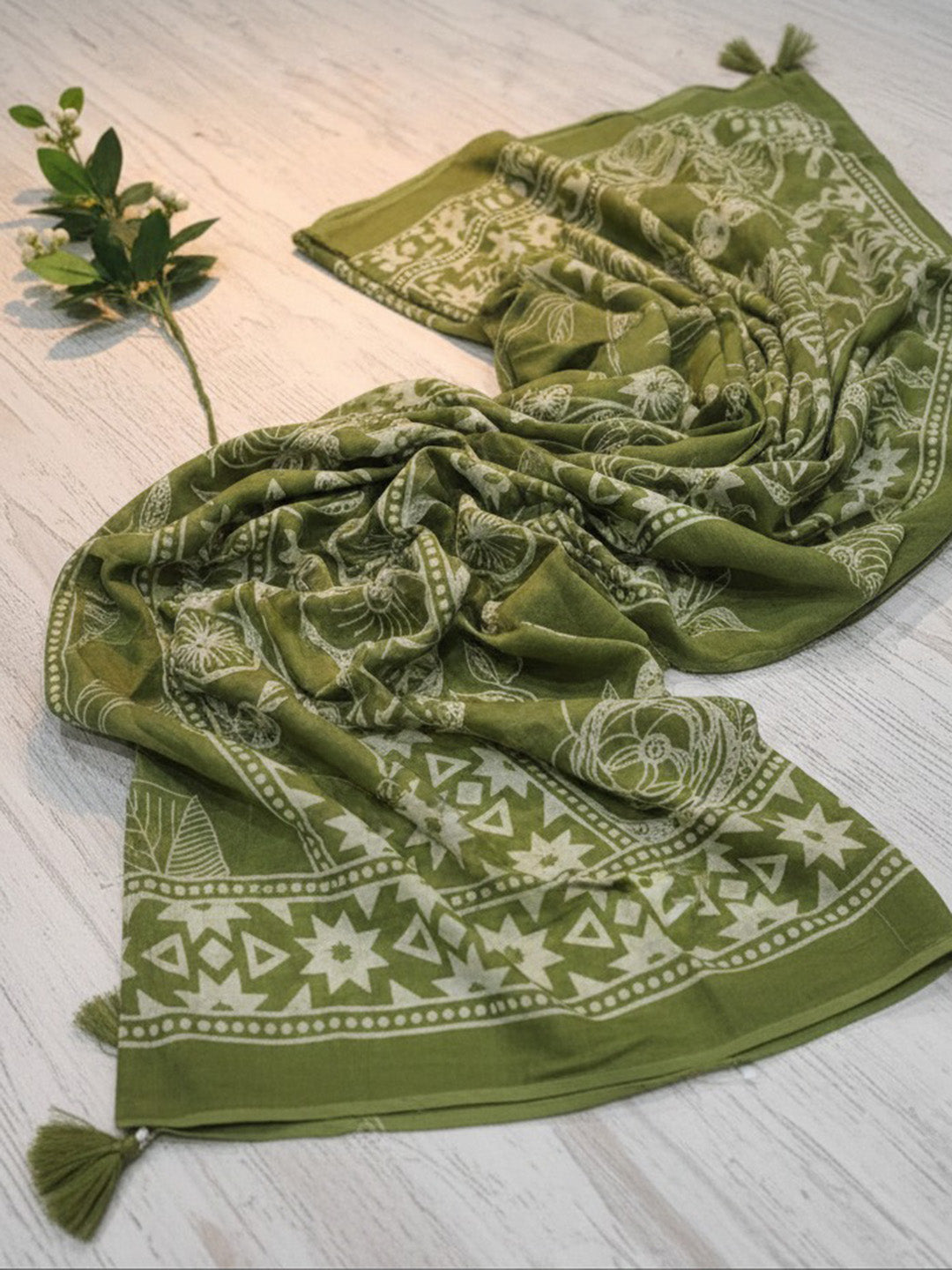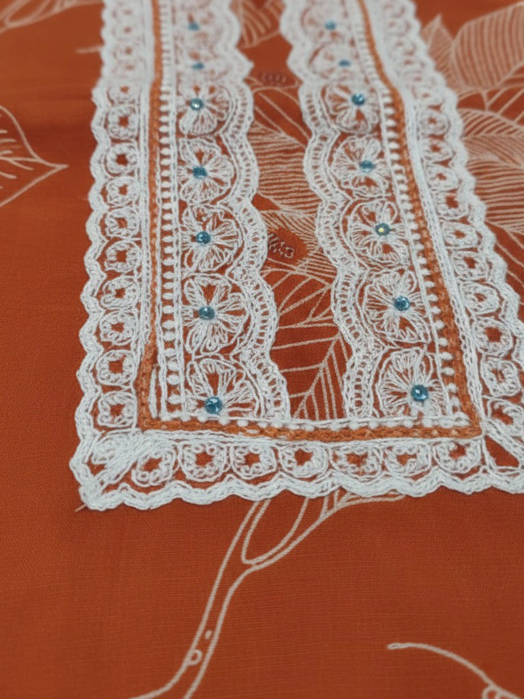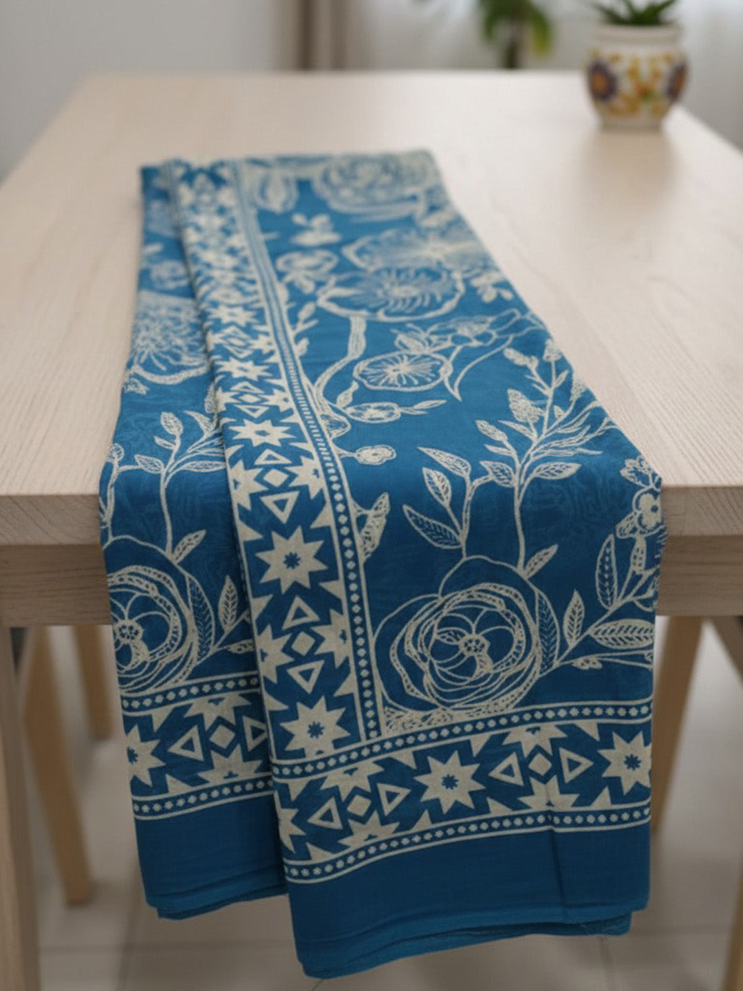 Printed Cotton Blend Unstitched Suit With Pant & Dupatta