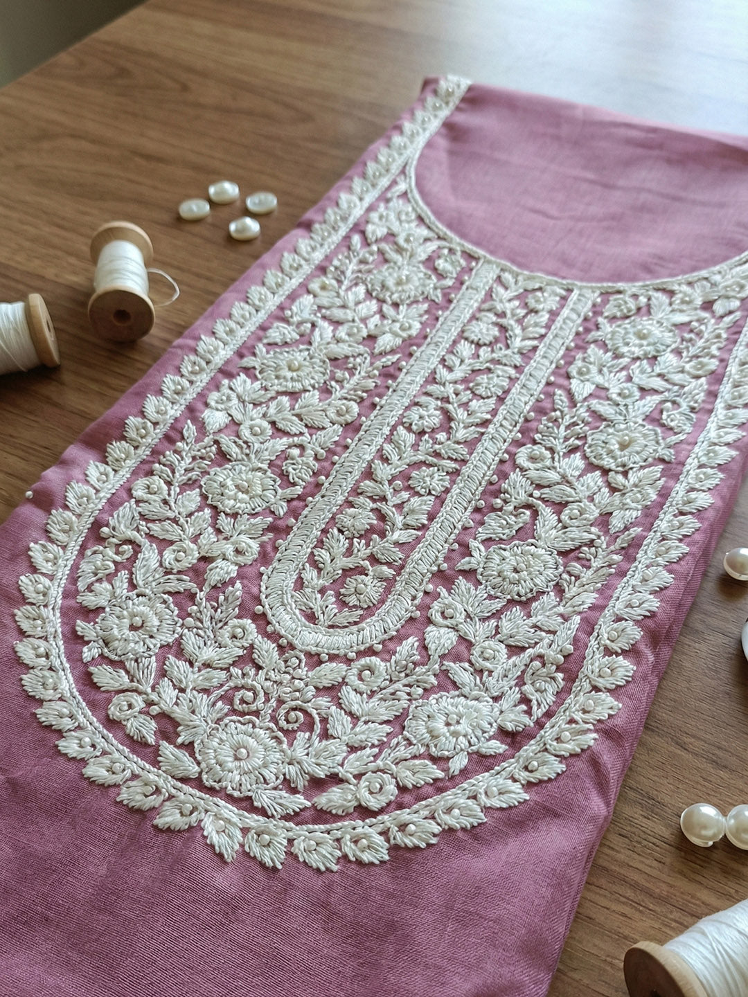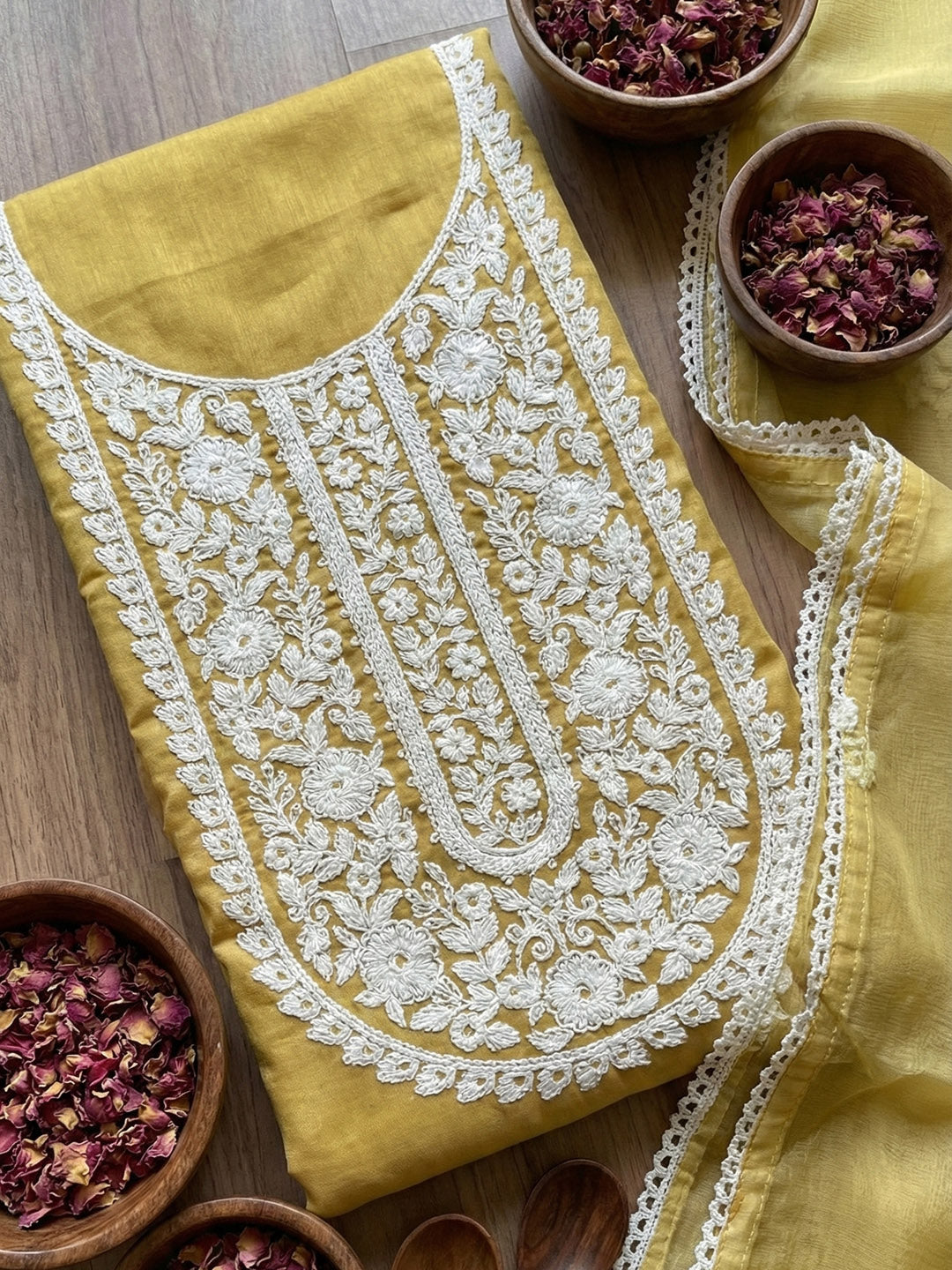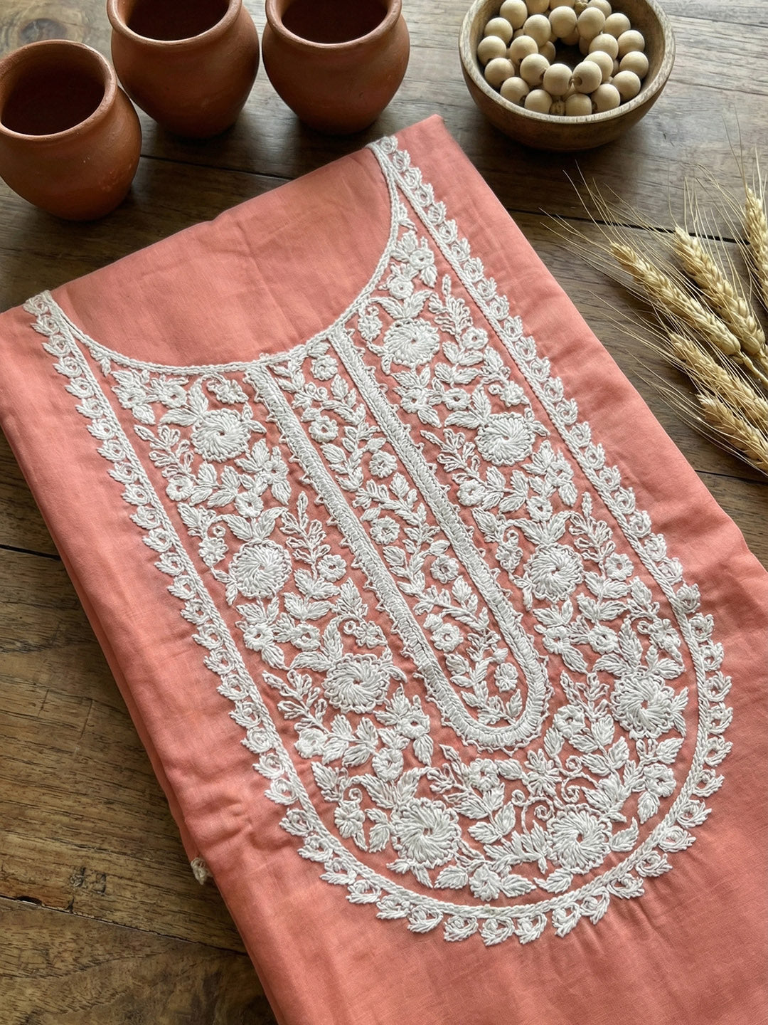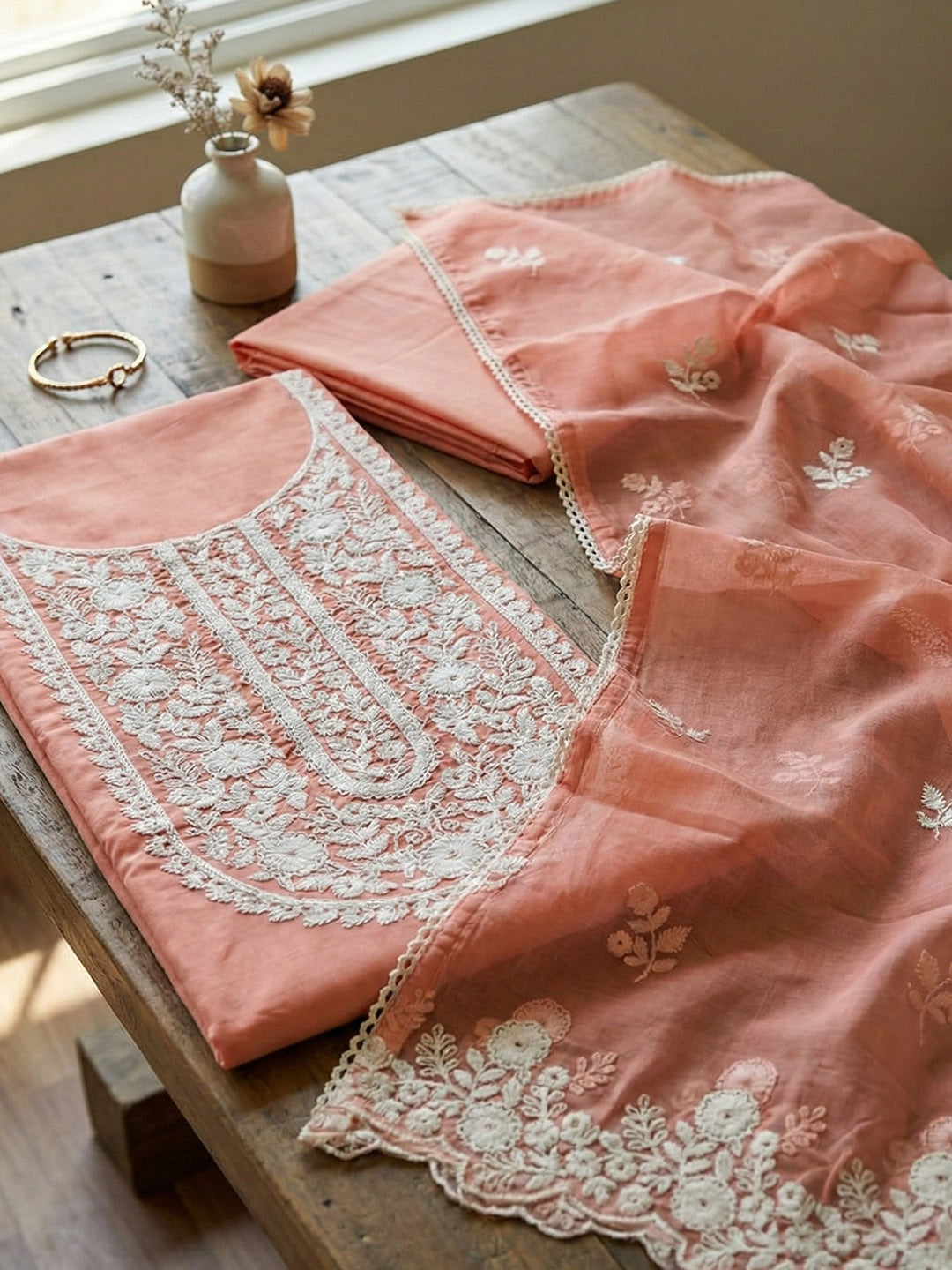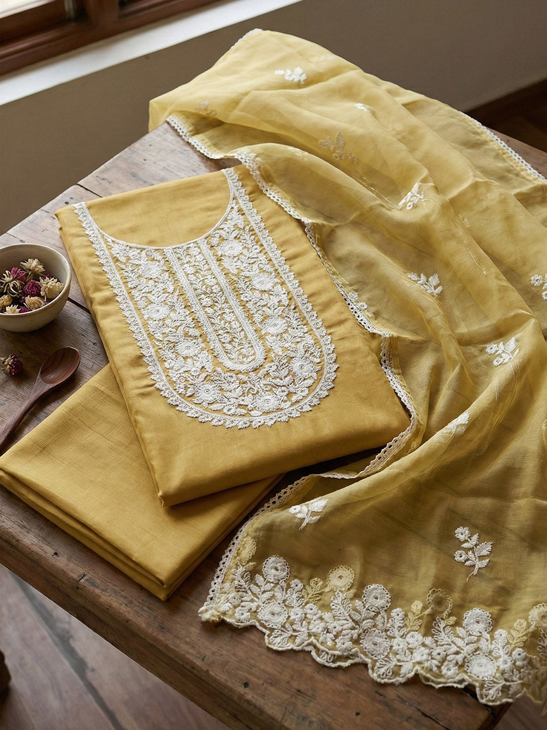 Embroidered Cotton Blend Unstitched Suit With Pant & Dupatta