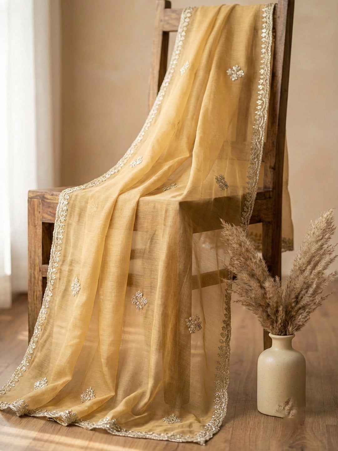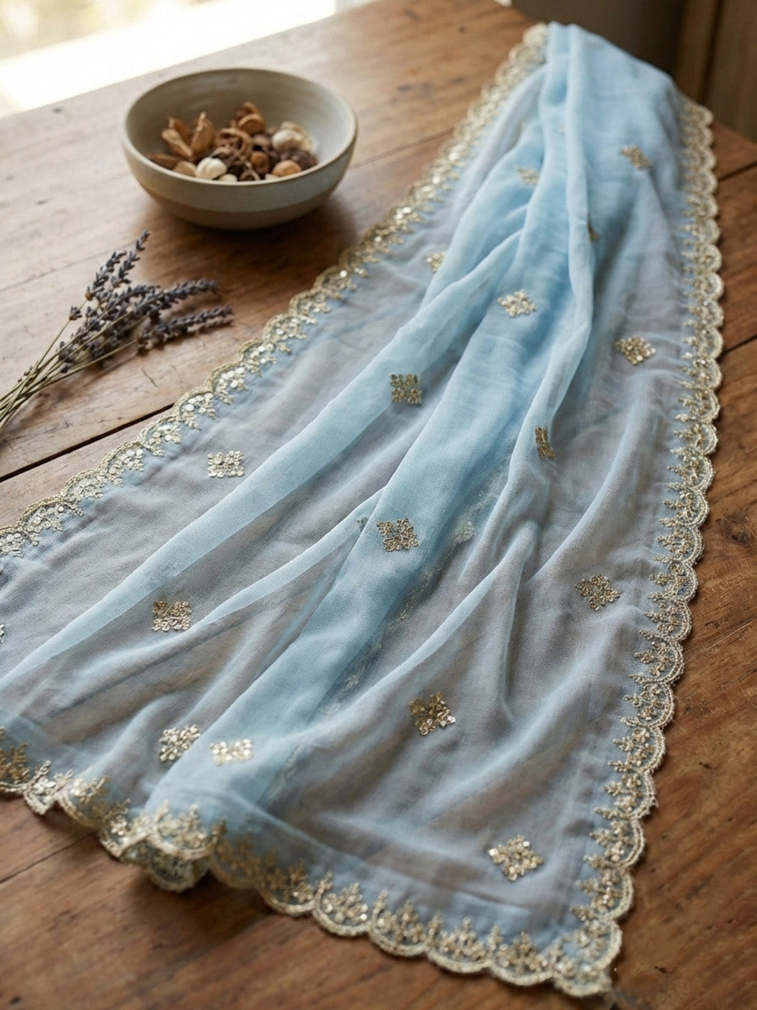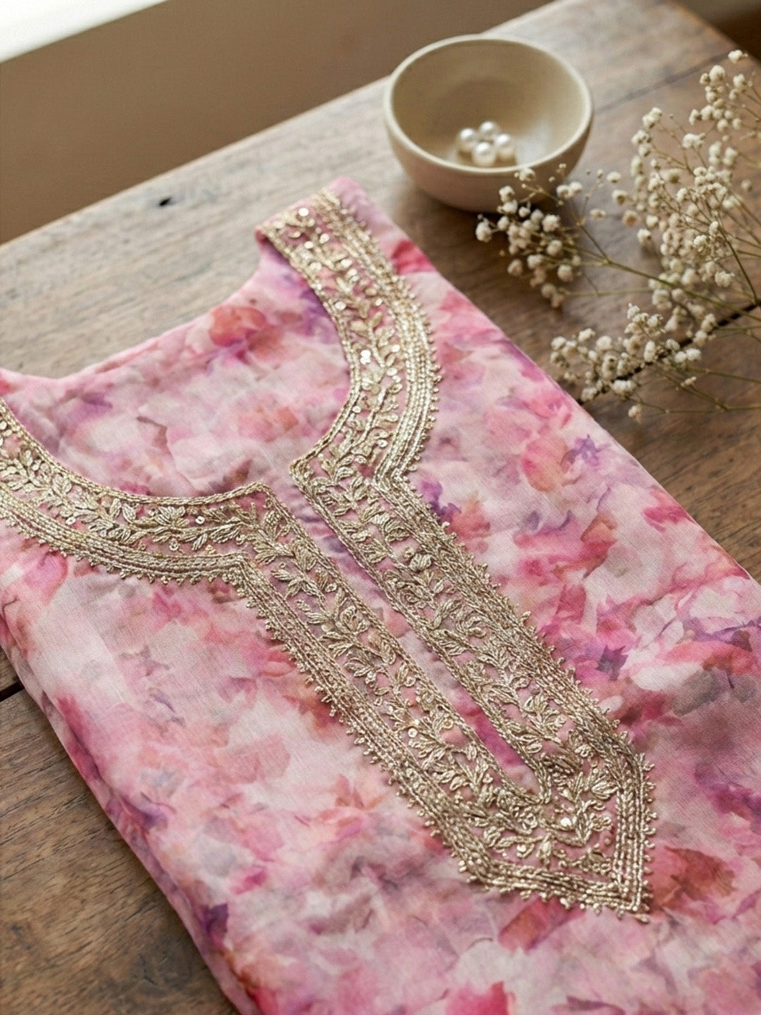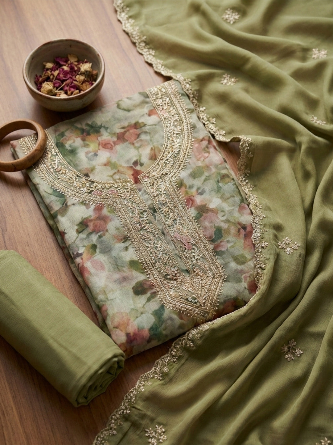 Printed Cotton Blend Unstitched Suit With Pant & Dupatta