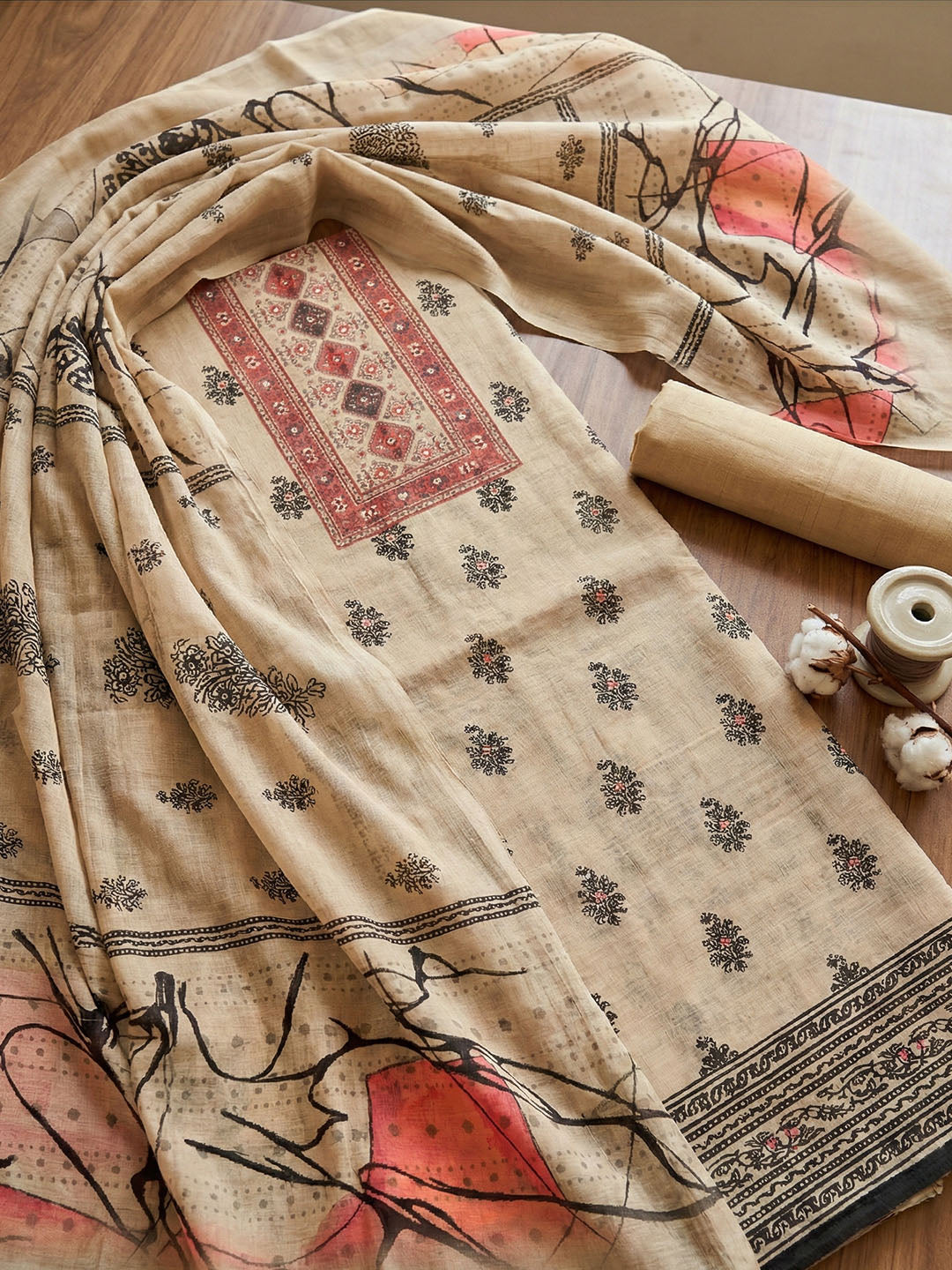 Printed Tissue Unstitched Suit With Pant & Dupatta