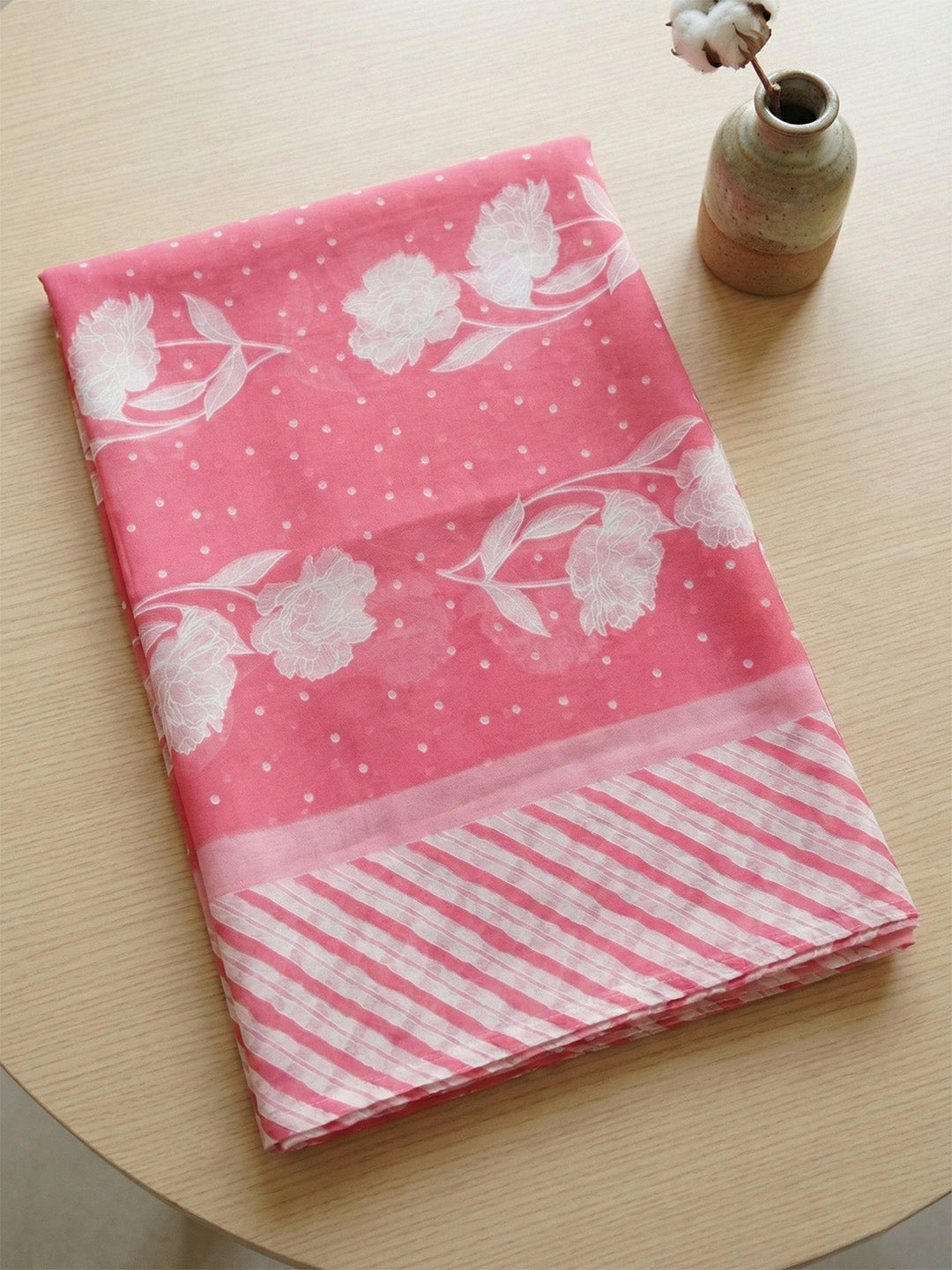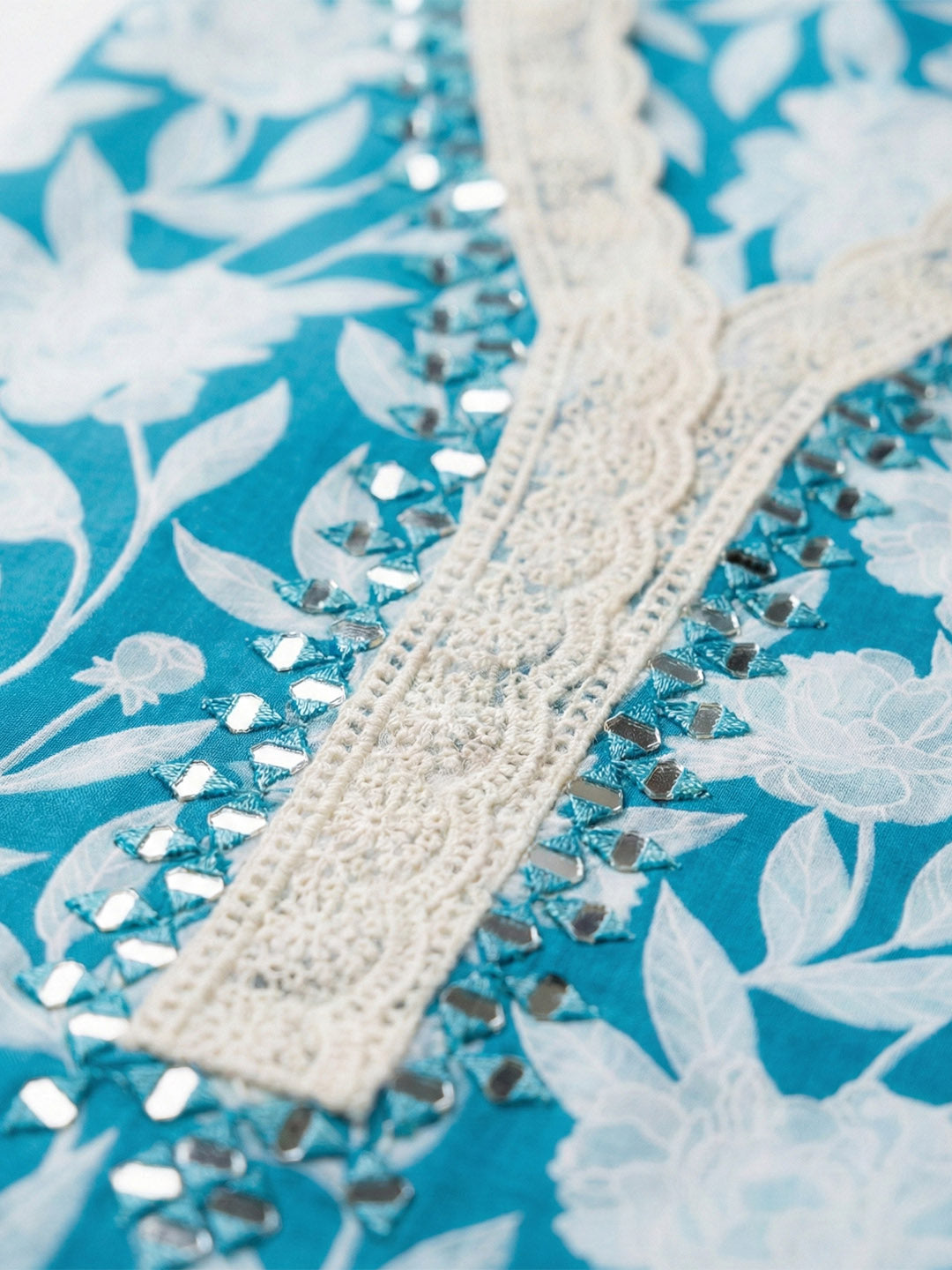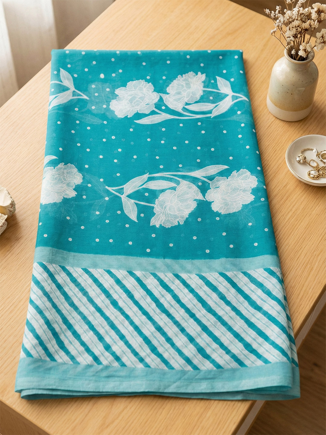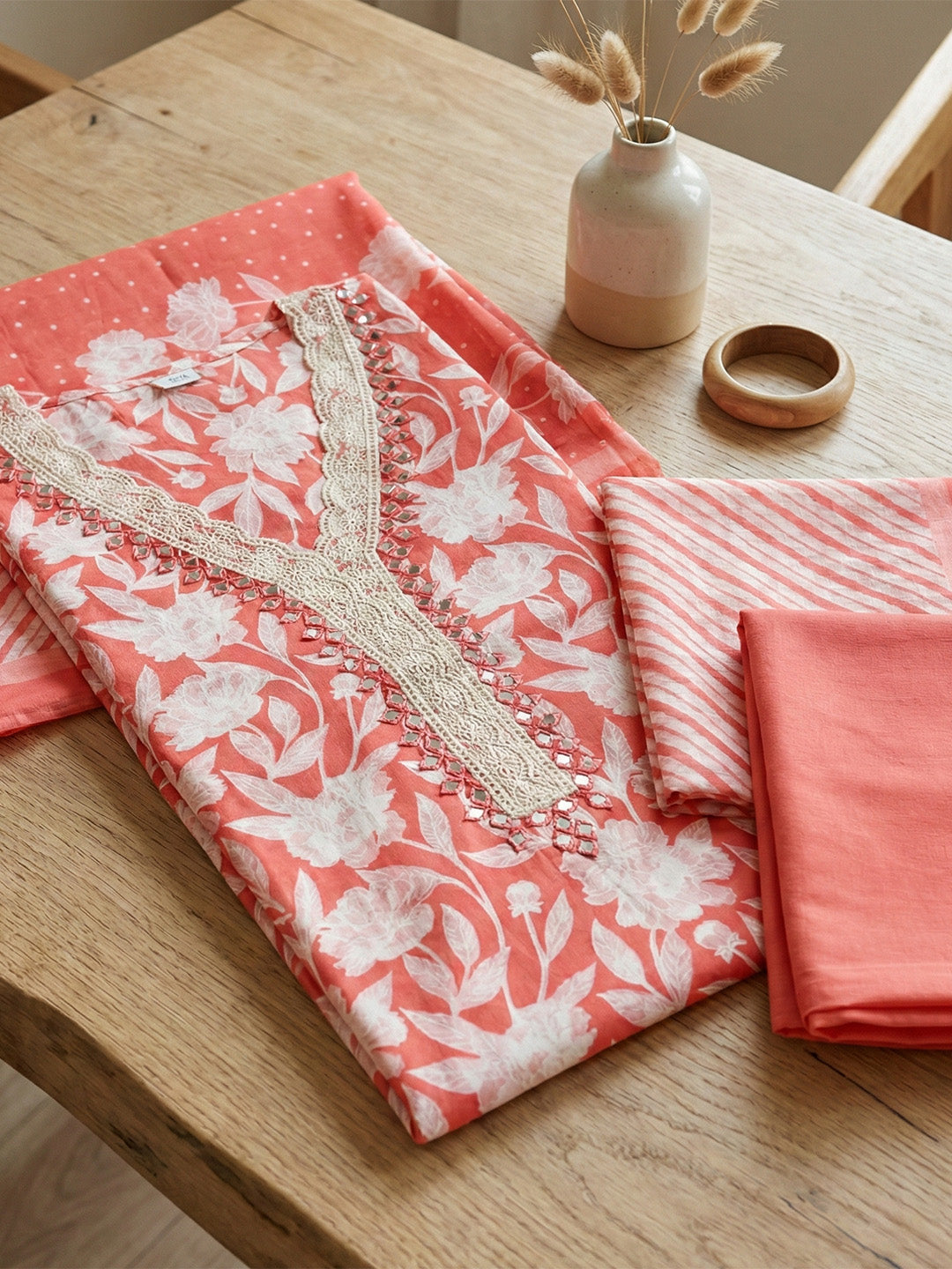 Printed Chanderi Unstitched Suit With Pant & Dupatta