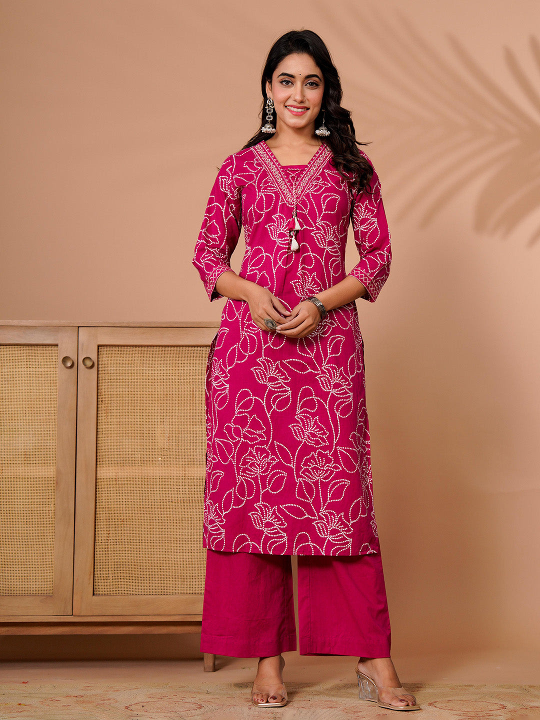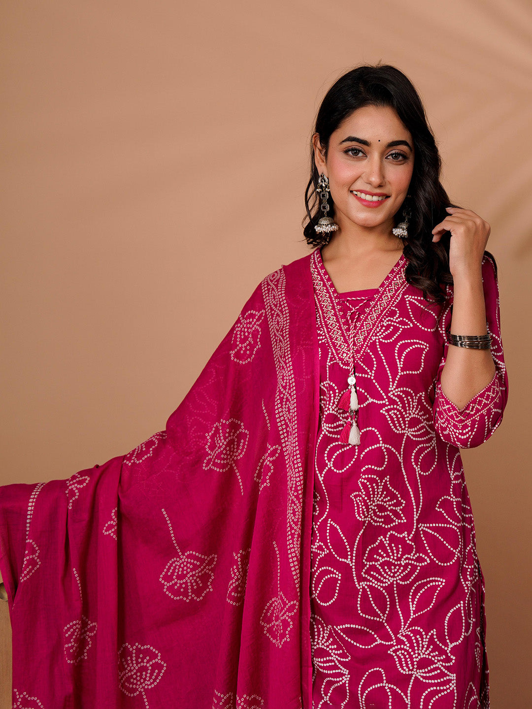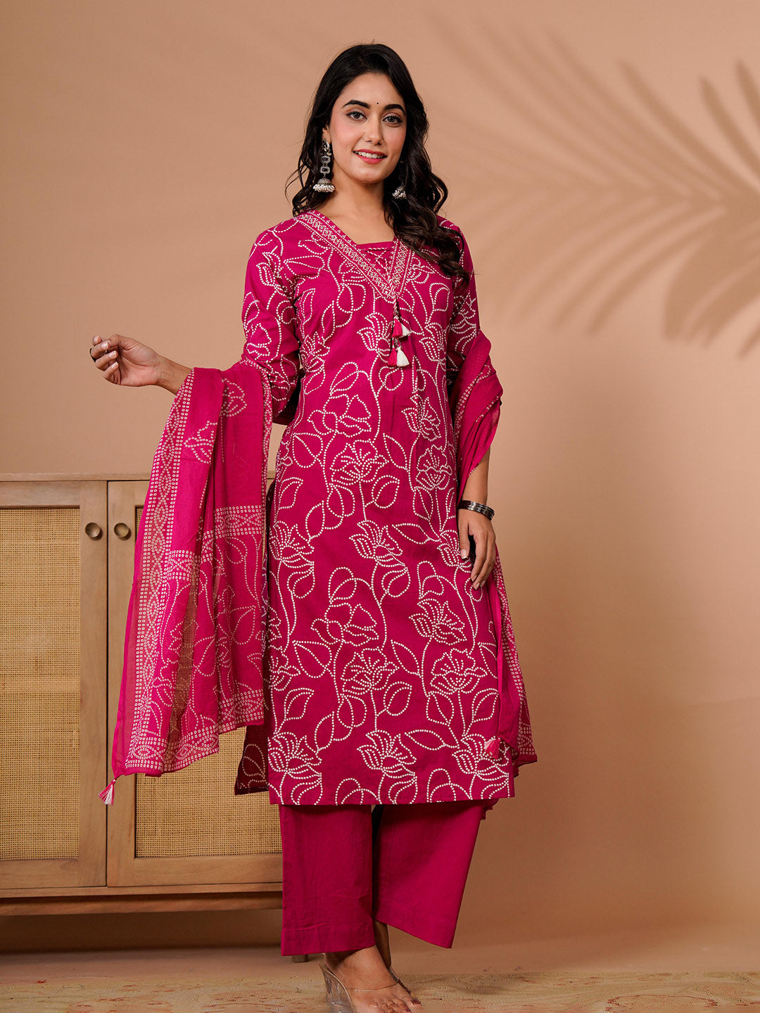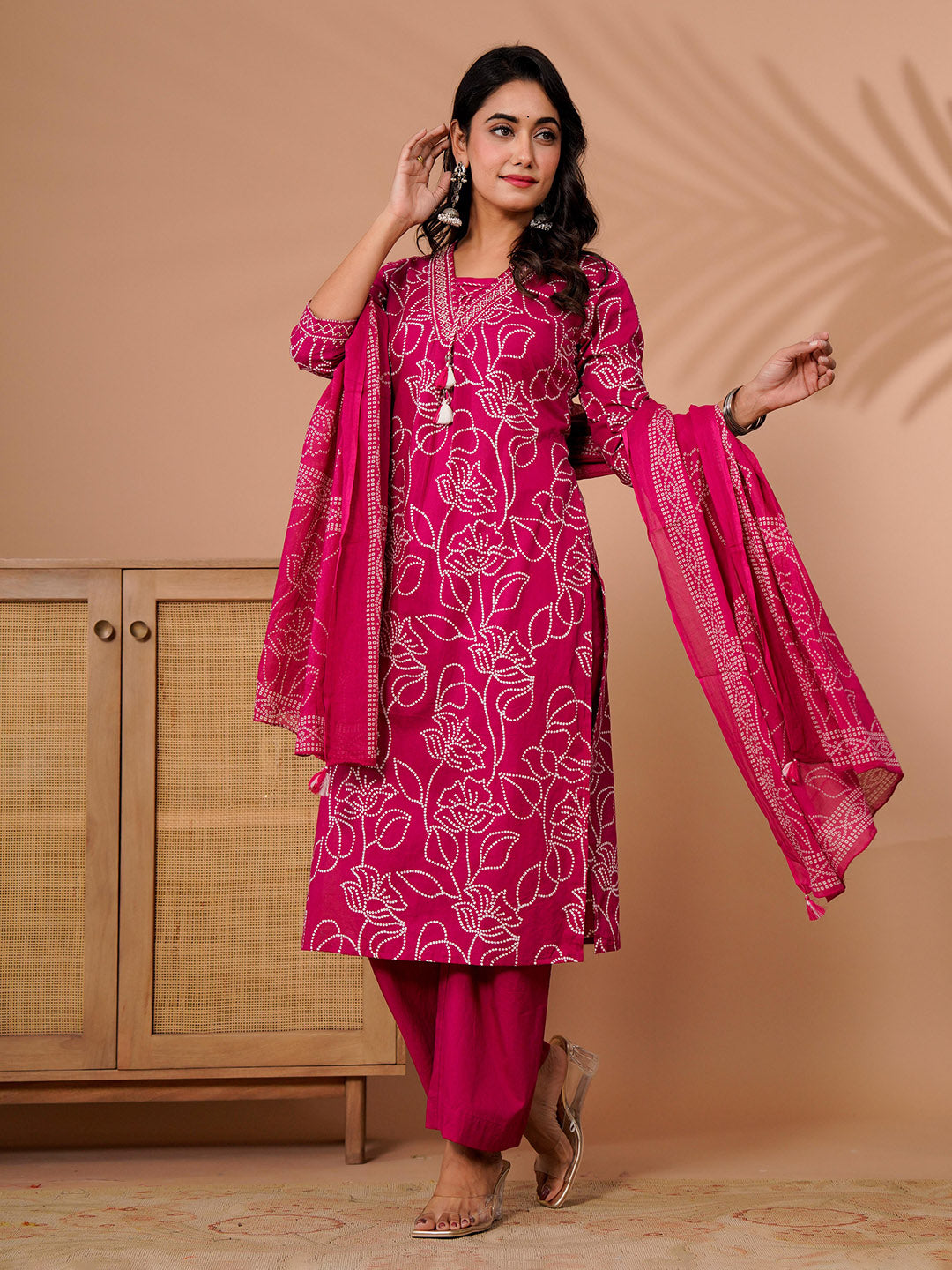 Printed Cotton Blend Kurta With Pant & Dupatta