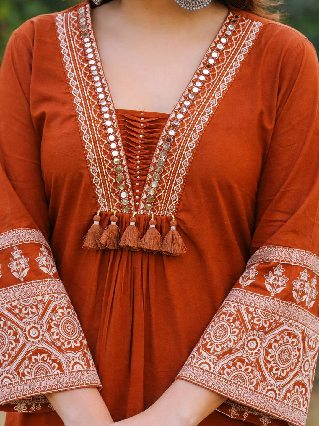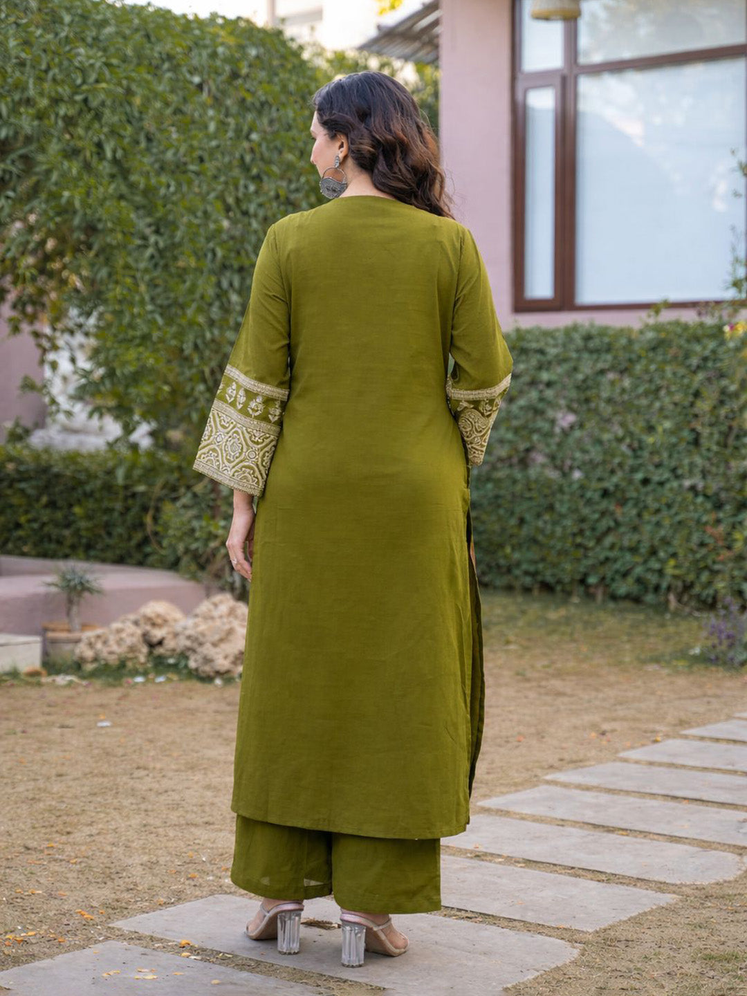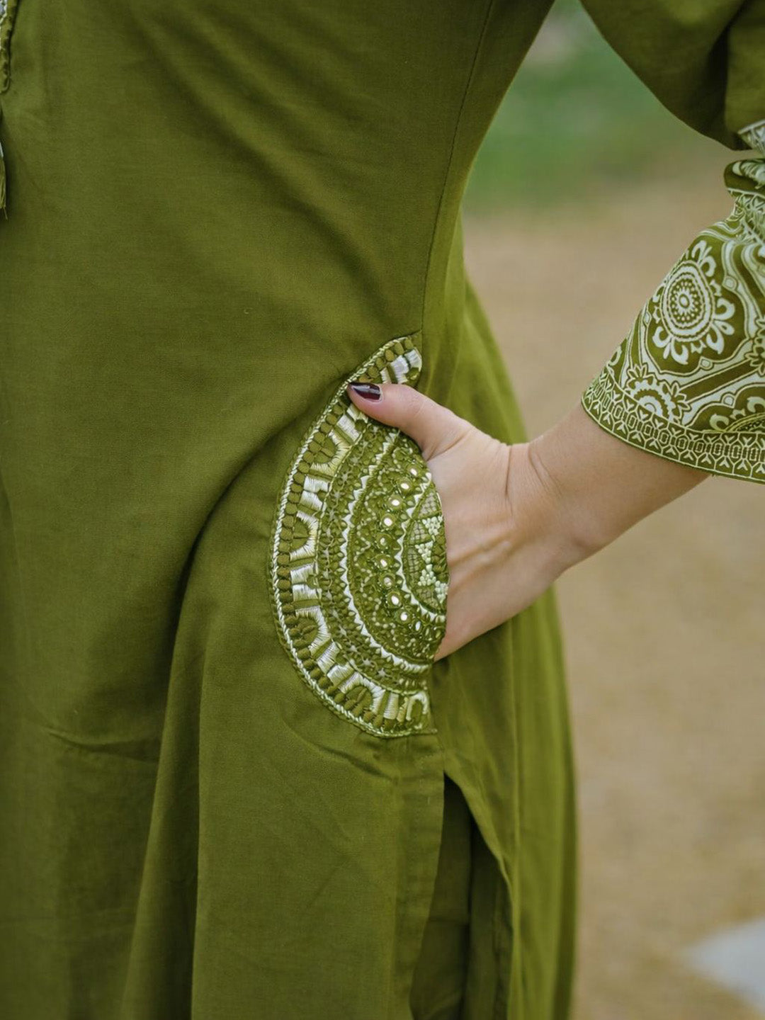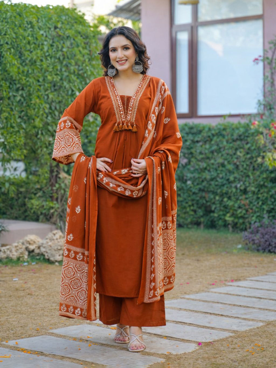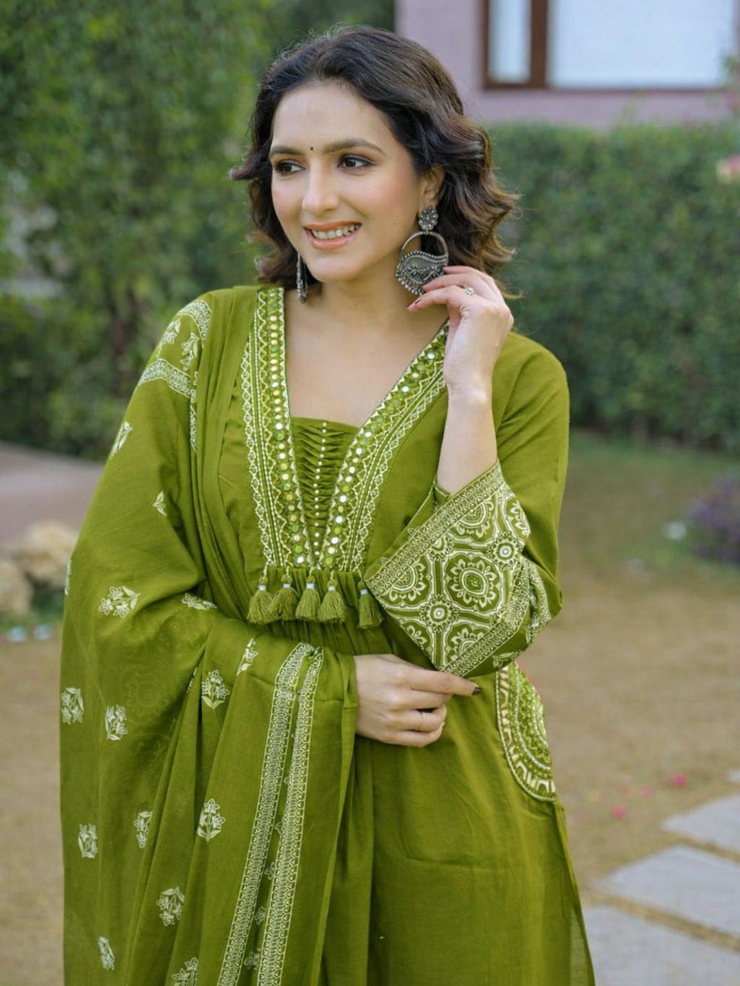 Printed Cotton Blend Kurta With Pant & Dupatta