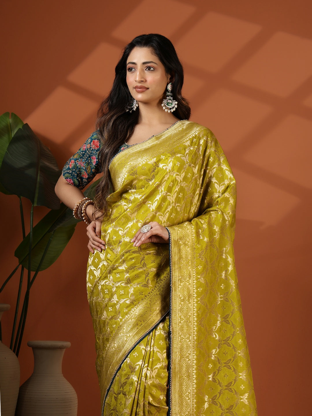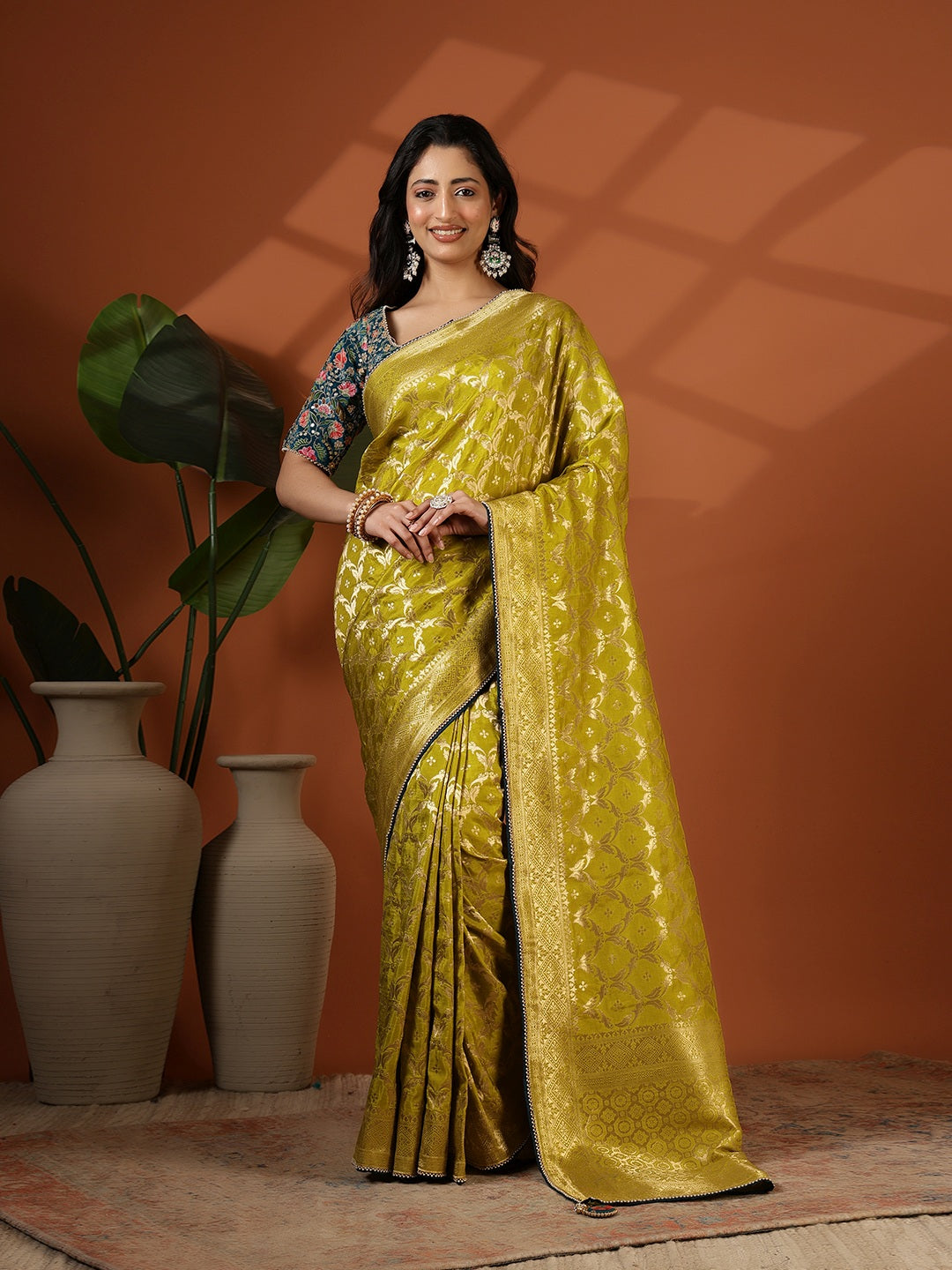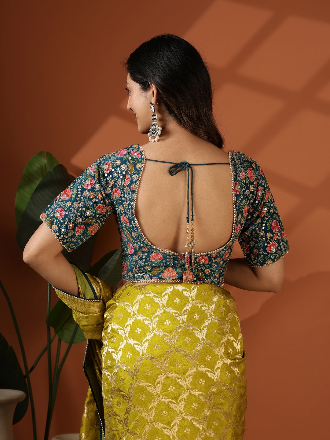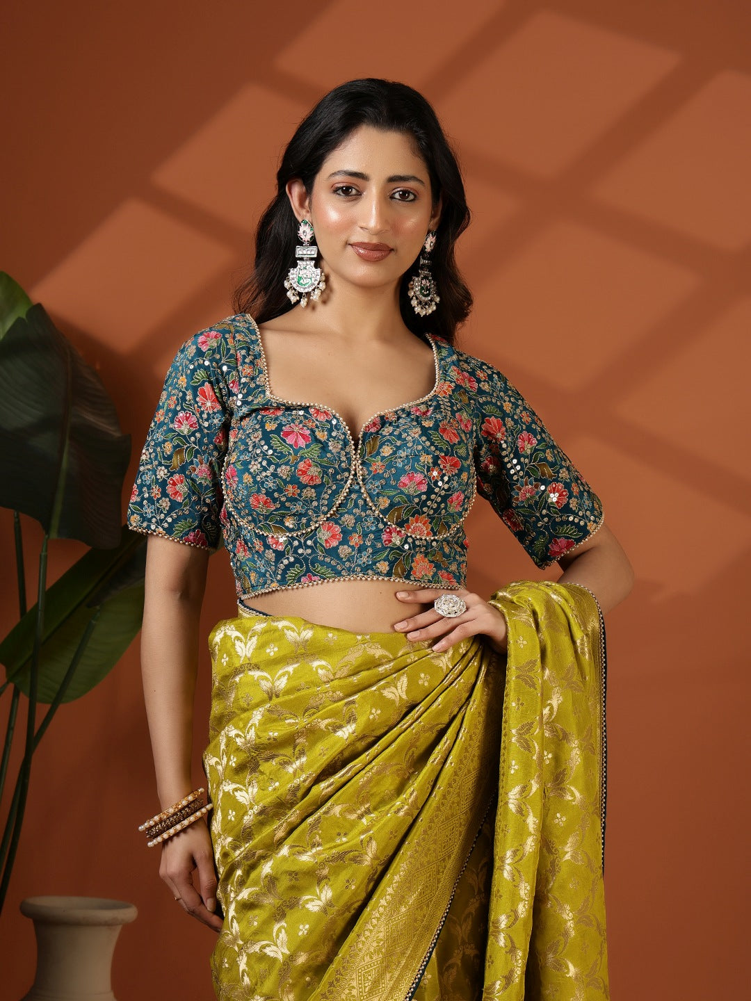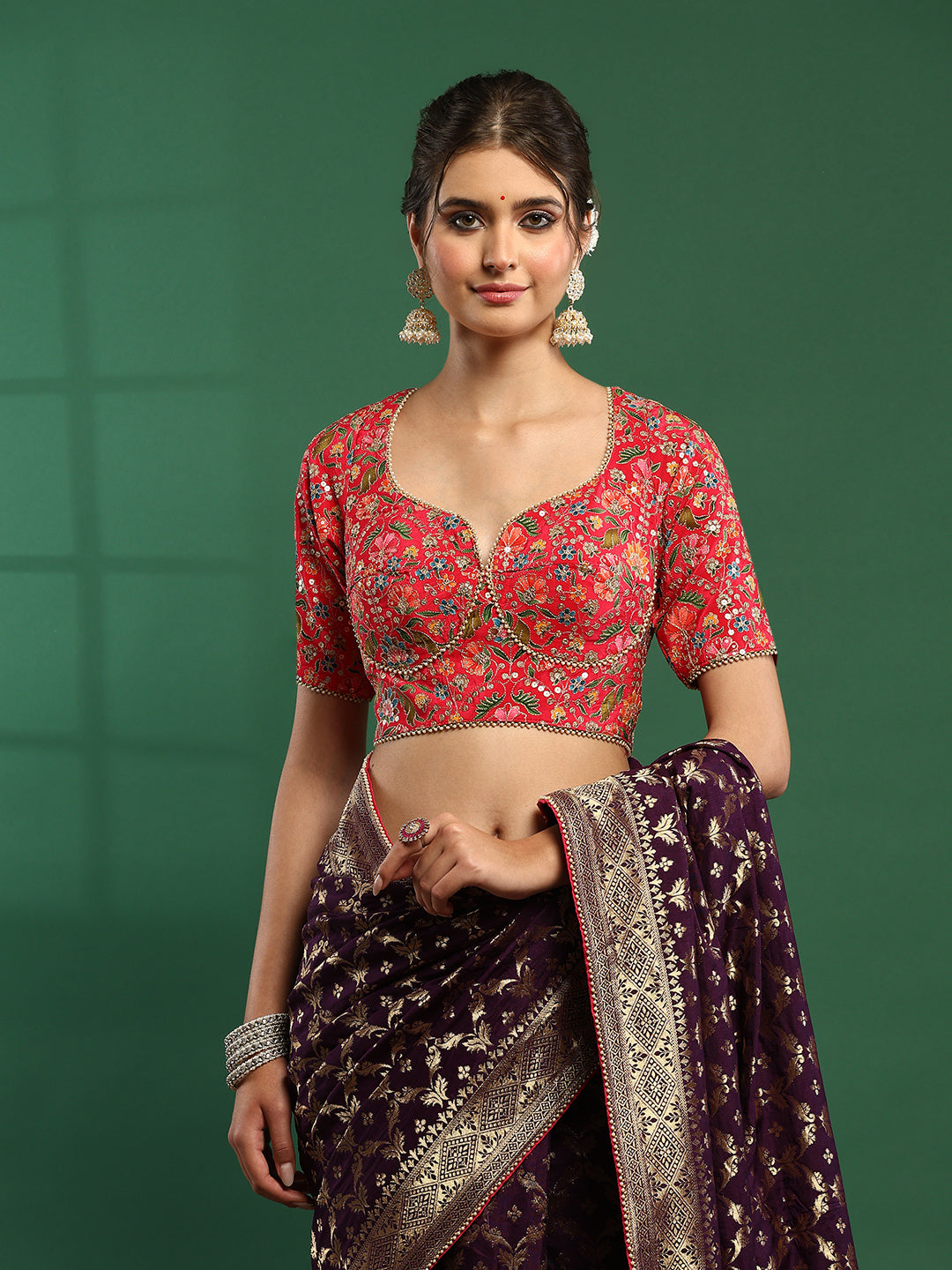 Note: The blouse shown in the pictures is just for Photoshoot purposes. The blouse you will get will be an attached running blouse.