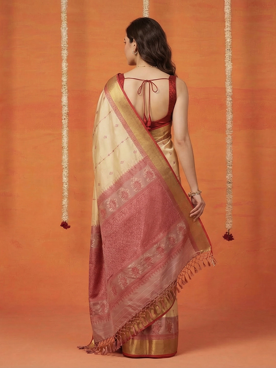 Note: The blouse shown in the pictures is just for Photoshoot purposes. The blouse you will get will be an attached running blouse.