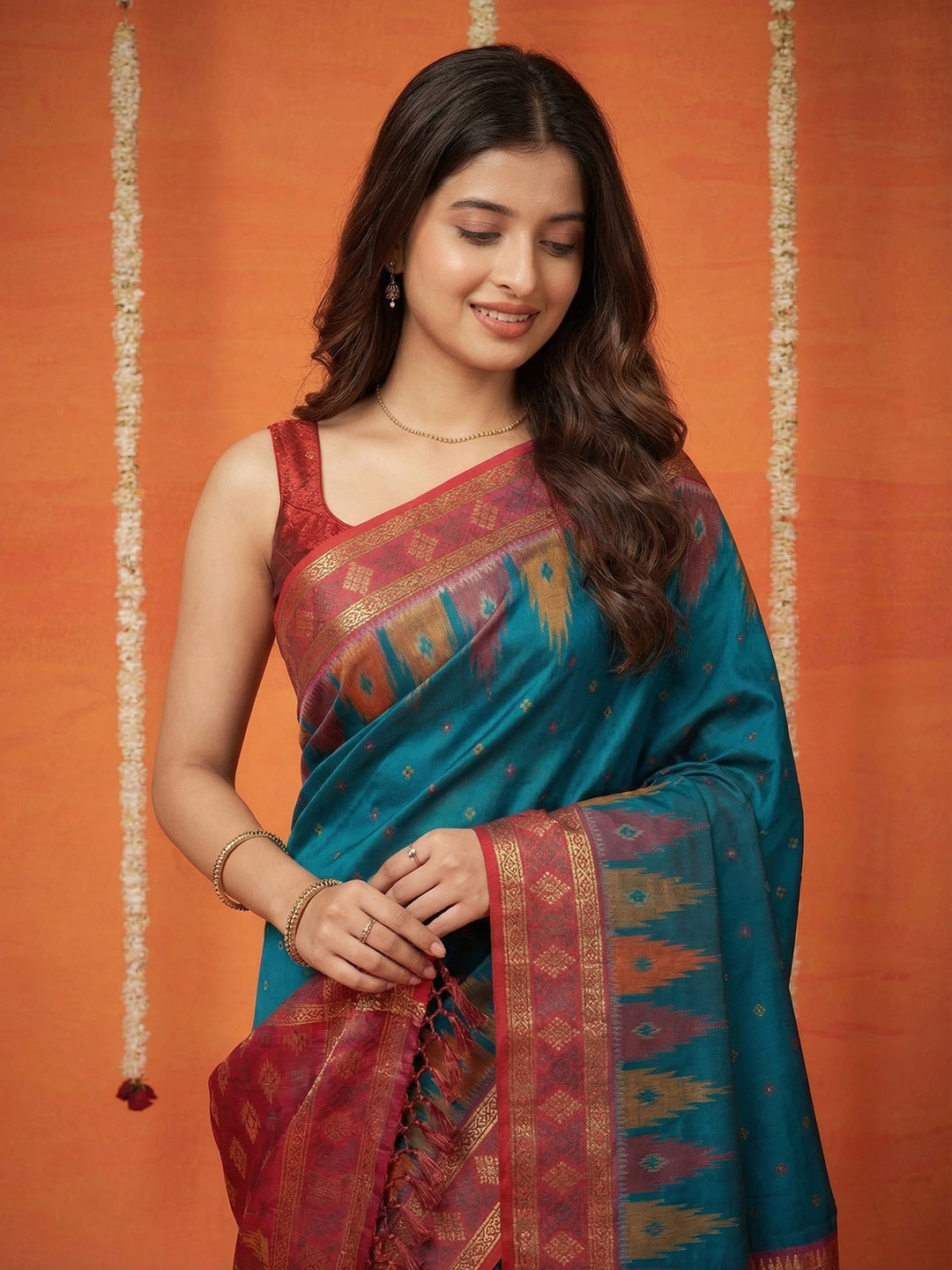 Note: The blouse shown in the pictures is just for Photoshoot purposes. The blouse you will get will be an attached running blouse.