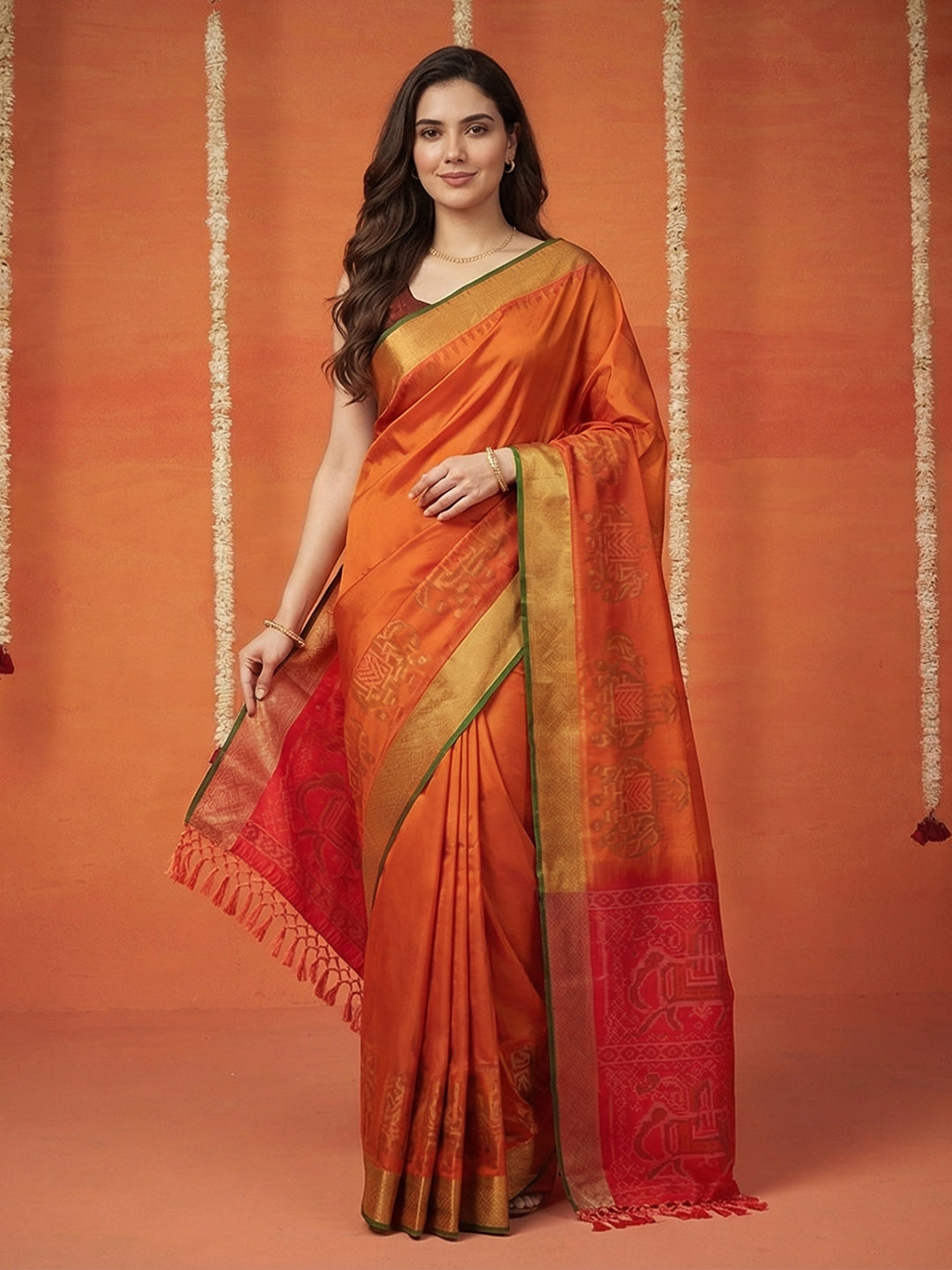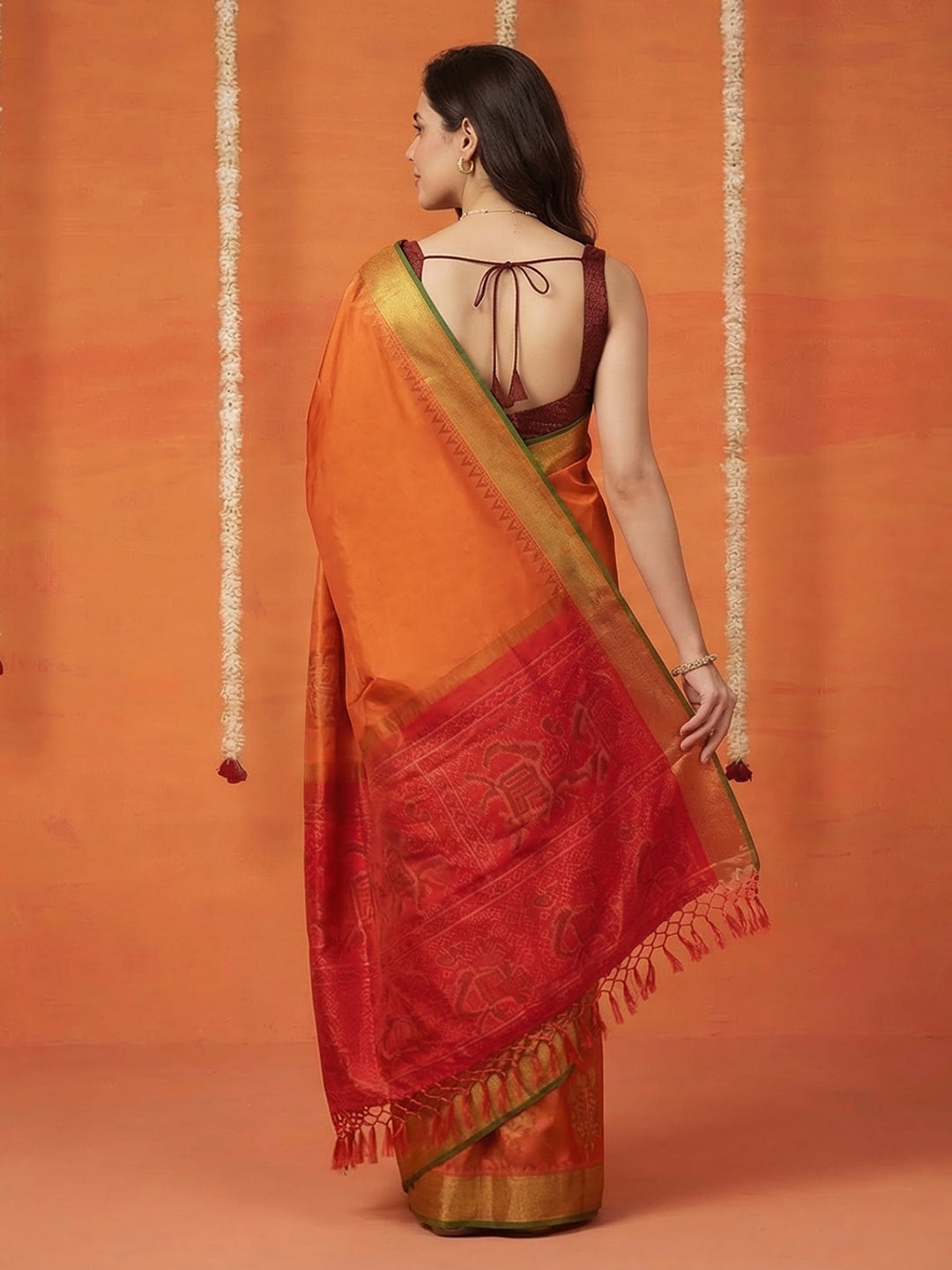 Note: The blouse shown in the pictures is just for Photoshoot purposes. The blouse you will get will be an attached running blouse.