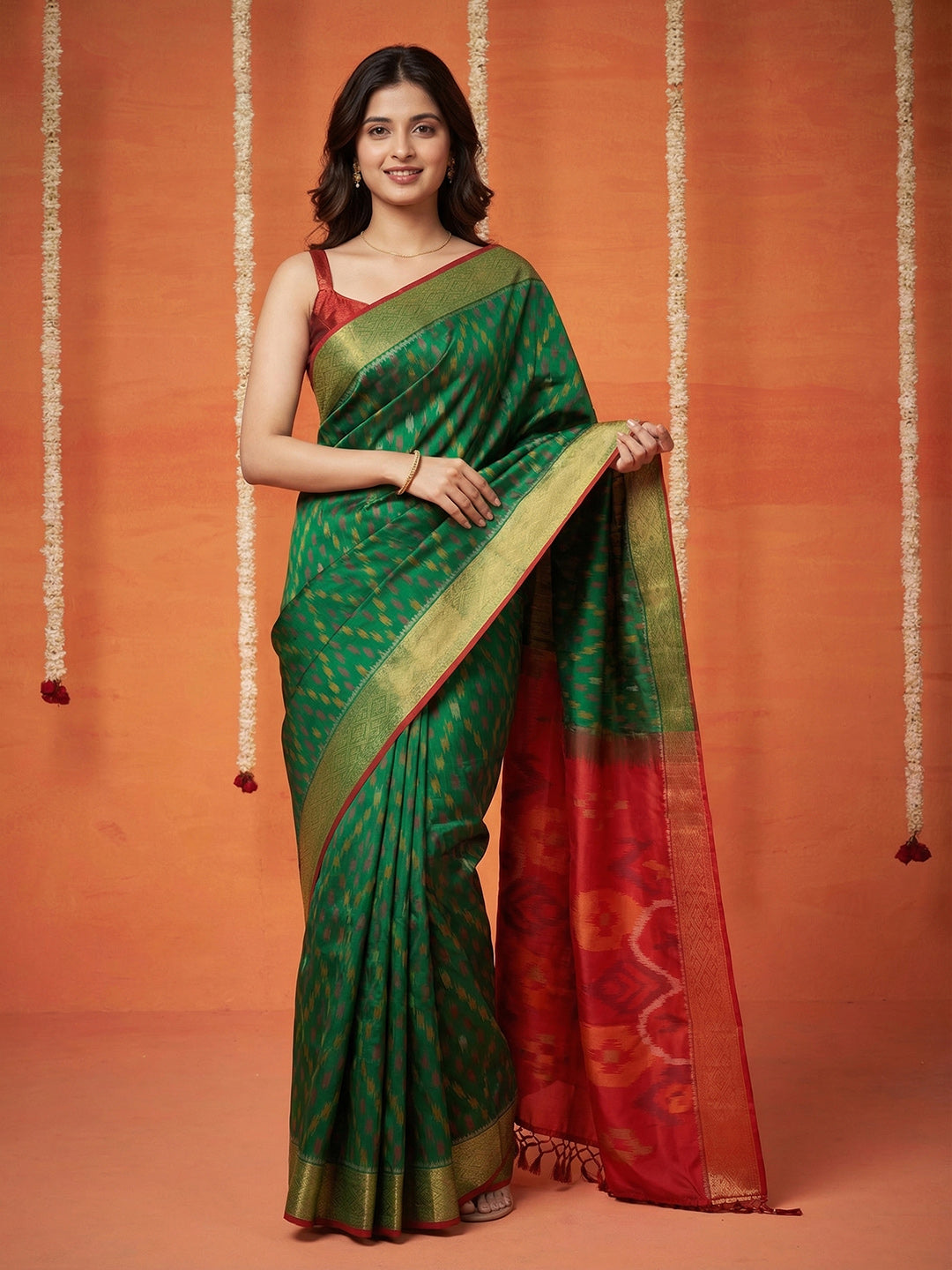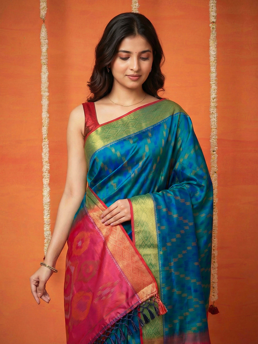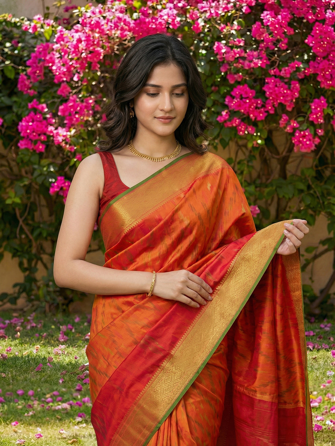 Note: The blouse shown in the pictures is just for Photoshoot purposes. The blouse you will get will be an attached running blouse.
