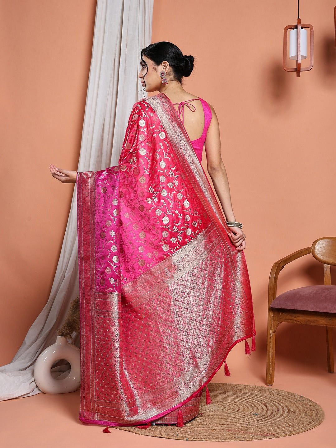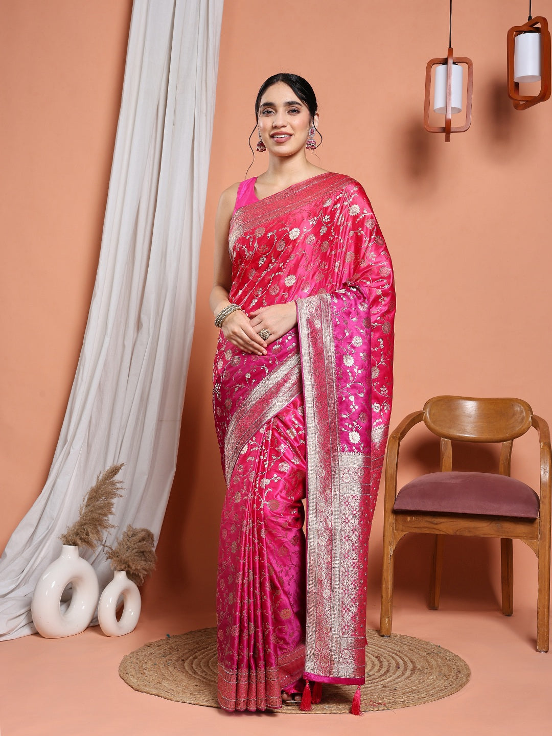 Note: The blouse shown in the pictures is just for Photoshoot purposes. The blouse you will get will be an attached running blouse.
