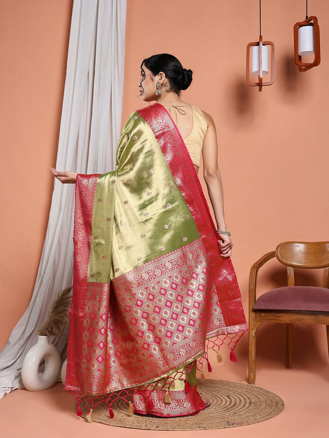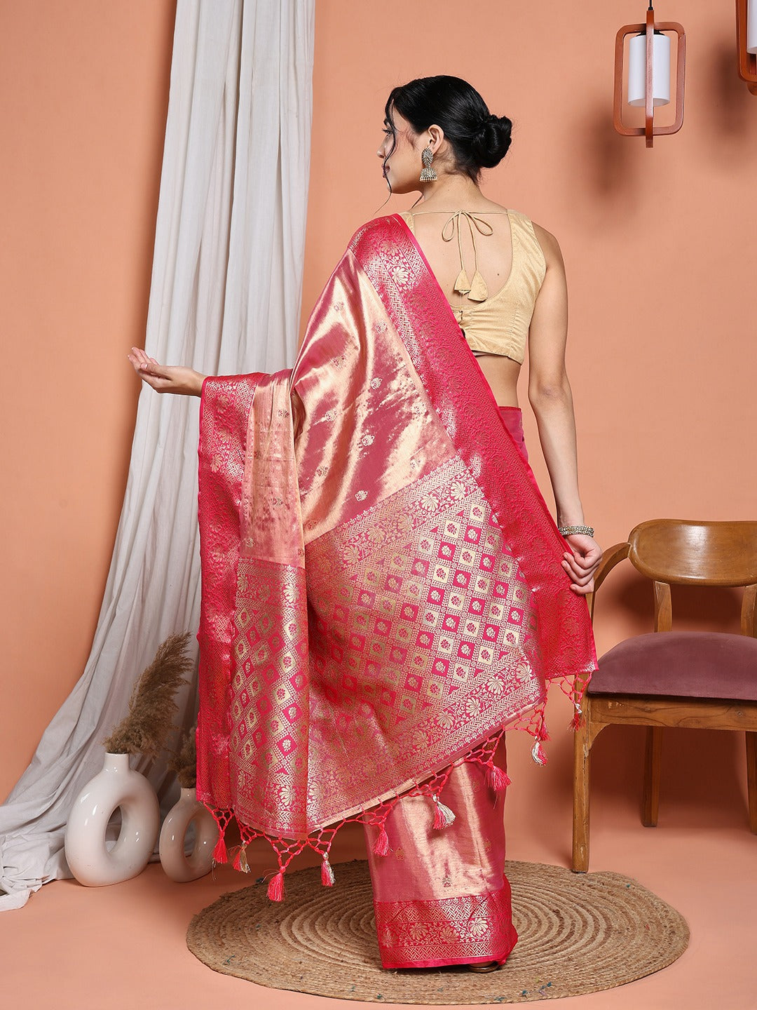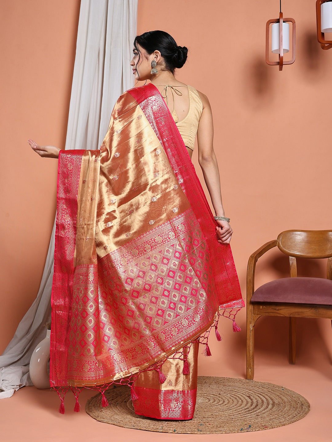 Note: The blouse shown in the pictures is just for Photoshoot purposes. The blouse you will get will be an attached running blouse.