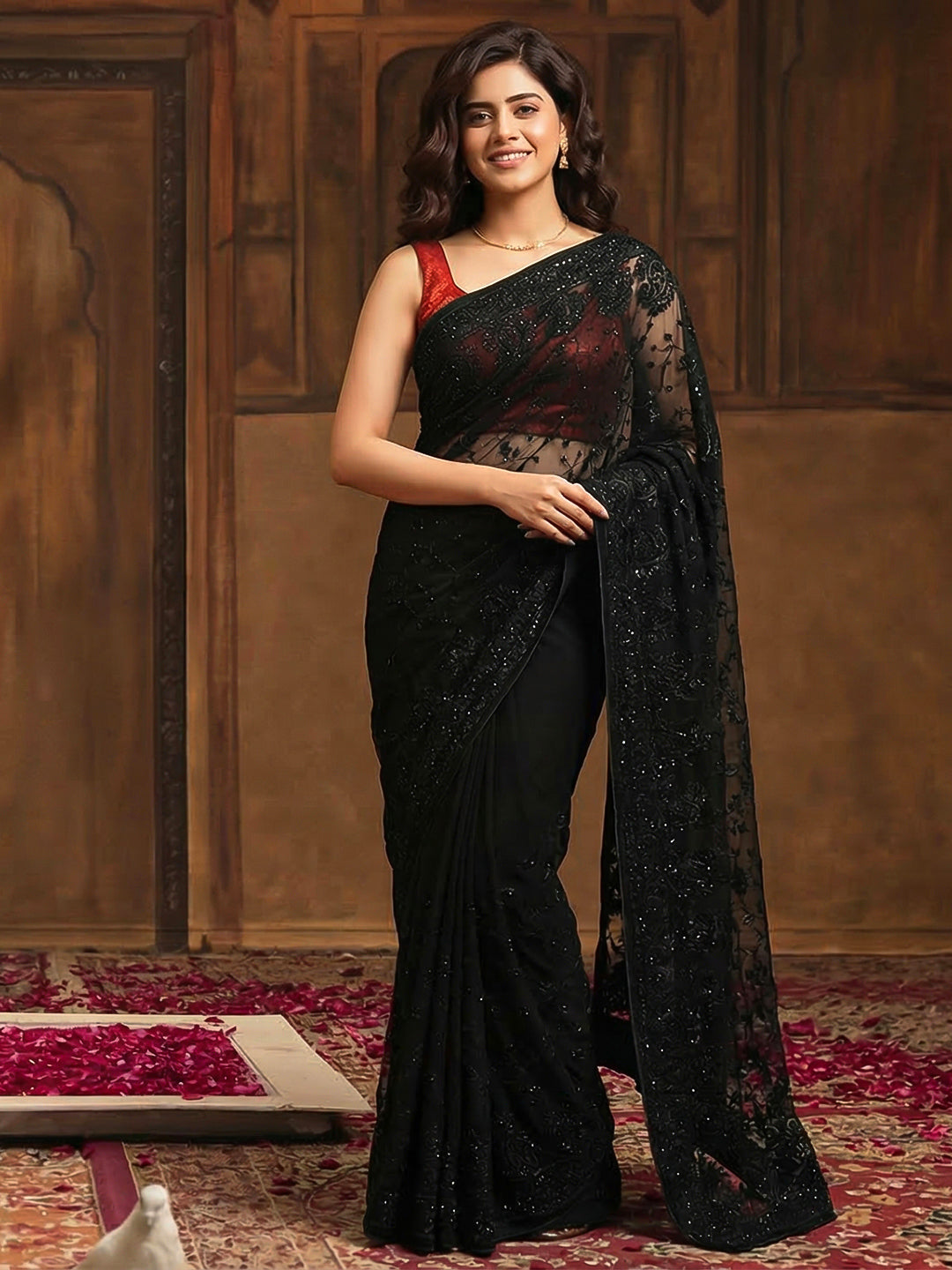 Note: The blouse shown in the pictures is just for Photoshoot purposes. The blouse you will get will be an attached running blouse.
