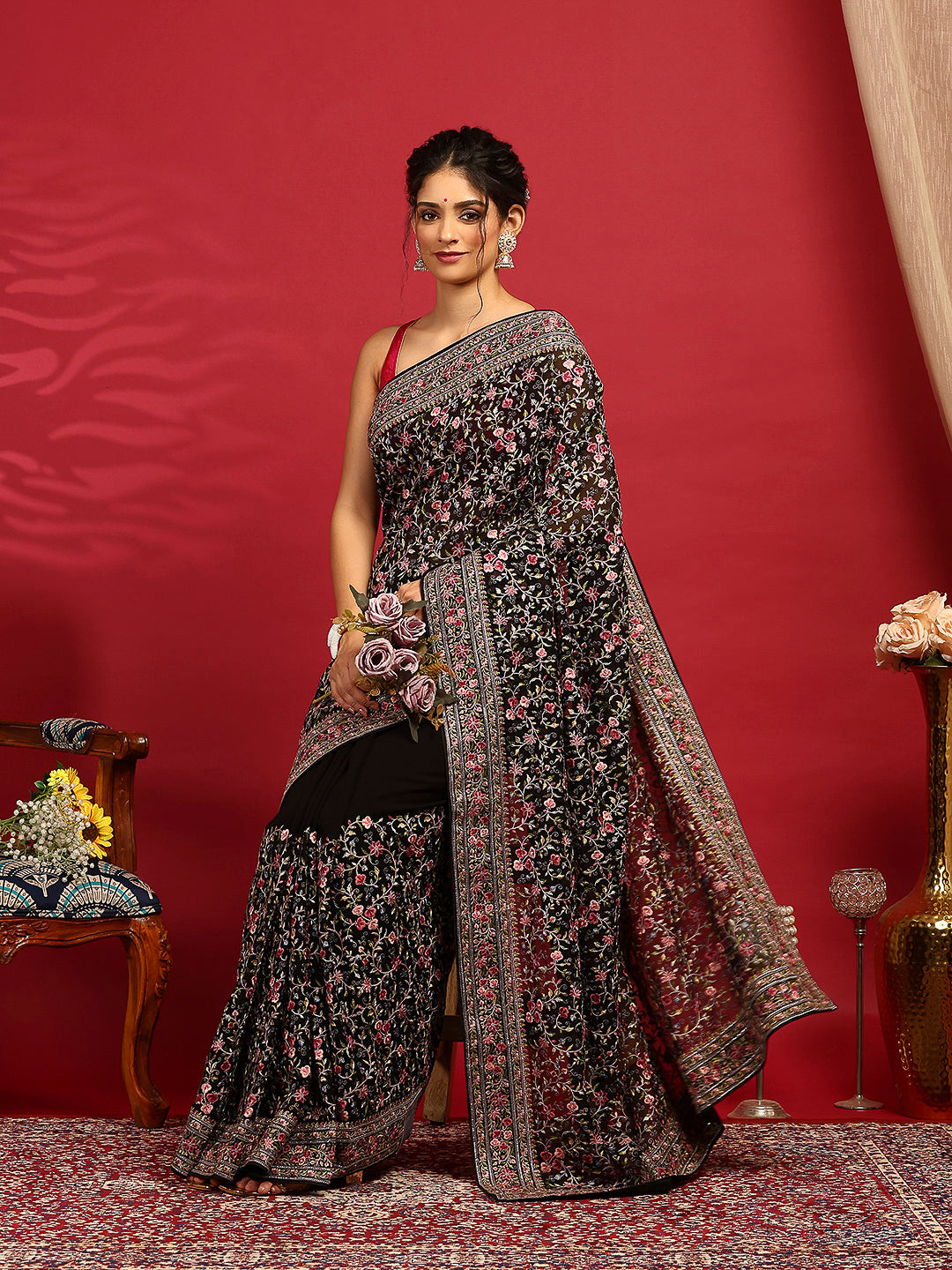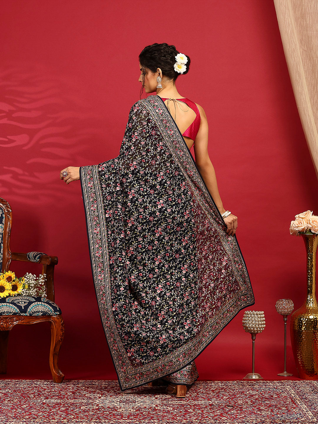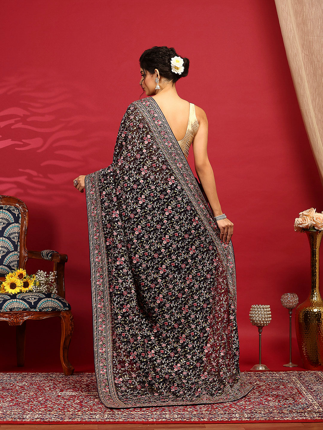 Note: The blouse shown in the pictures is just for Photoshoot purposes. The blouse you will get will be an attached running blouse.