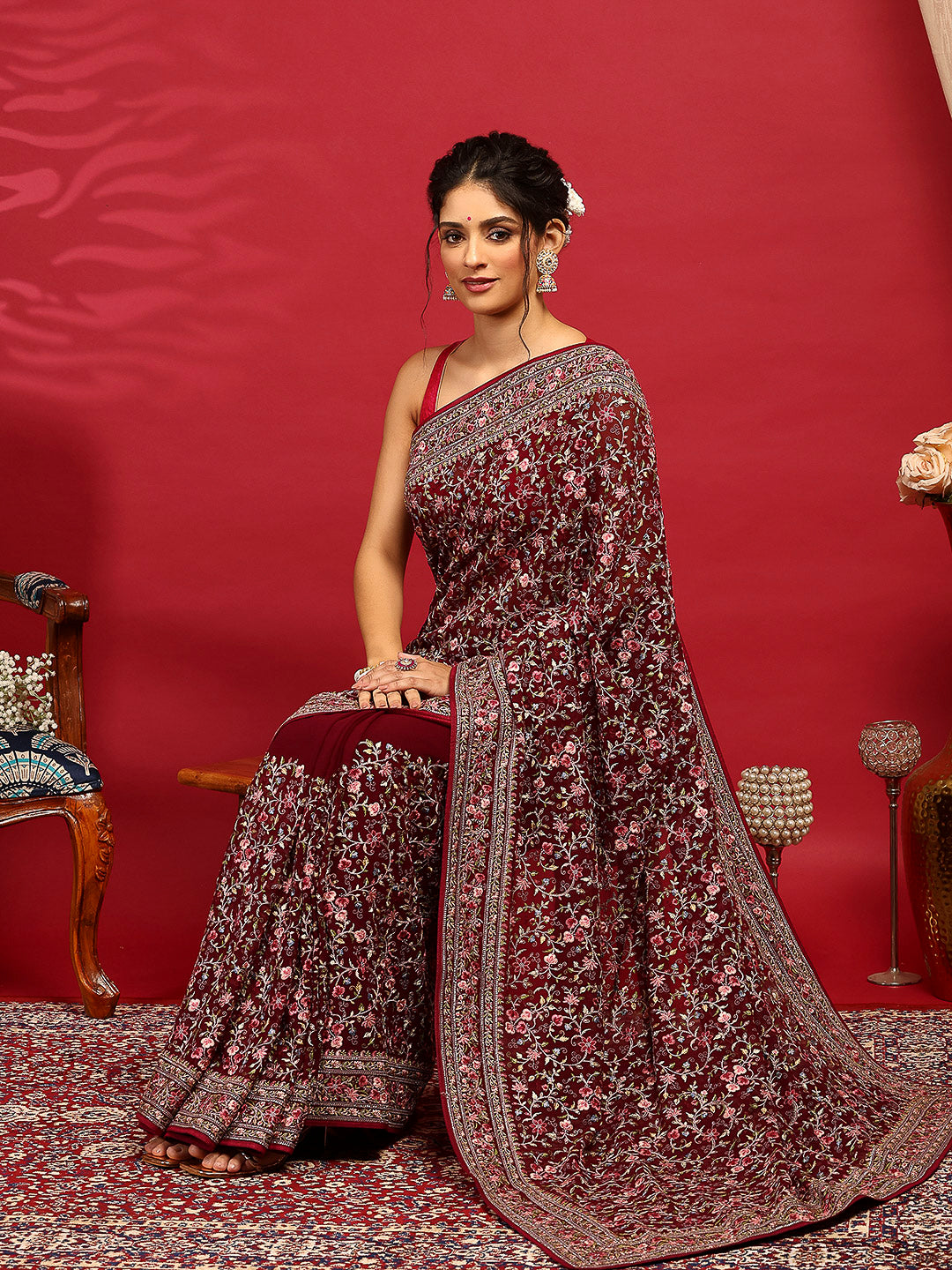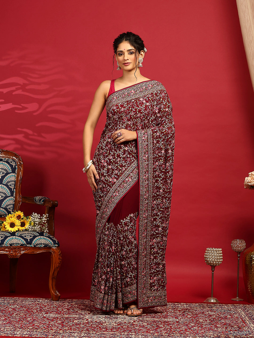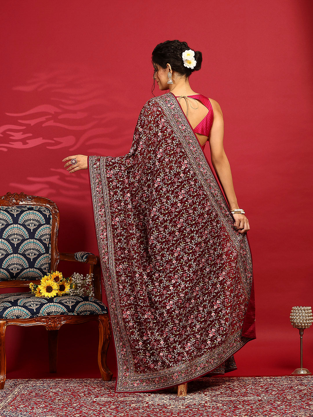 Note: The blouse shown in the pictures is just for Photoshoot purposes. The blouse you will get will be an attached running blouse.