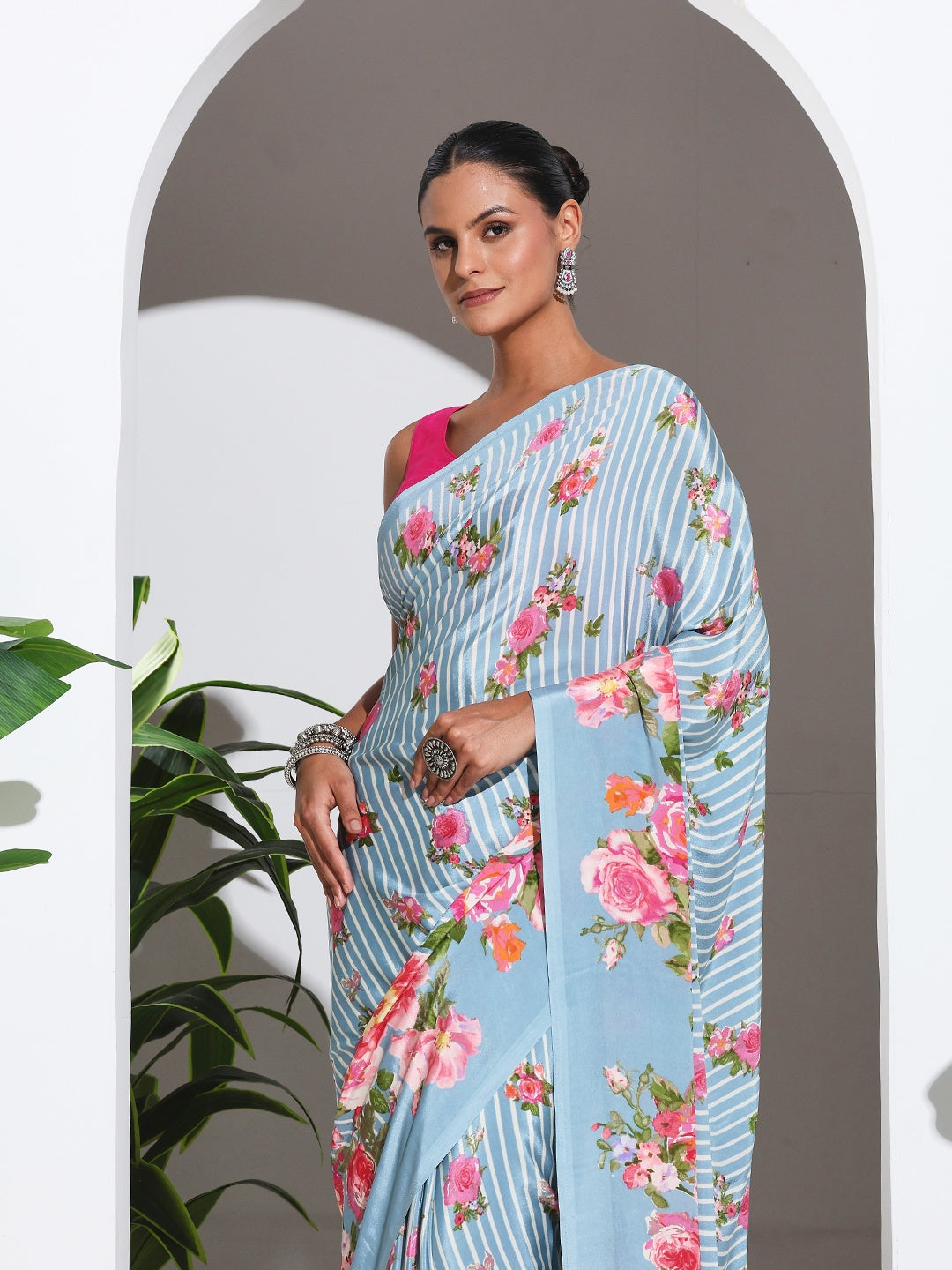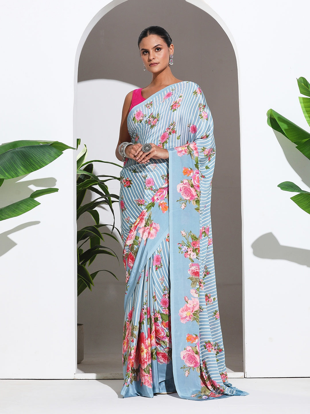Note: The blouse shown in the pictures is just for Photoshoot purposes. The blouse you will get will be an attached running blouse.