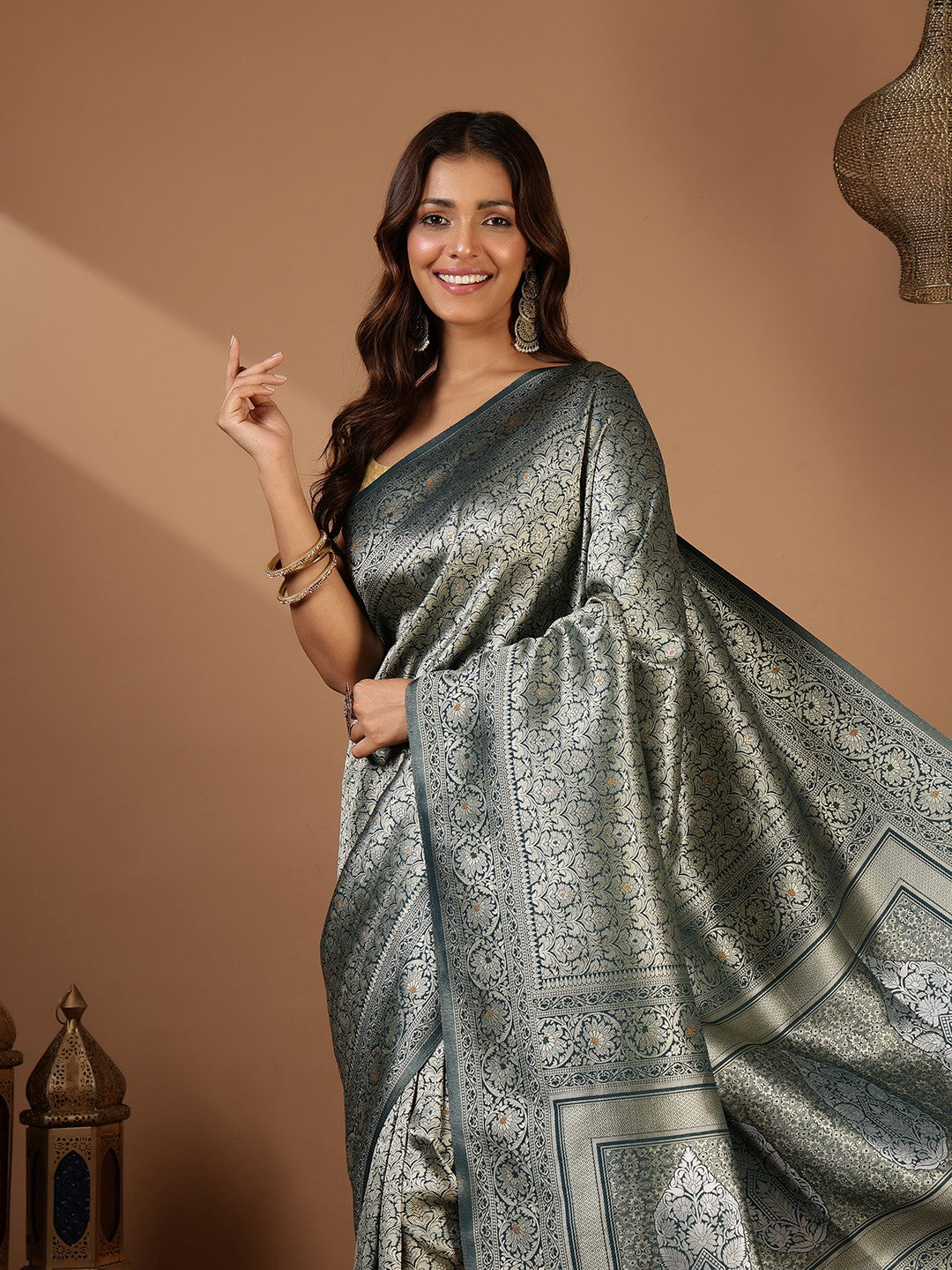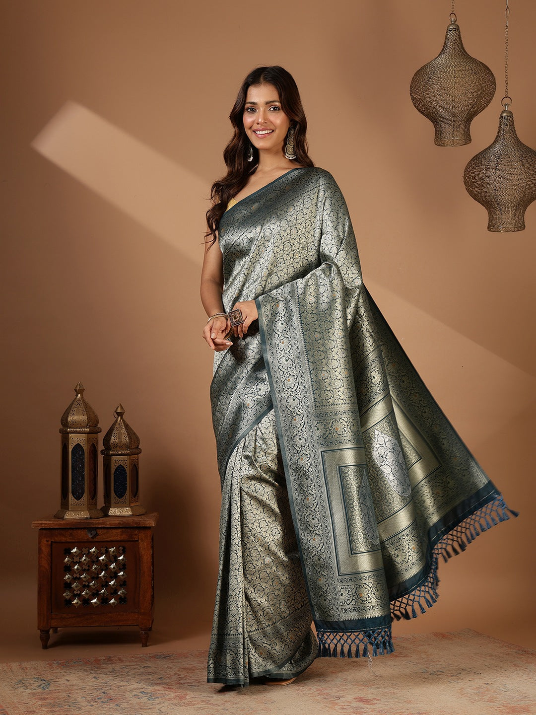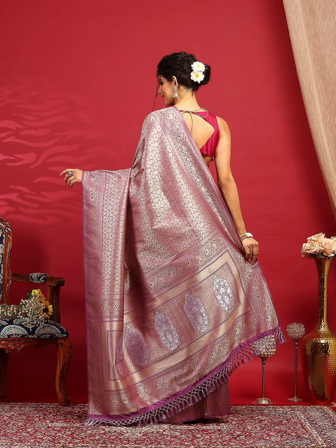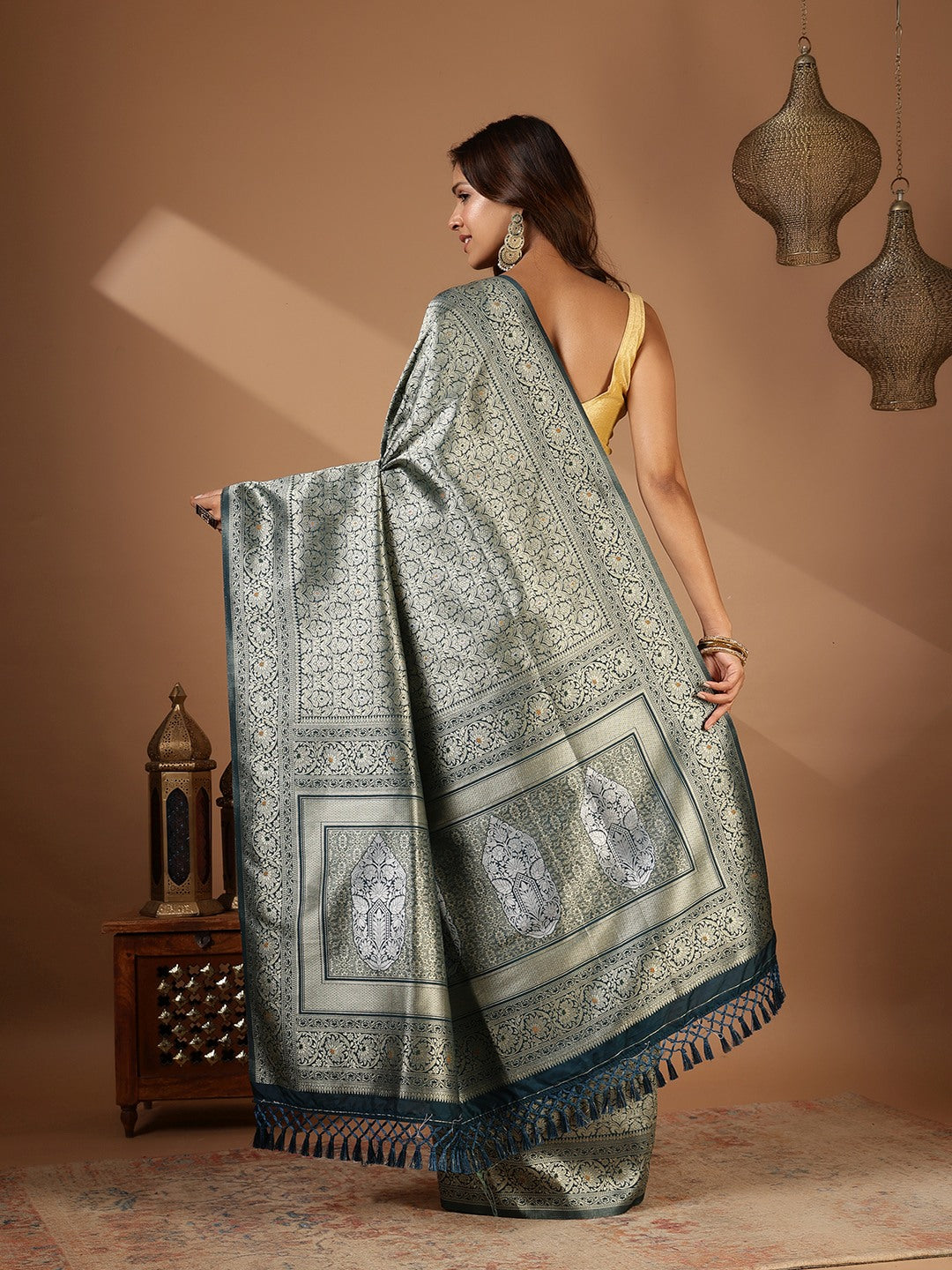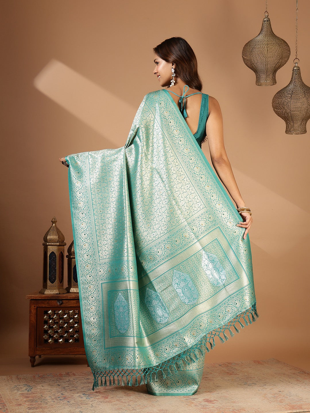 Note: The blouse shown in the pictures is just for Photoshoot purposes. The blouse you will get will be an attached running blouse.