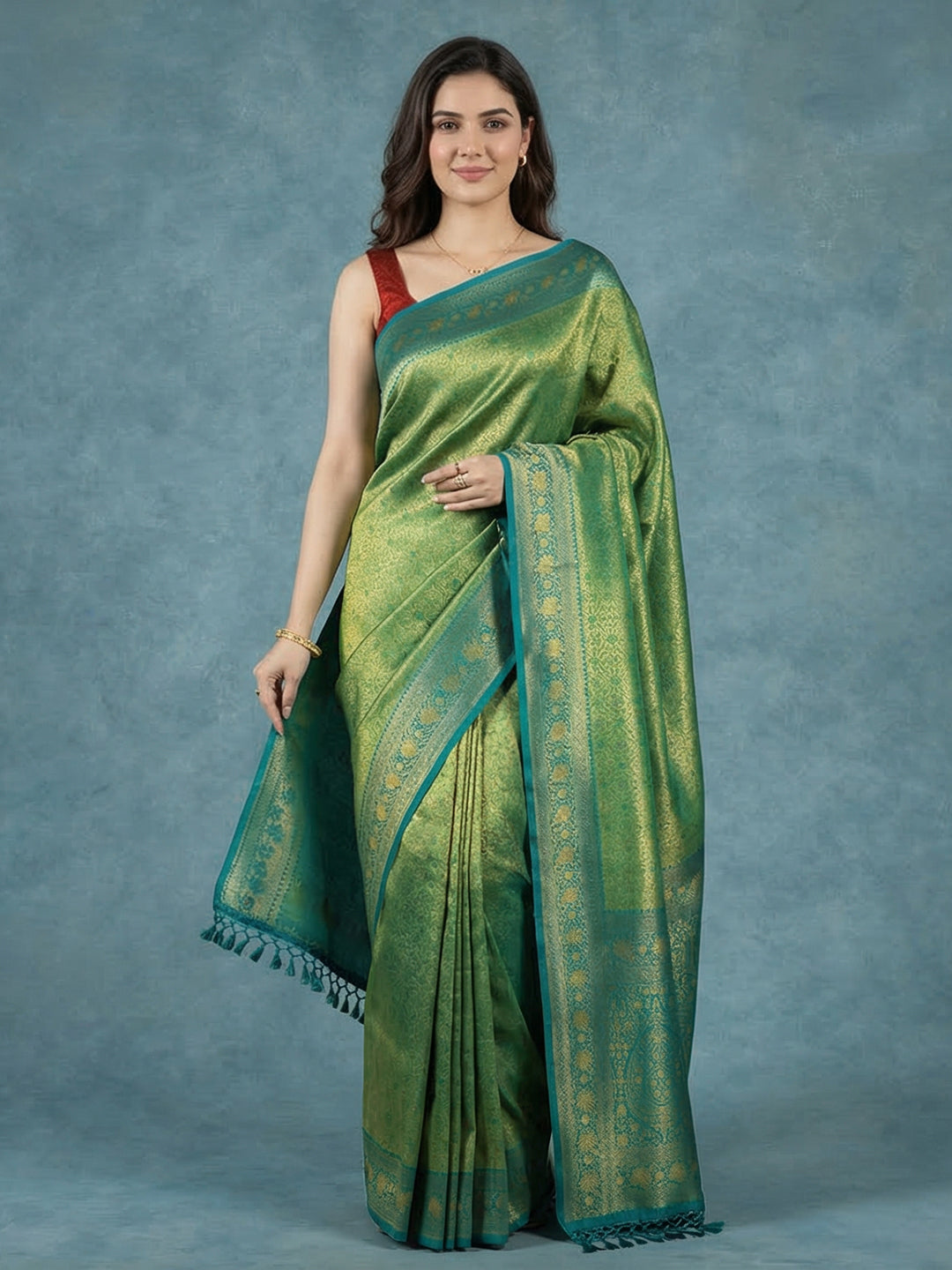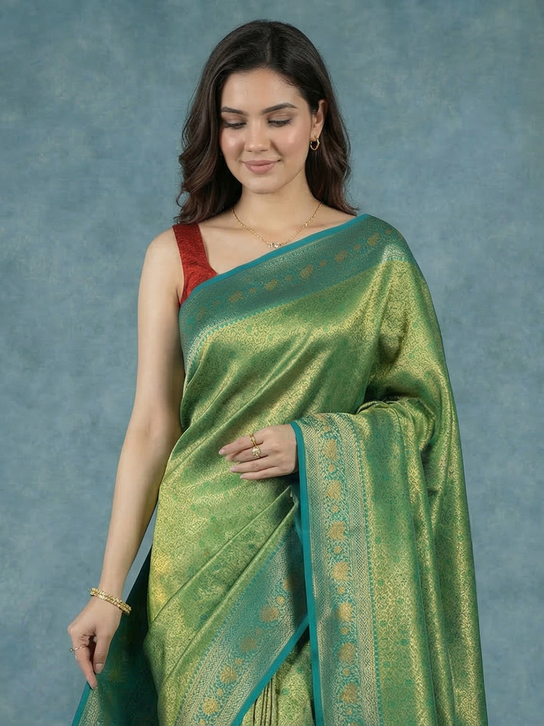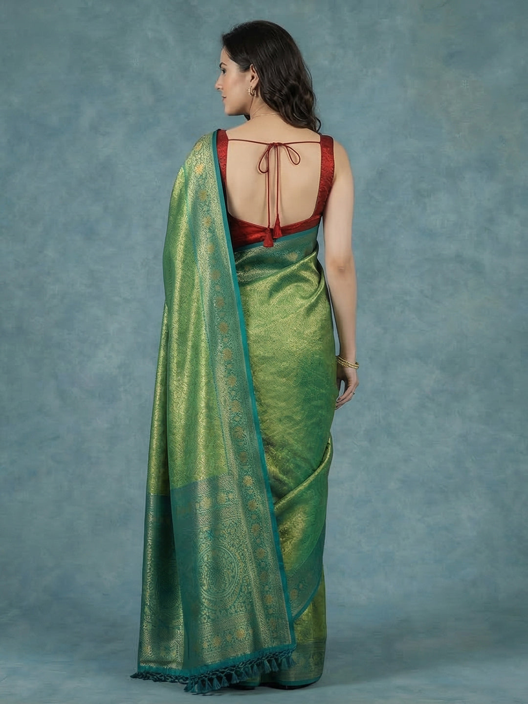 Note: The blouse shown in the pictures is just for Photoshoot purposes. The blouse you will get will be an attached running blouse.