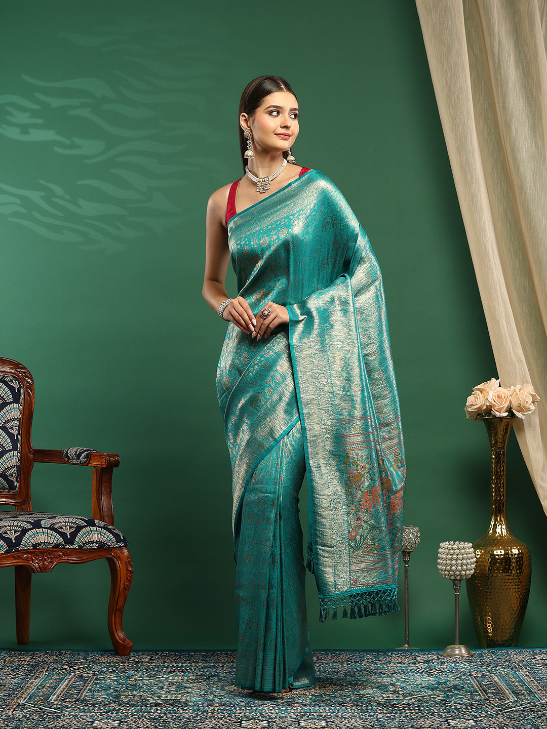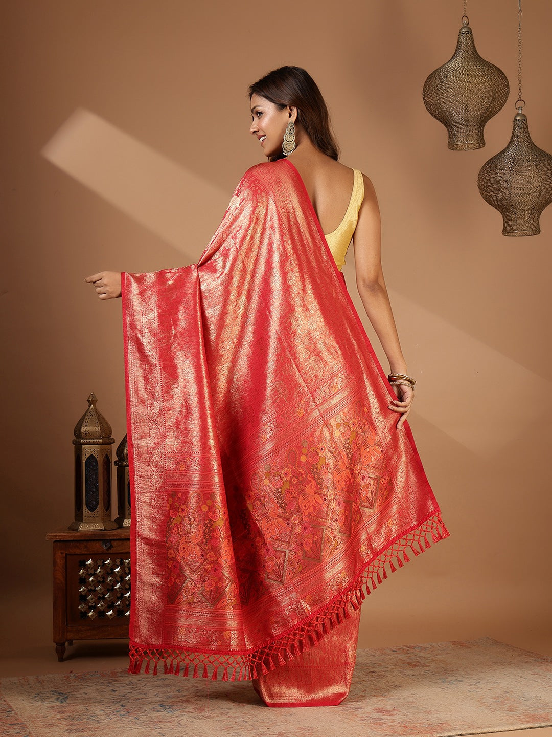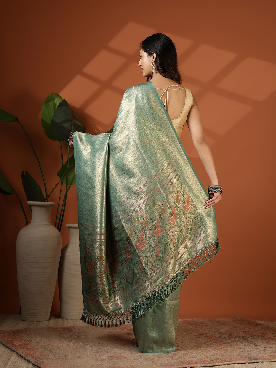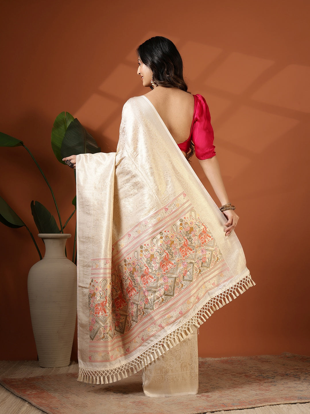 Note: The blouse shown in the pictures is just for Photoshoot purposes. The blouse you will get will be an attached running blouse.