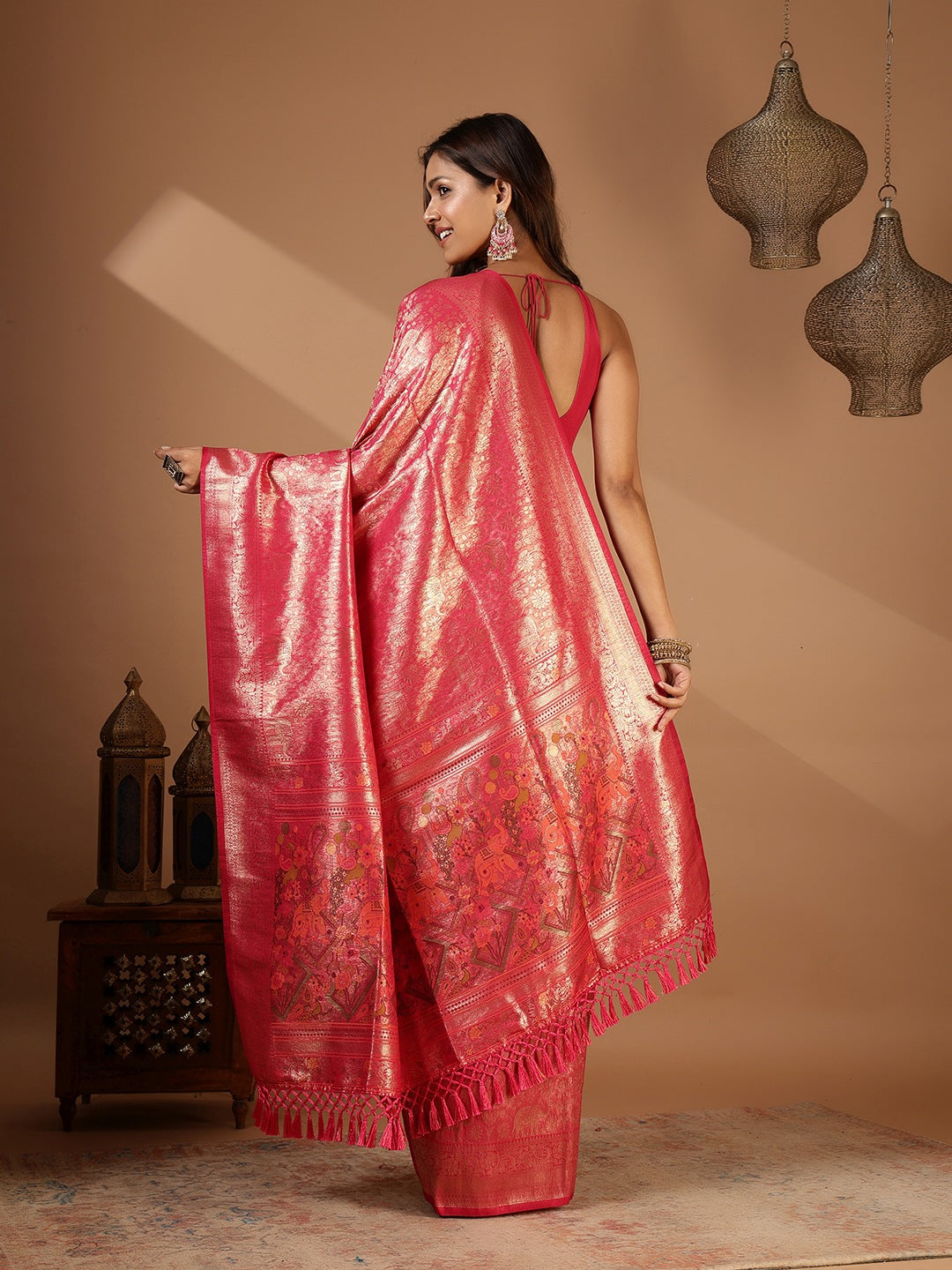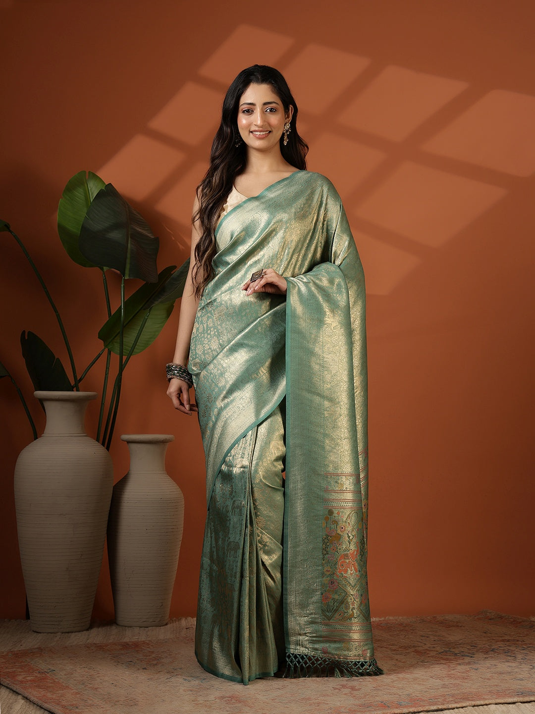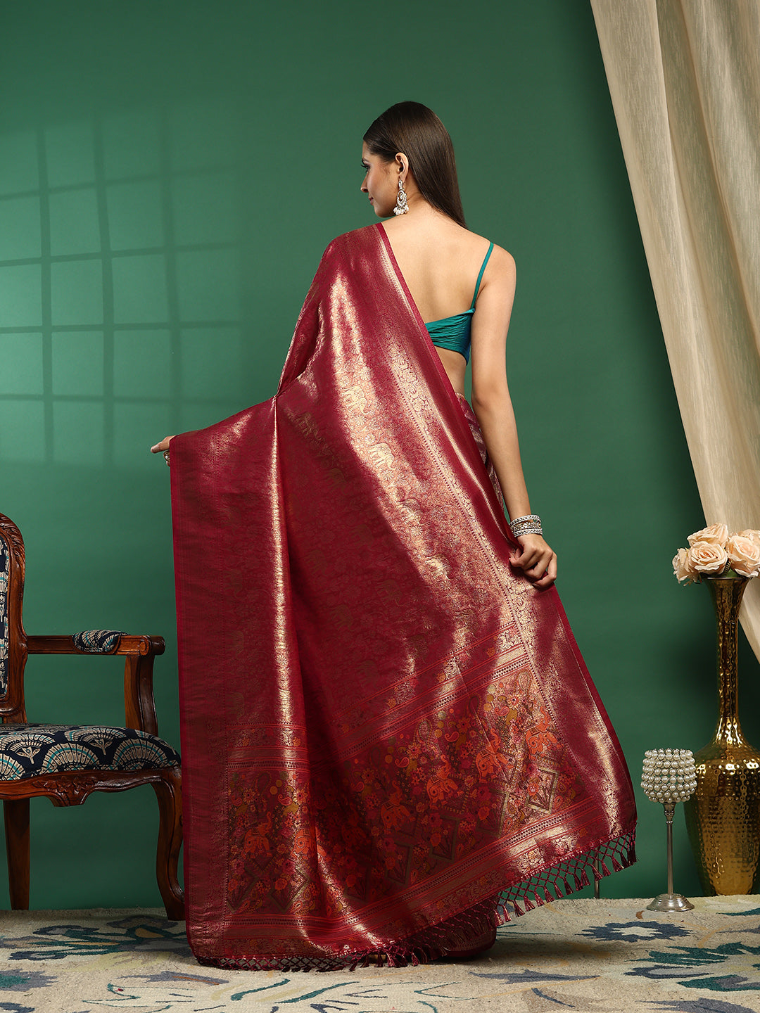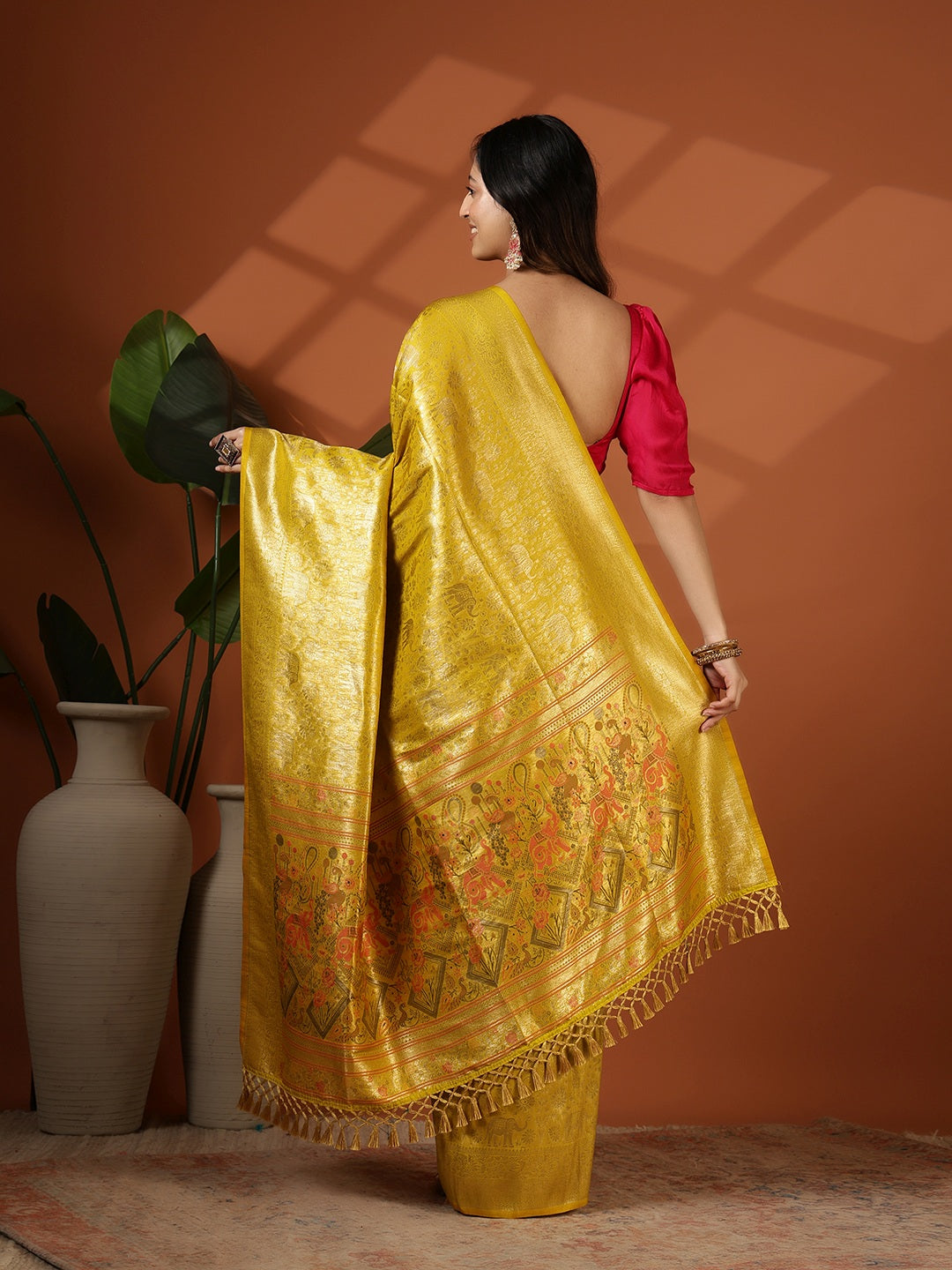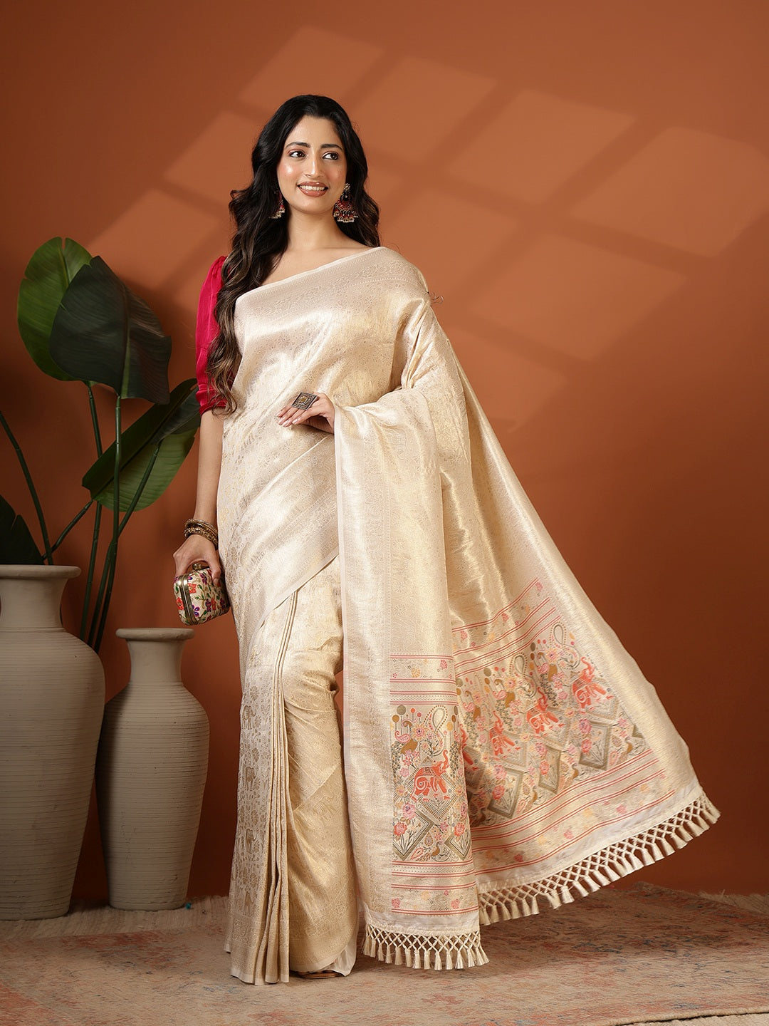 Note: The blouse shown in the pictures is just for Photoshoot purposes. The blouse you will get will be an attached running blouse.