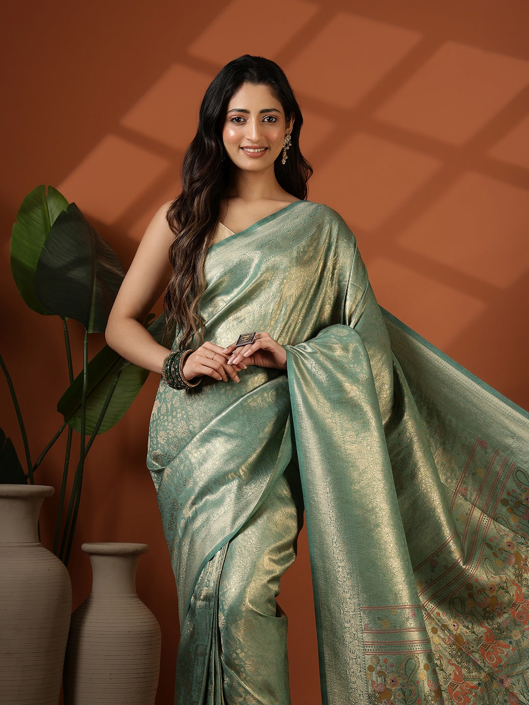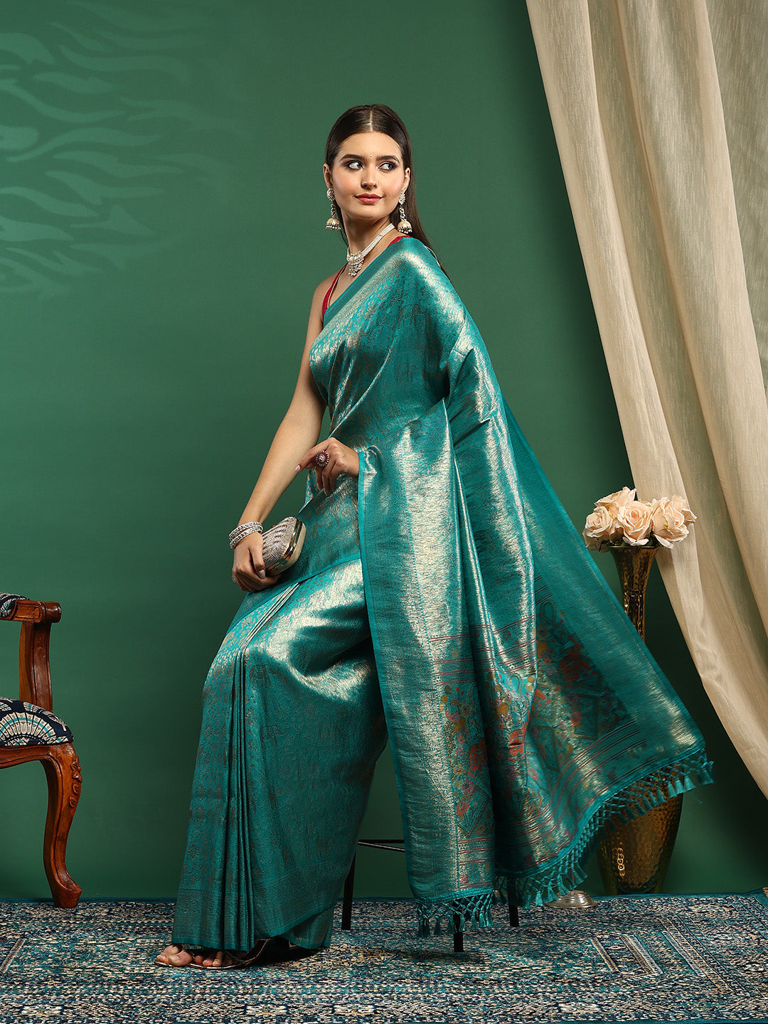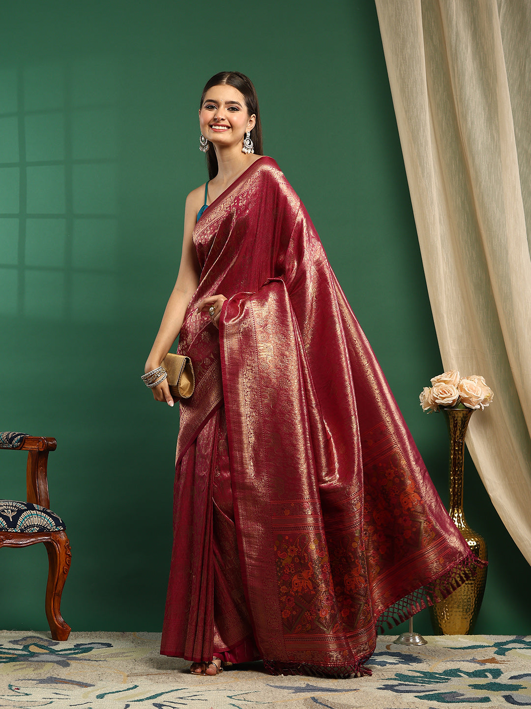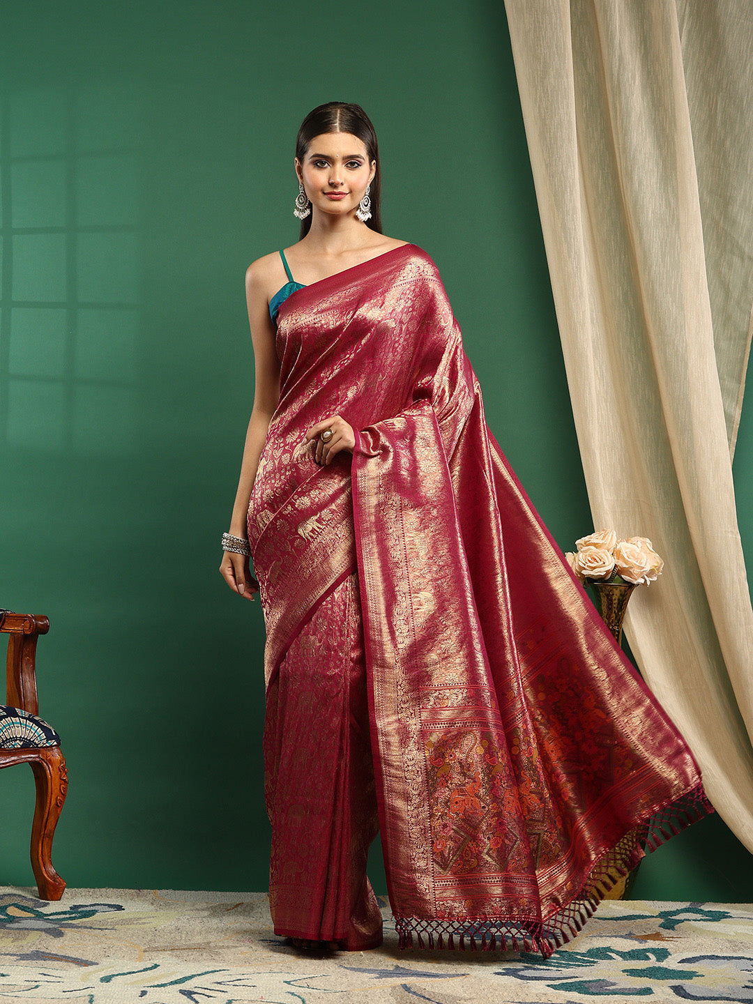 Note: The blouse shown in the pictures is just for Photoshoot purposes. The blouse you will get will be an attached running blouse.