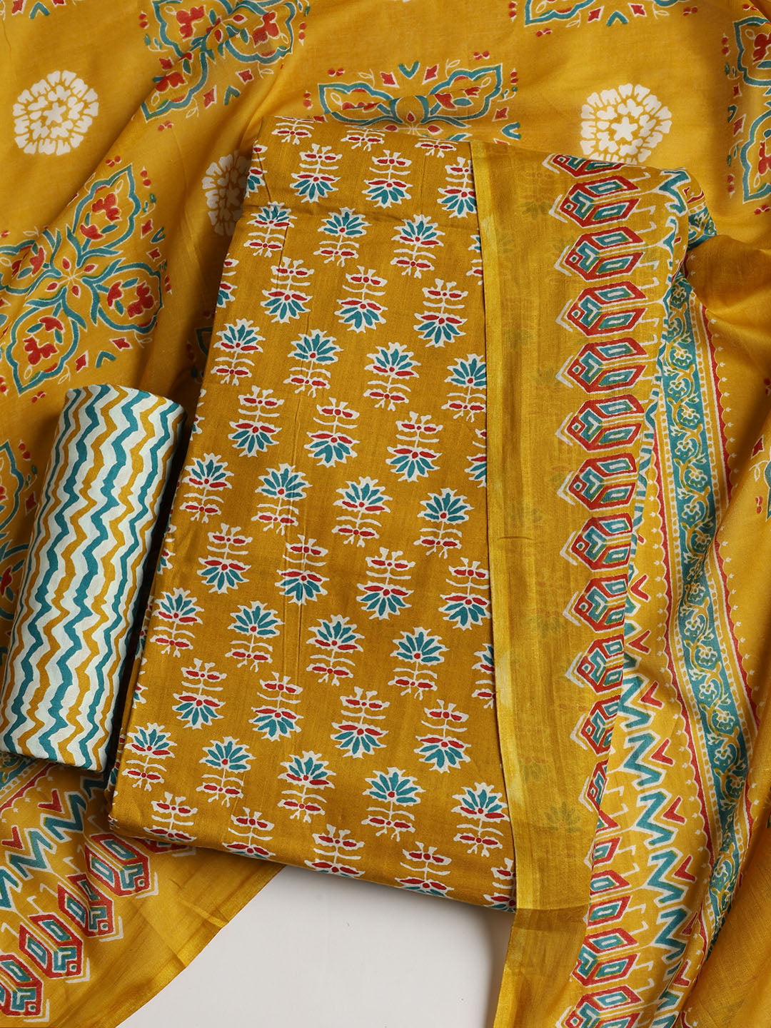 Printed Cotton Blend Unstitched Suit With Dupatta