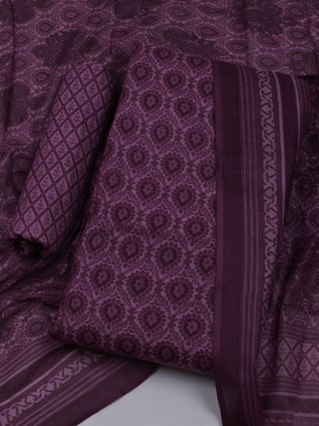 Printed Cotton Blend Unstitched Suit With Dupatta