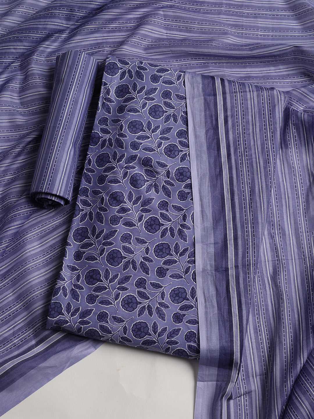 Printed Cotton Blend Unstitched Suit With Dupatta