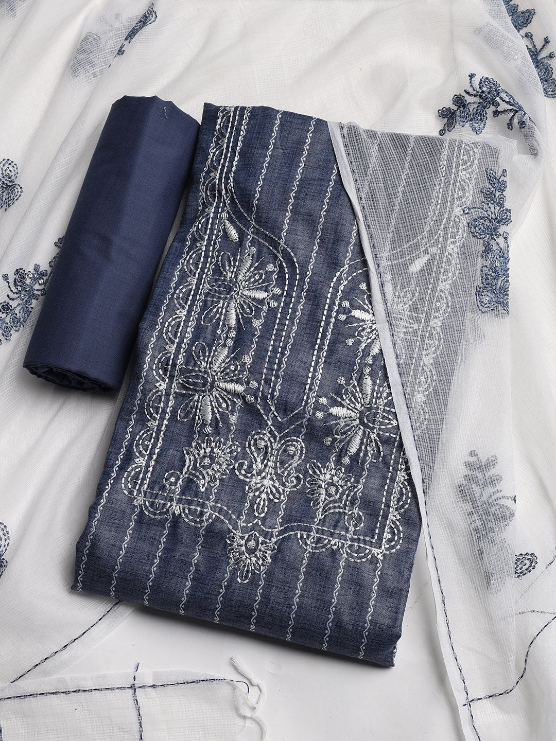 Neck Embroidered Cotton Blend Unstitched Suit With Dupatta