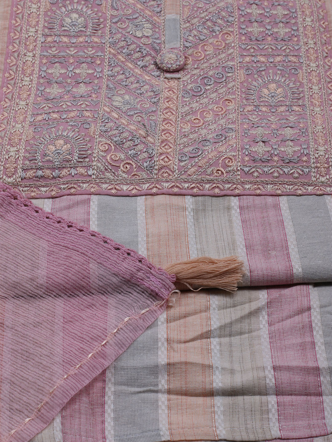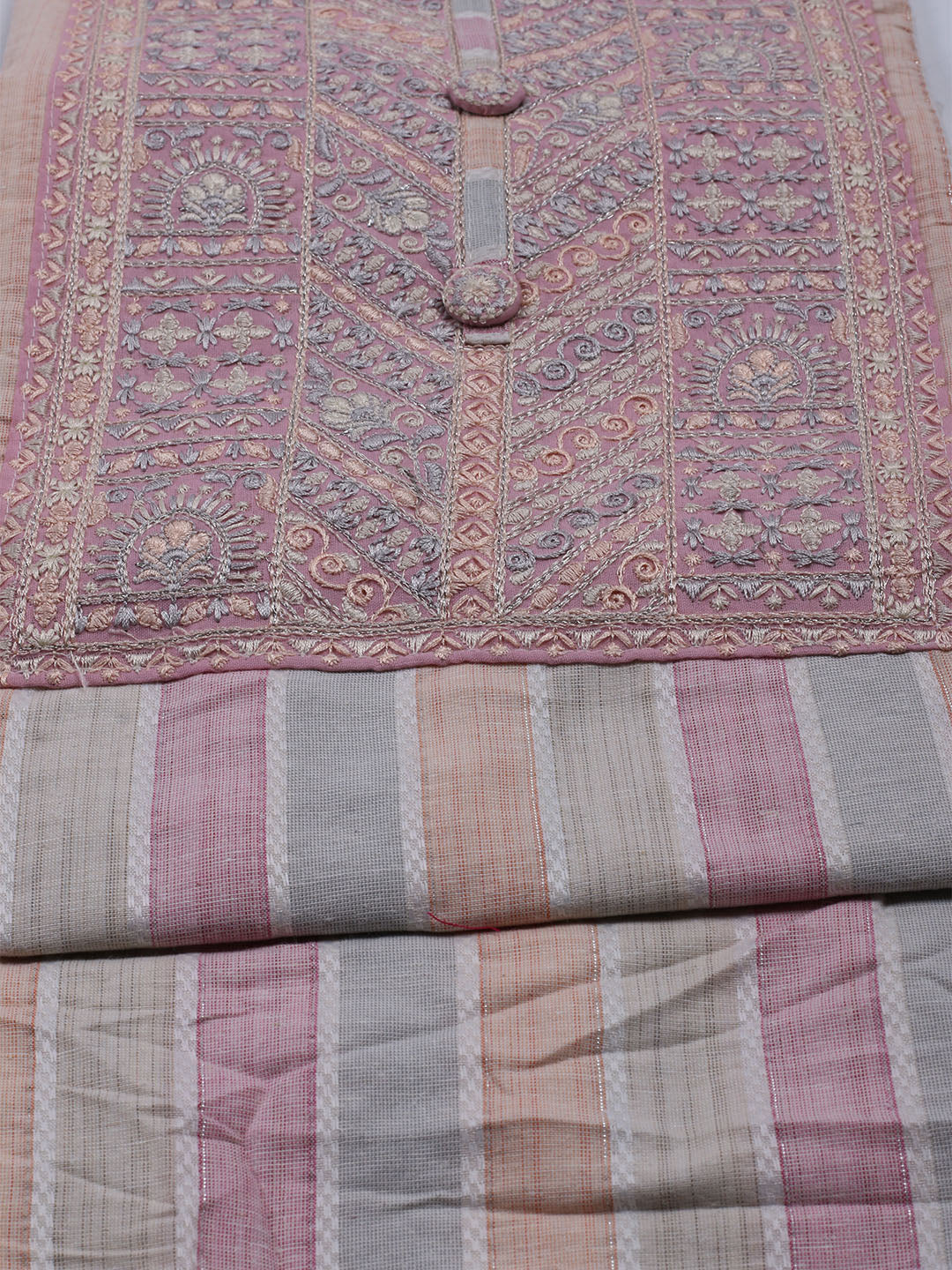 Neck Embroidered Cotton Blend Unstitched Suit With Dupatta