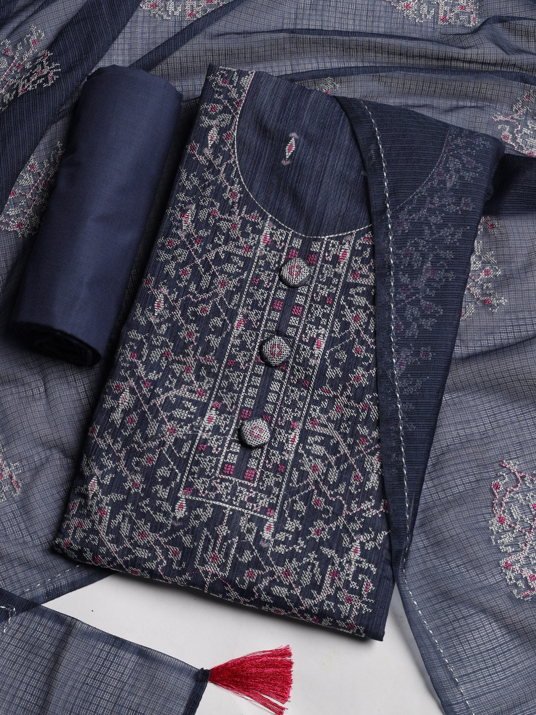 Neck Embroidered Cotton Blend Unstitched Suit With Dupatta