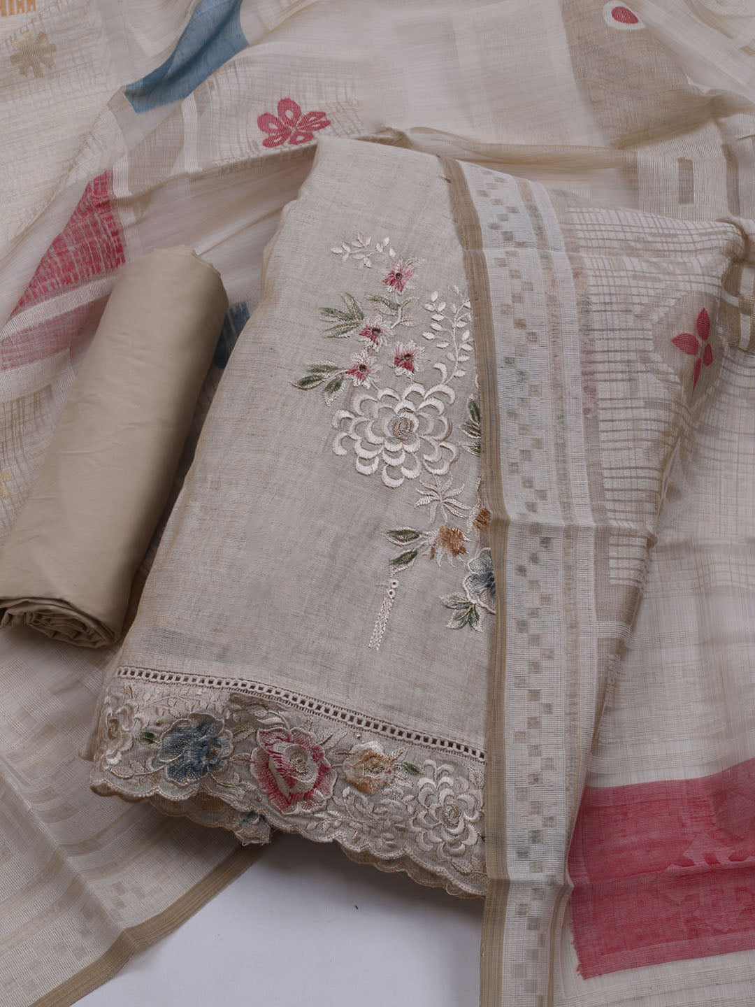Embroidered Chanderi Unstitched Suit With Dupatta