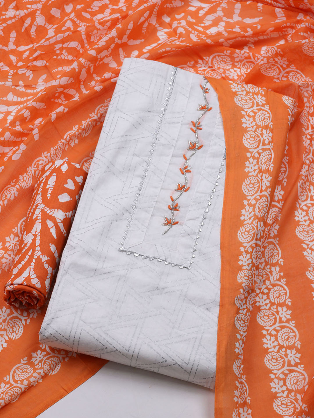 Printed Cotton Blend Unstitched Suit With Dupatta