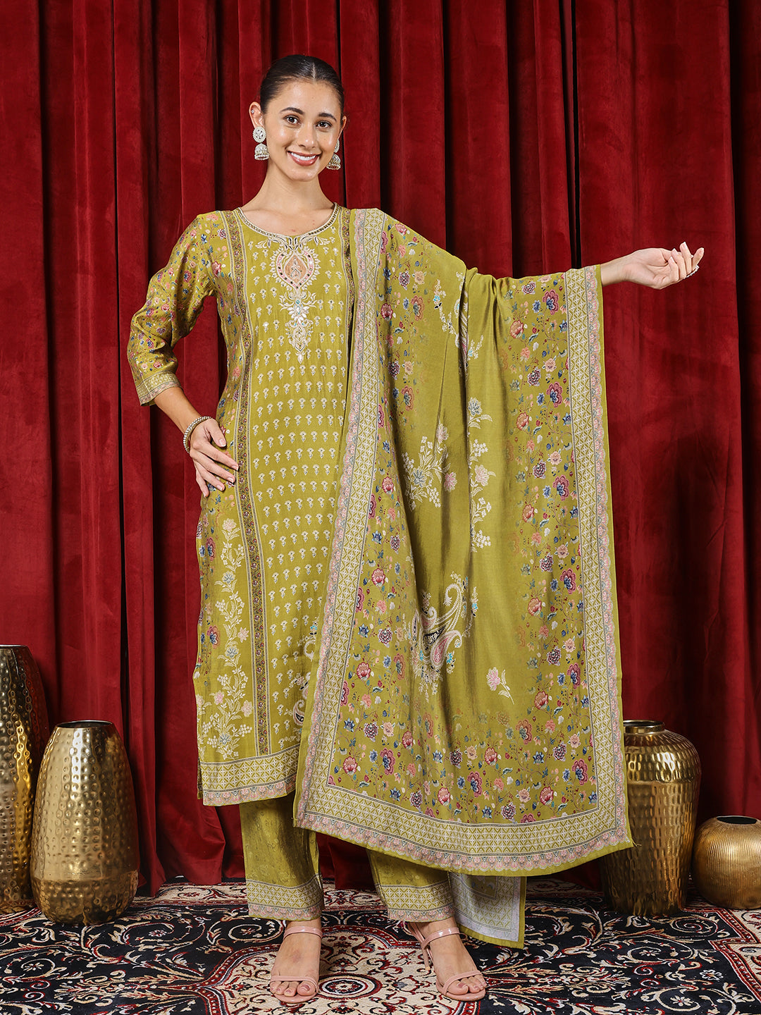 Printed Muslin Kurta With Pants & Dupatta