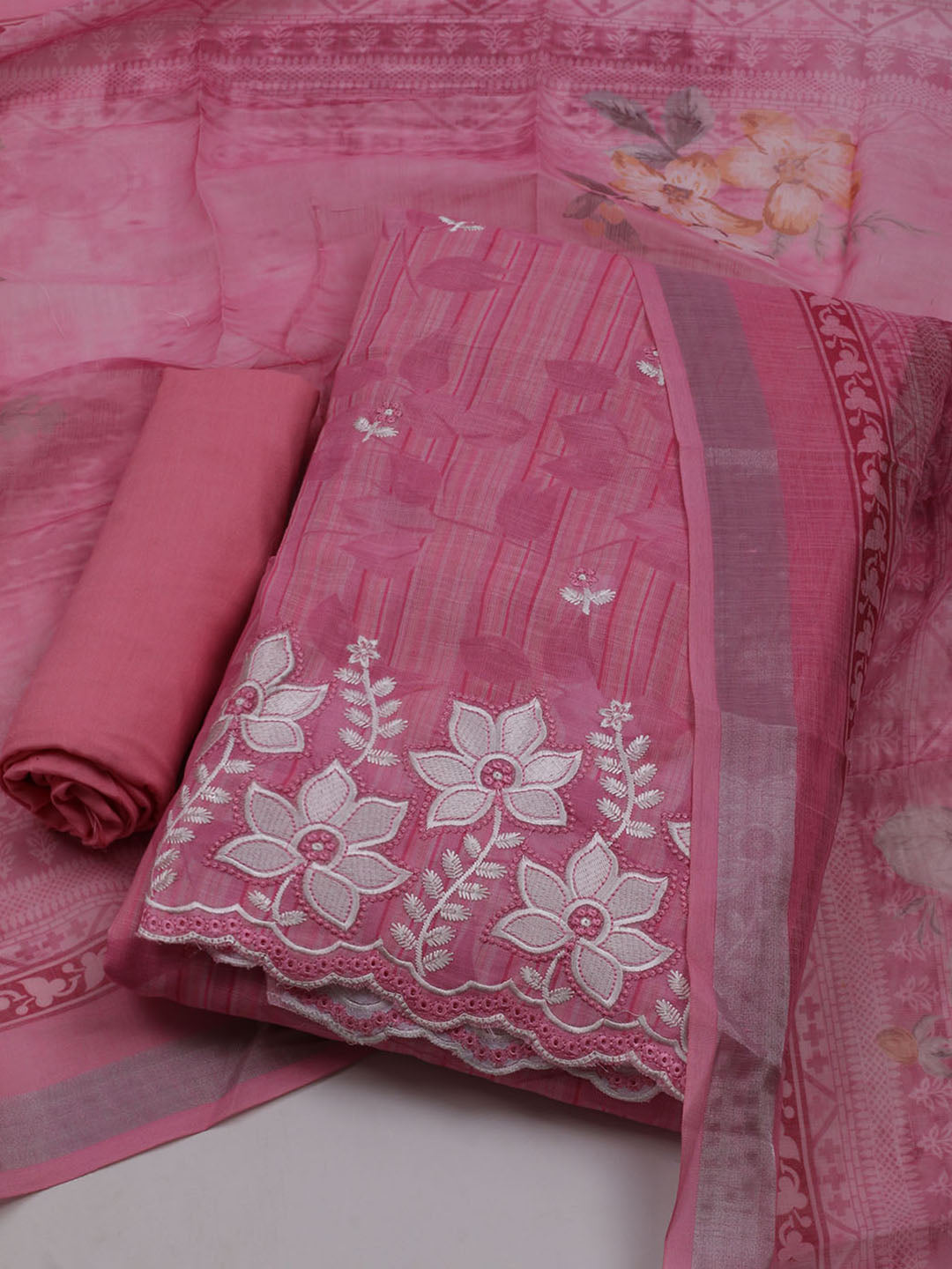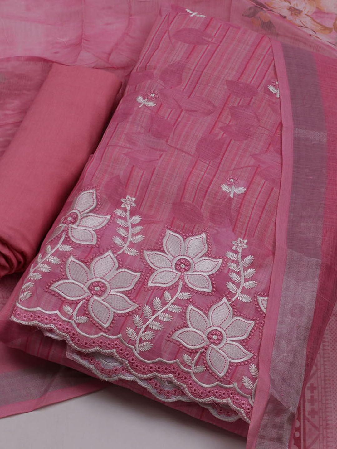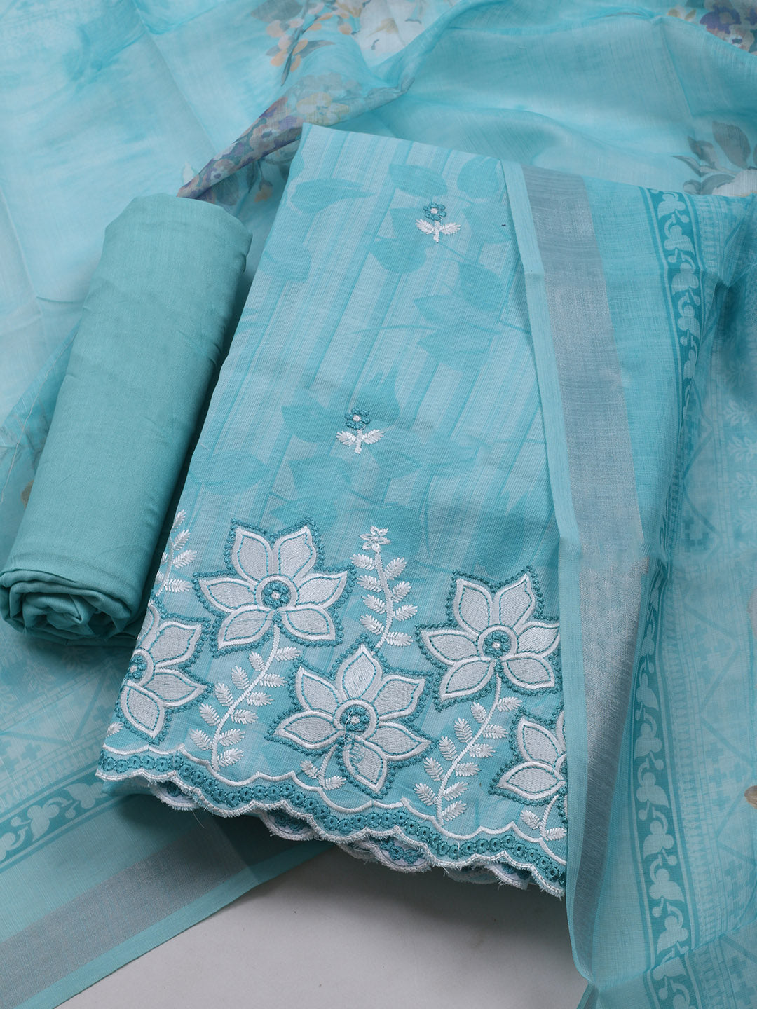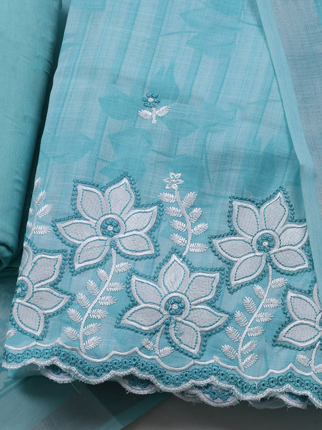 Neck Embroidered Cotton Blend Unstitched Suit With Dupatta