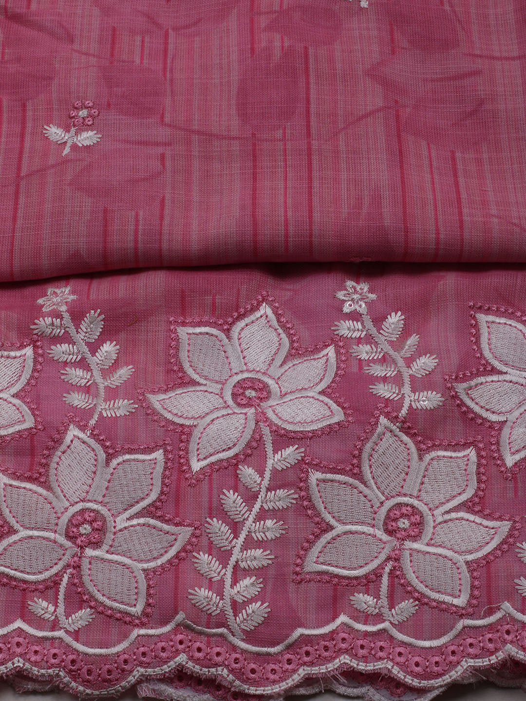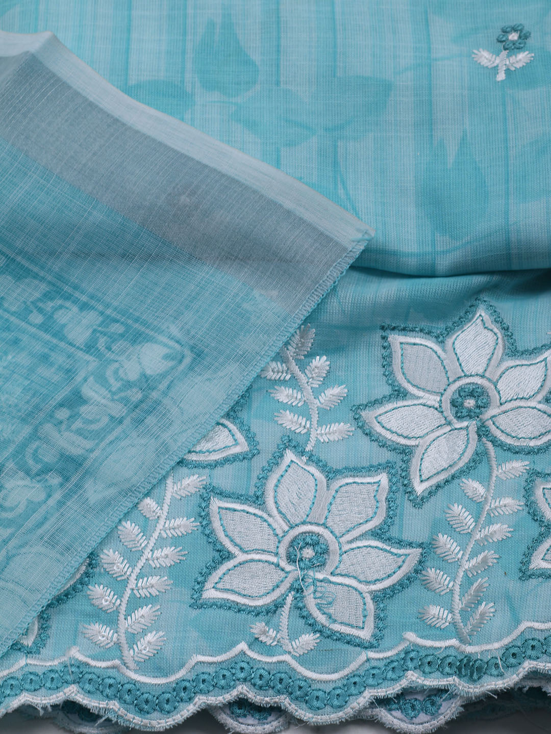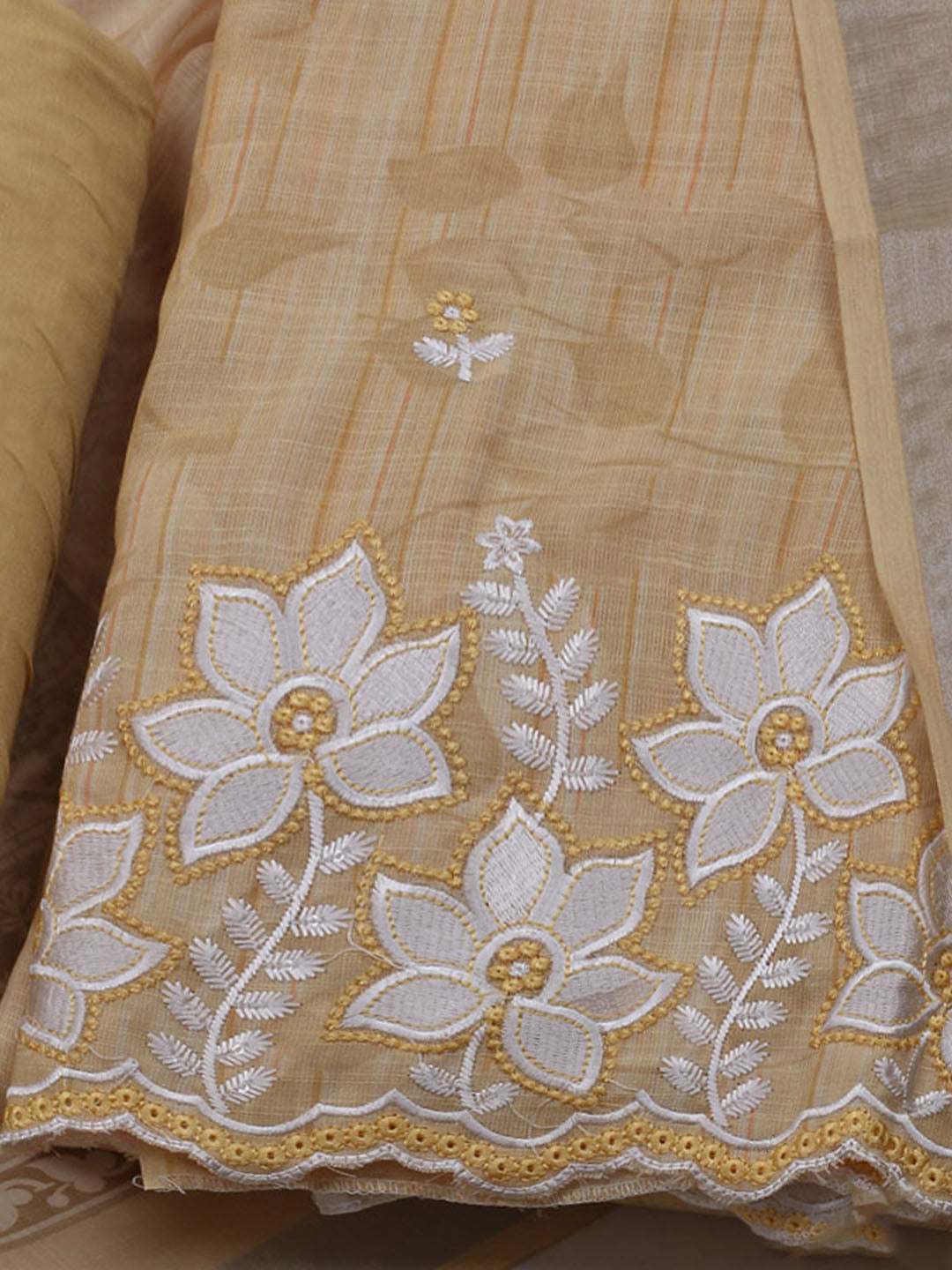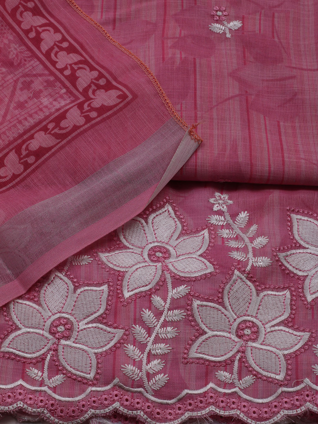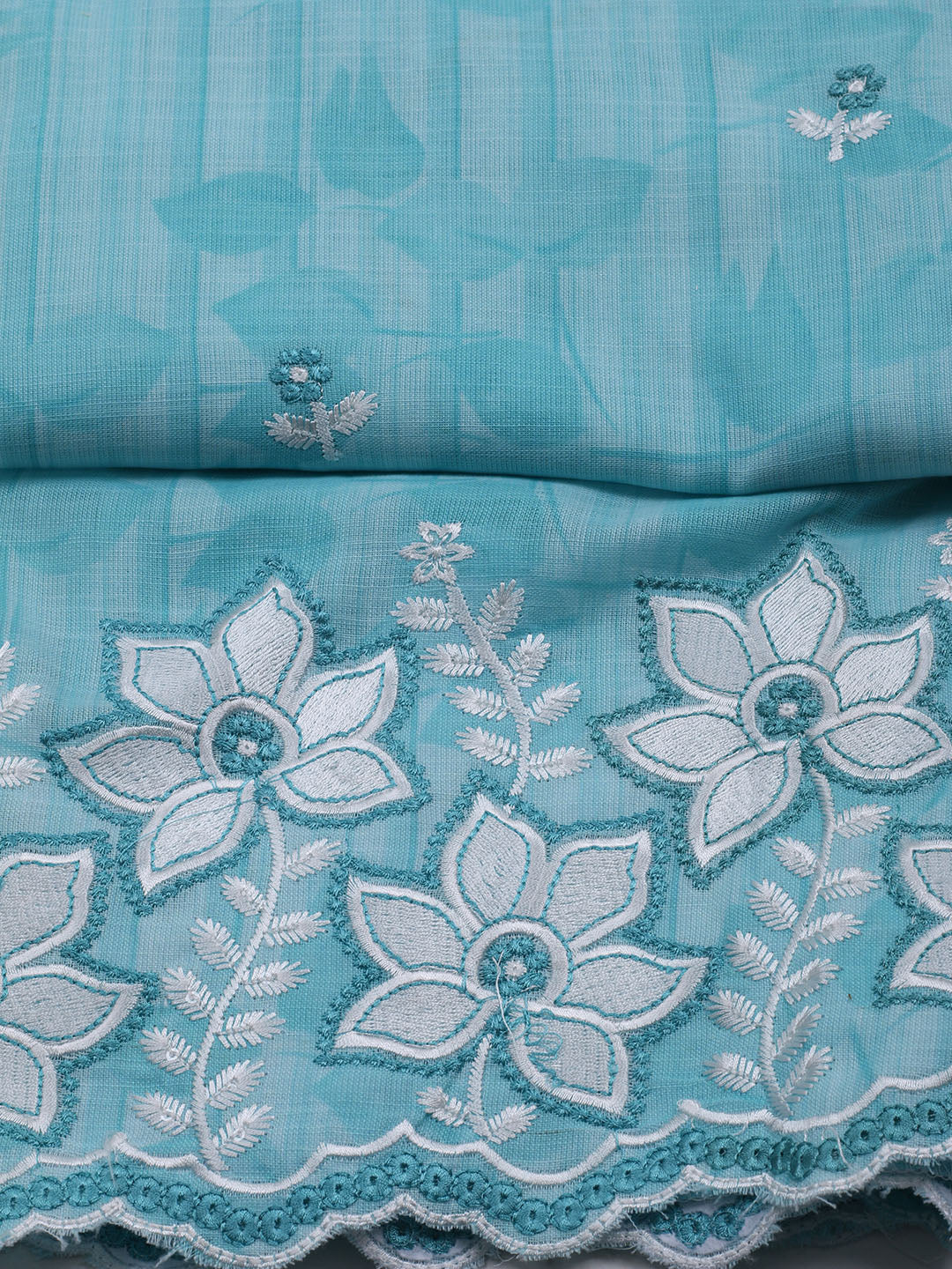 Neck Embroidered Cotton Blend Unstitched Suit With Dupatta