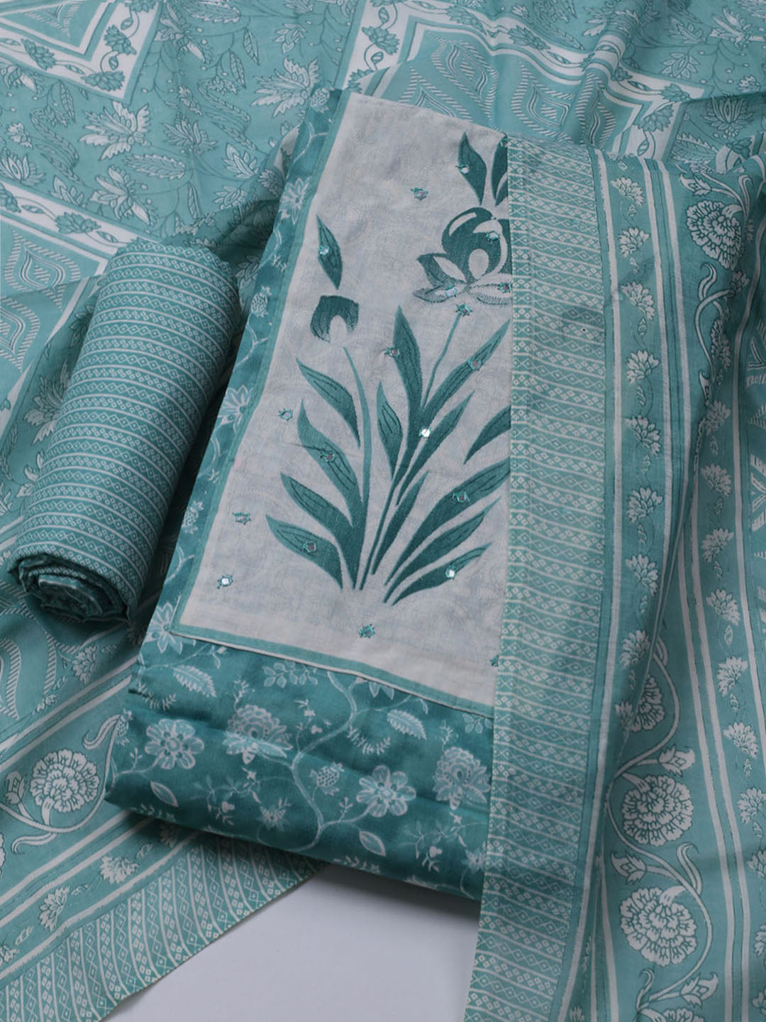 Printed Cotton Blend Unstitched Suit With Dupatta