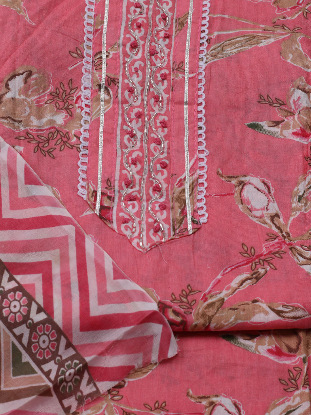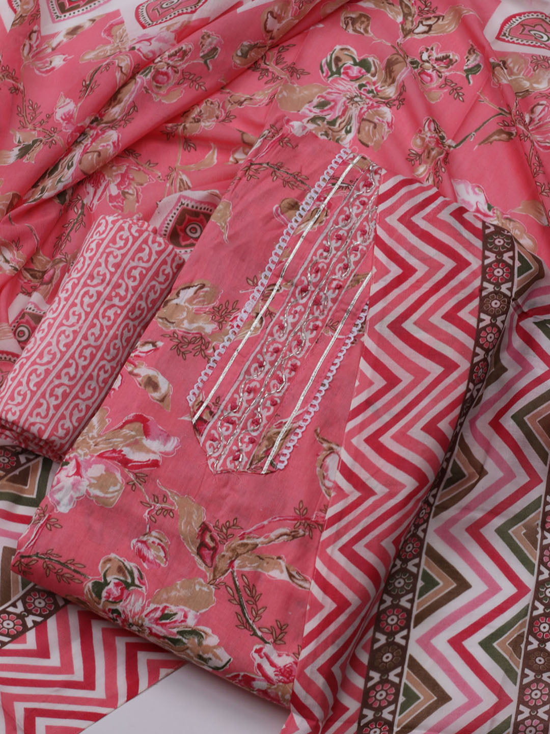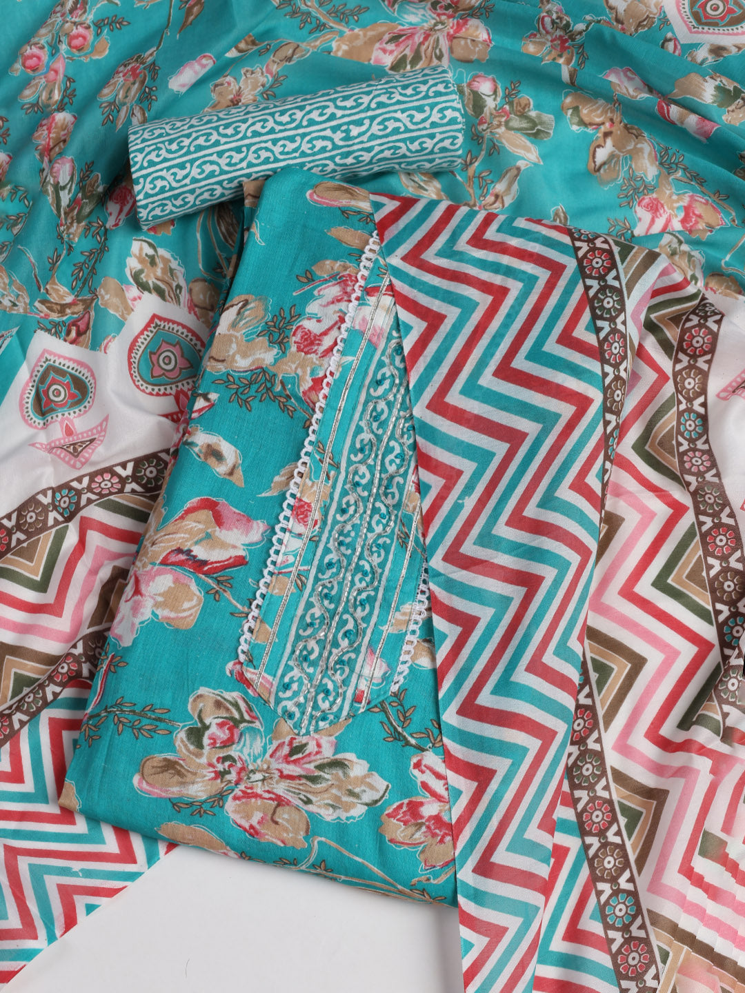 Neck Embroidered Cotton Blend Unstitched Suit With Dupatta