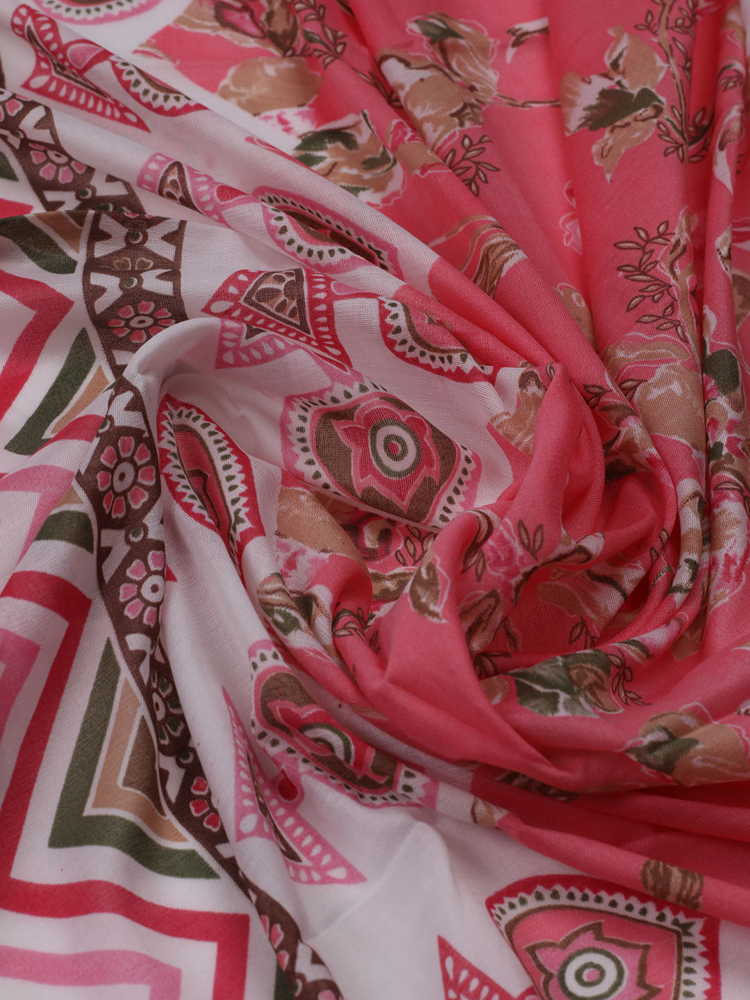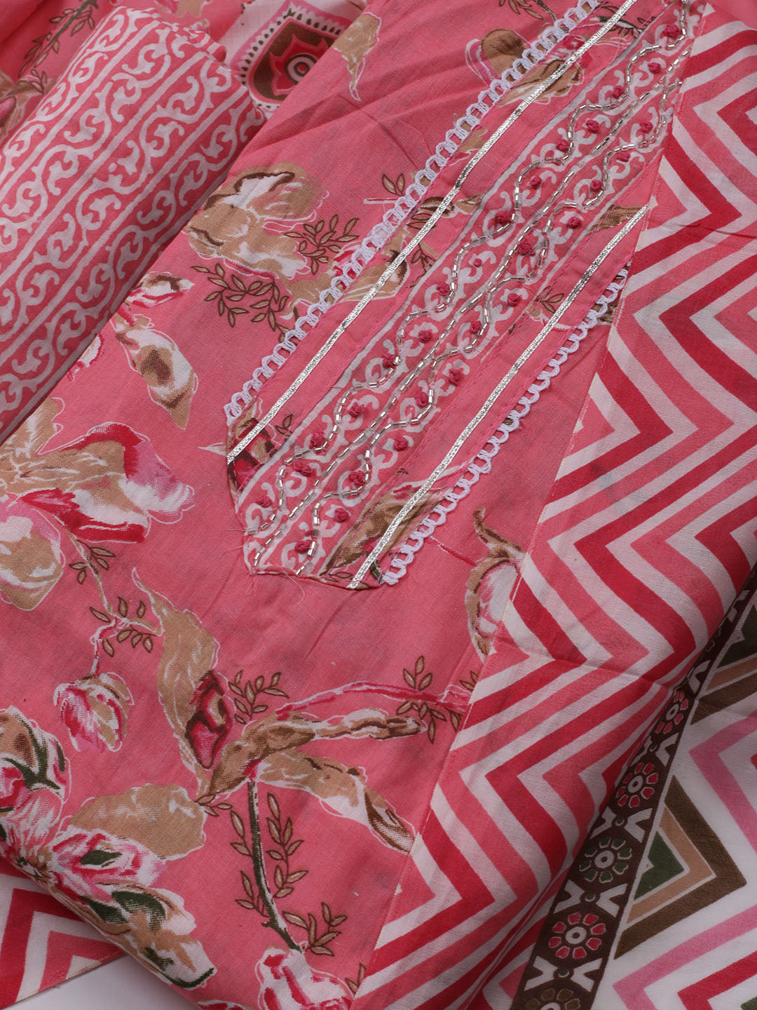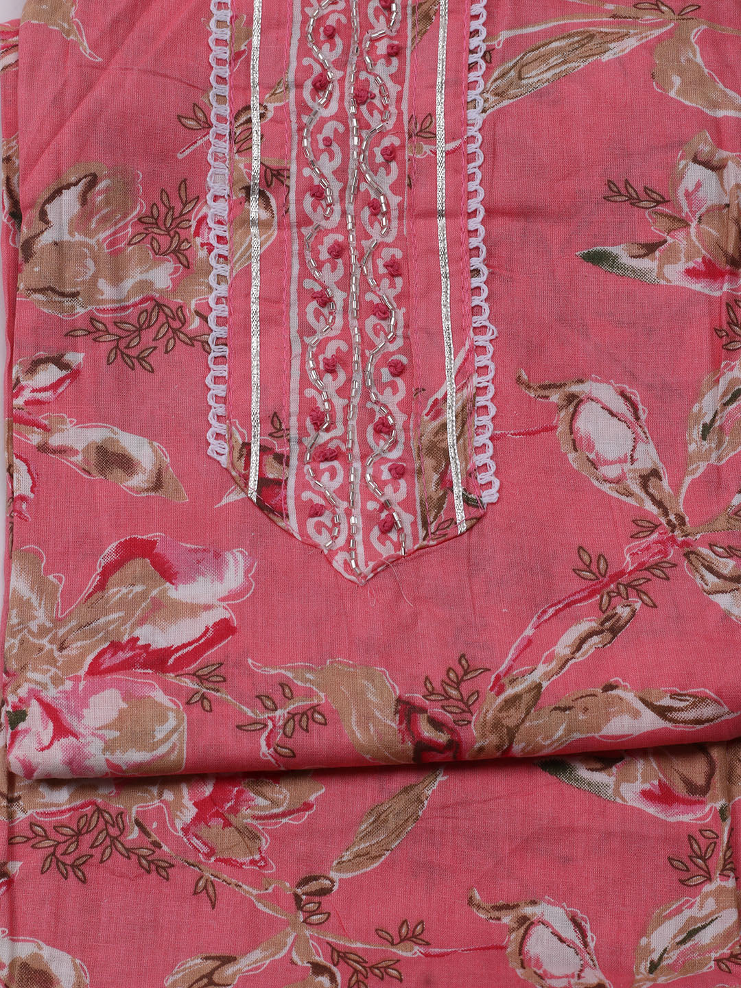 Neck Embroidered Cotton Blend Unstitched Suit With Dupatta