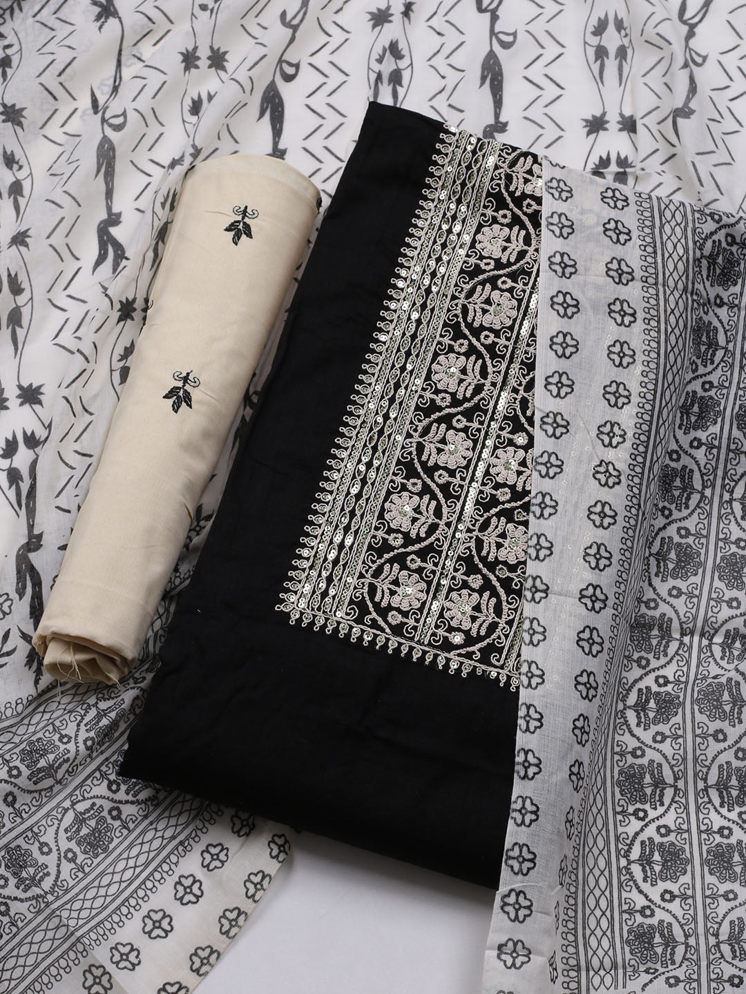Neck Embroidered Cotton Blend Unstitched Suit With Dupatta