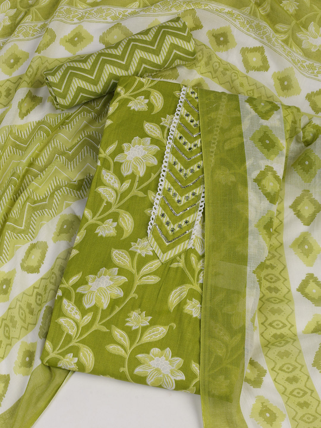 Printed Cotton Blend Unstitched Suit With Dupatta
