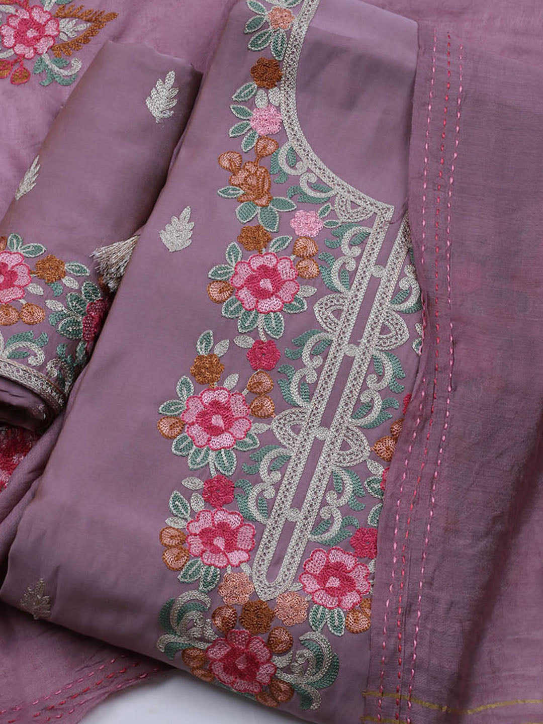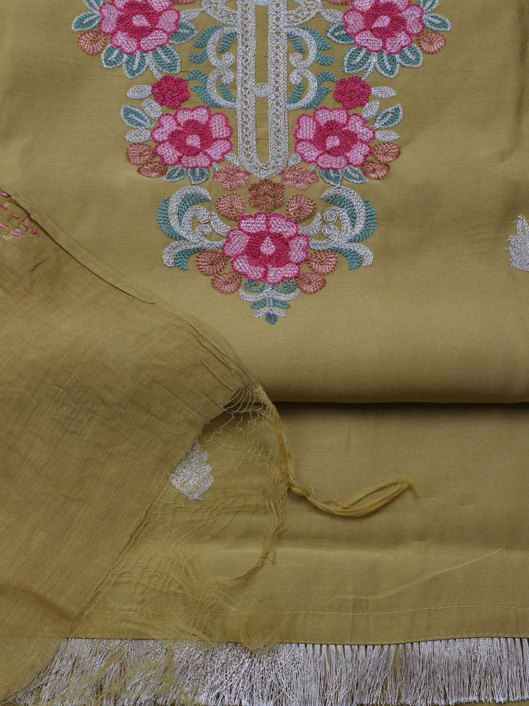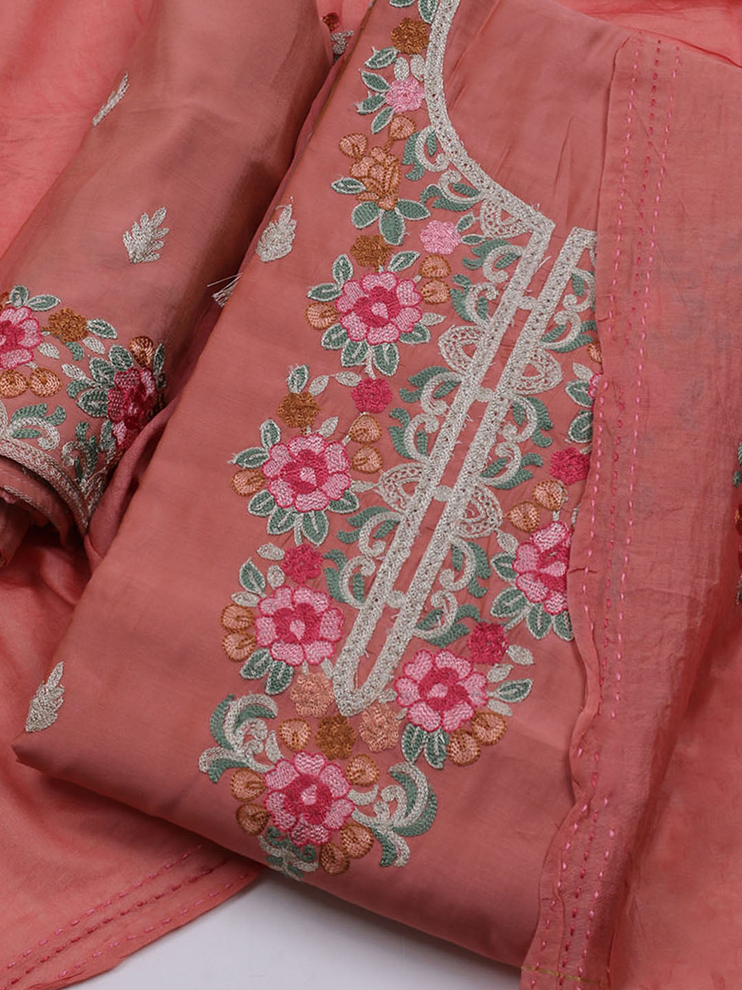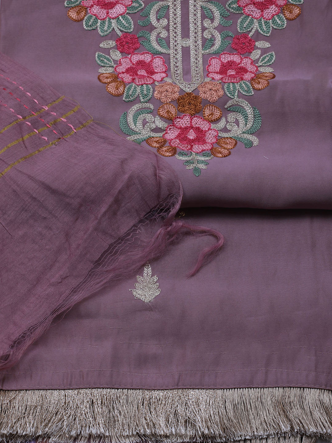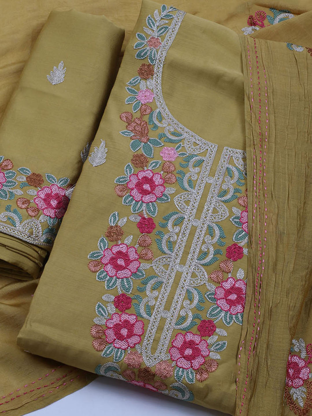 Neck Embroidered Chanderi Unstitched Suit With Dupatta