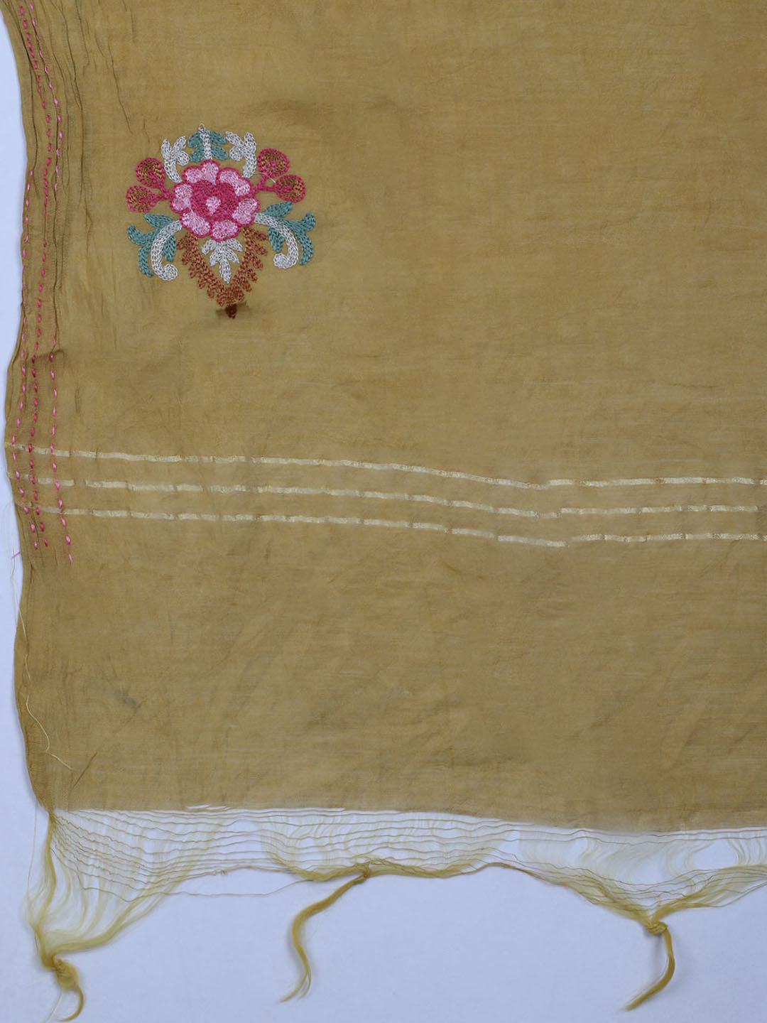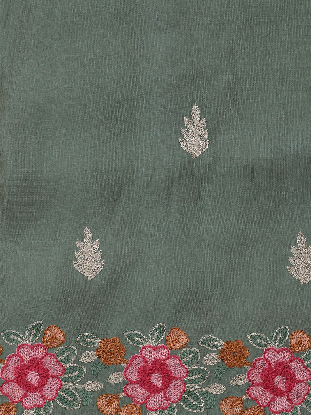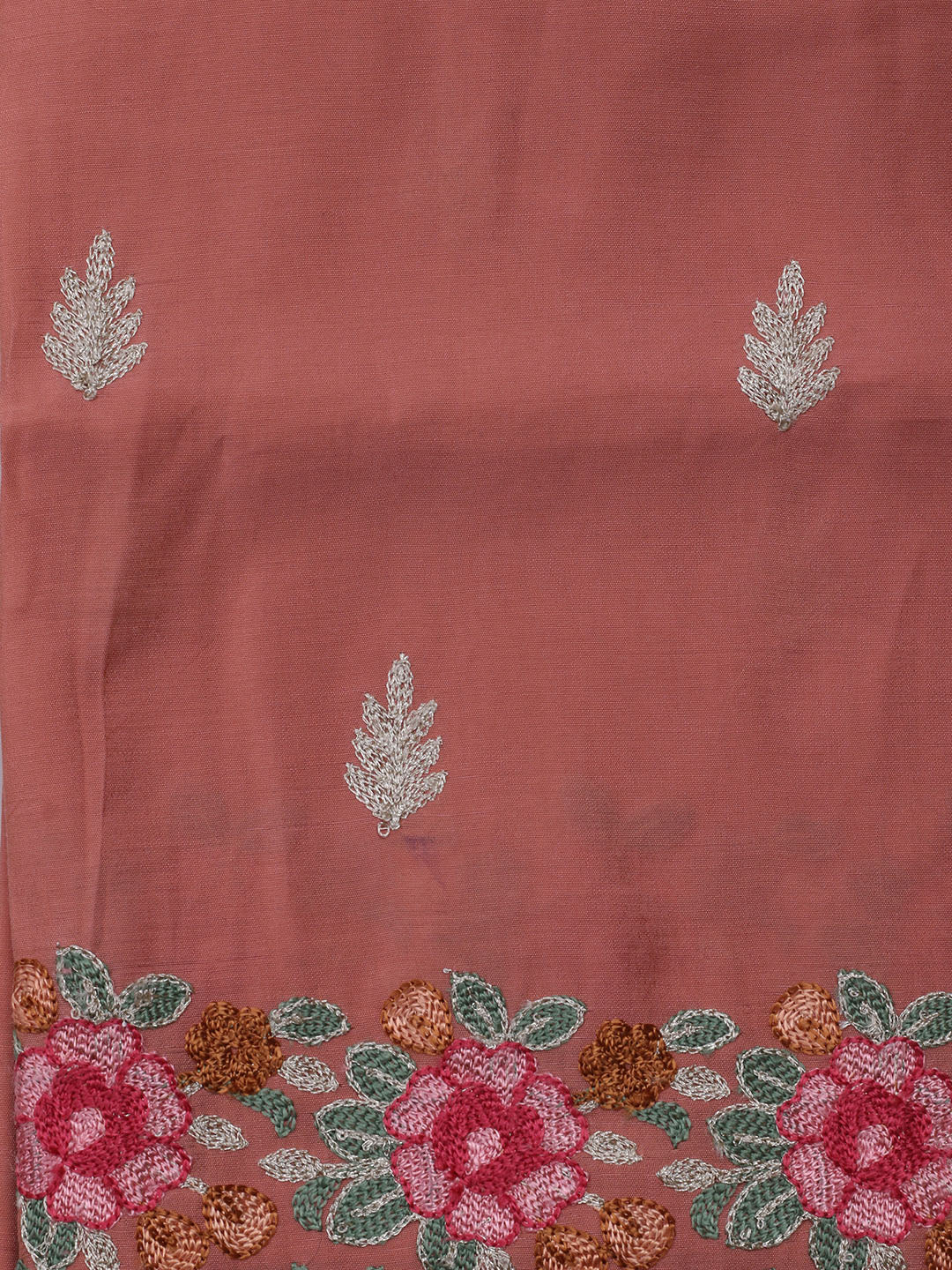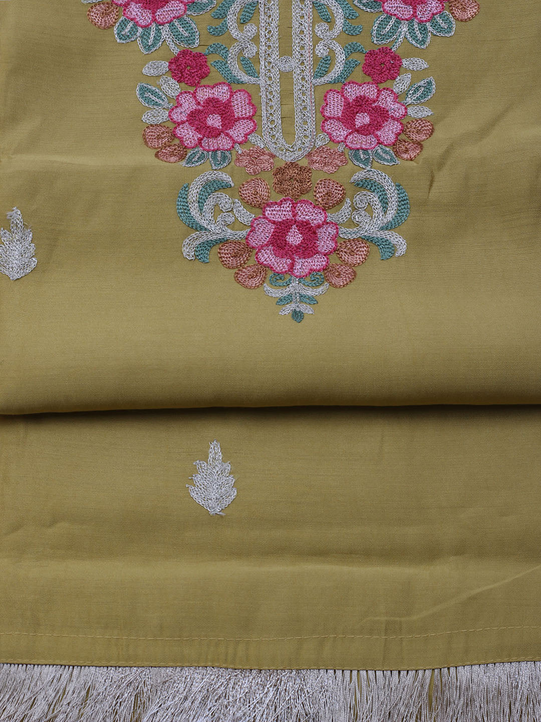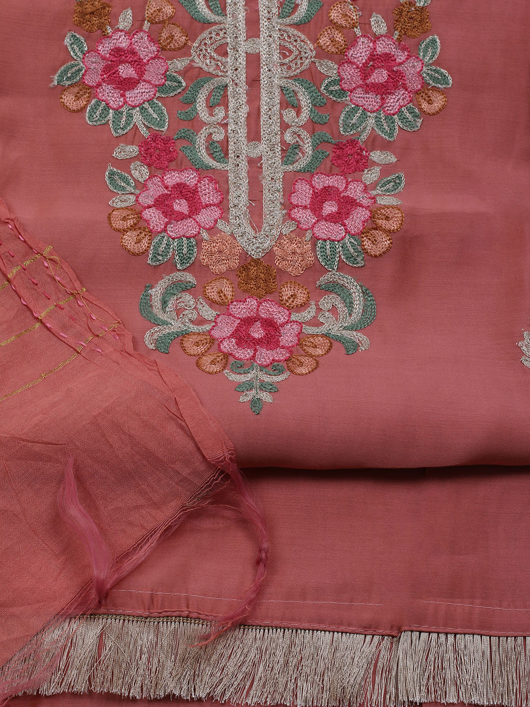 Neck Embroidered Chanderi Unstitched Suit With Dupatta
