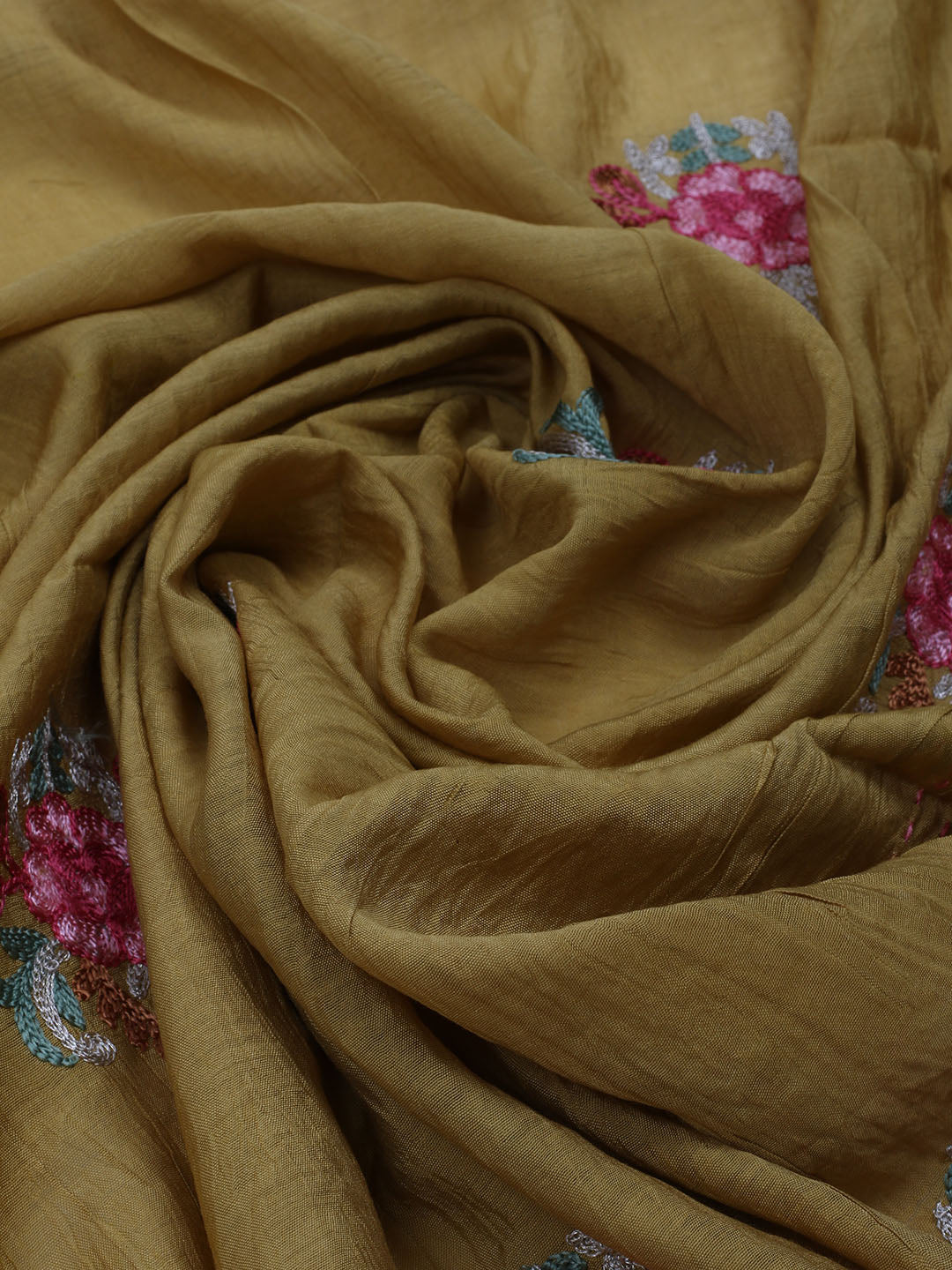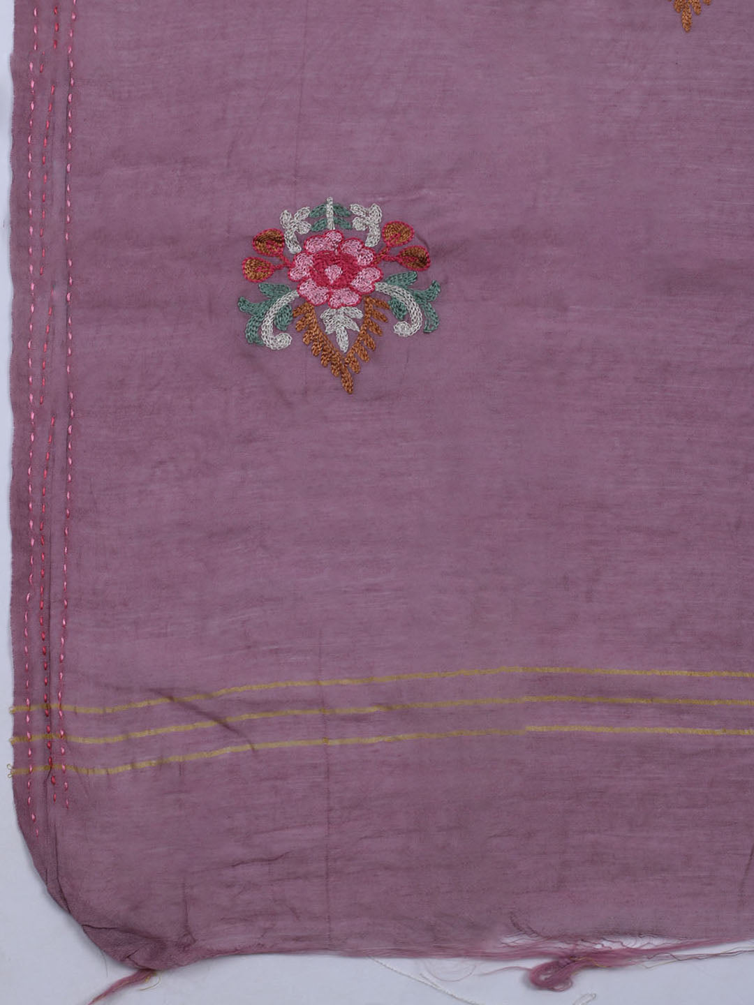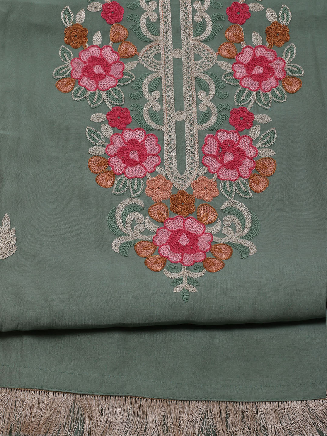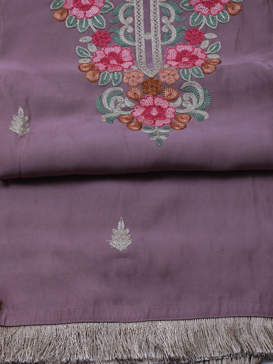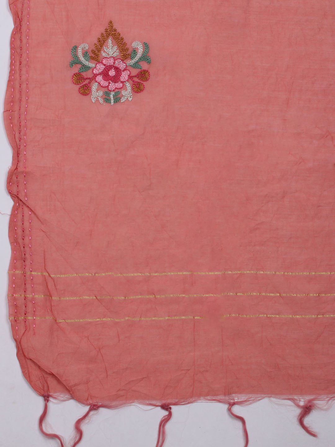 Neck Embroidered Chanderi Unstitched Suit With Dupatta