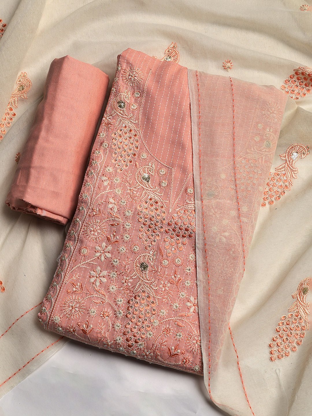 SKU: EF25-G-95-EX-VAANI-412-COT-SPC-PEACH LT-3PC-7MTR