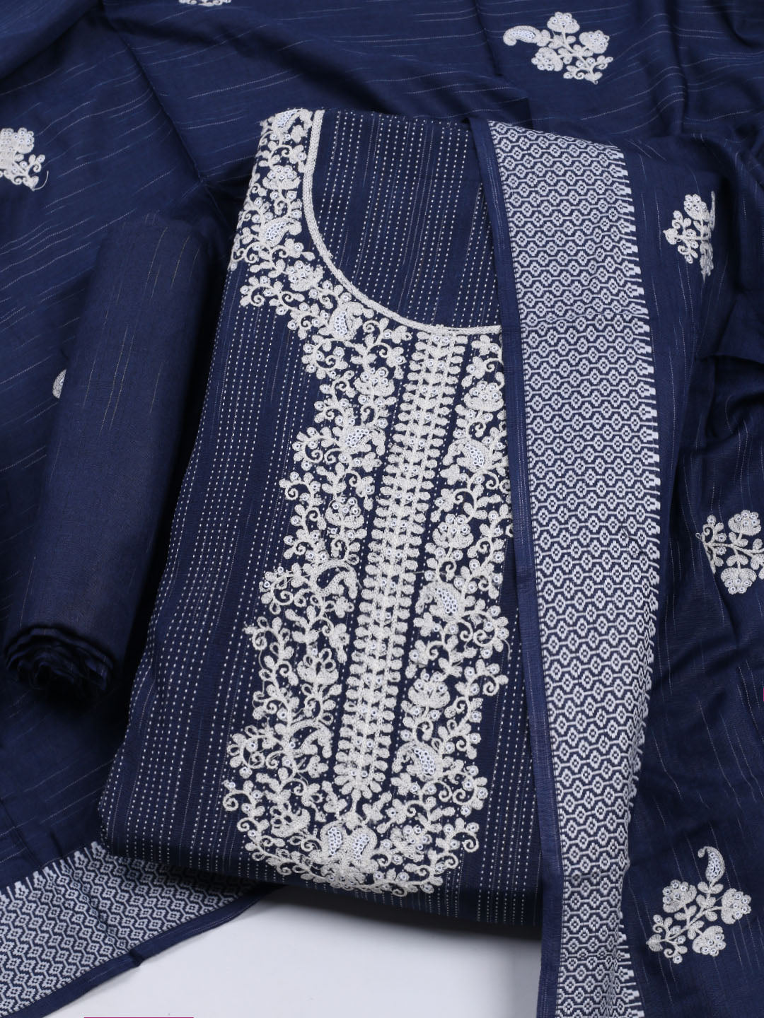 Neck Embroidered Cotton Blend Unstitched Suit With Dupatta