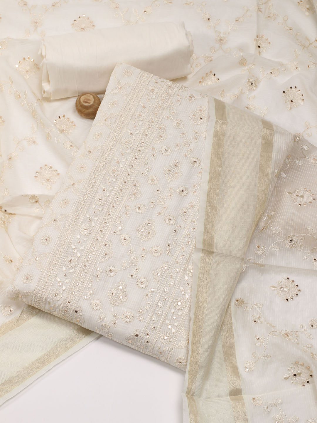 All Over Embroidered Chanderi Unstitched Suit Piece With Dupatta
