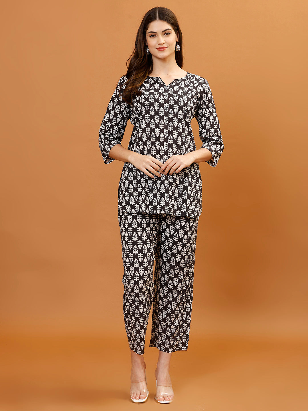 Digital Printed Cotton Blend Kurta With Pants