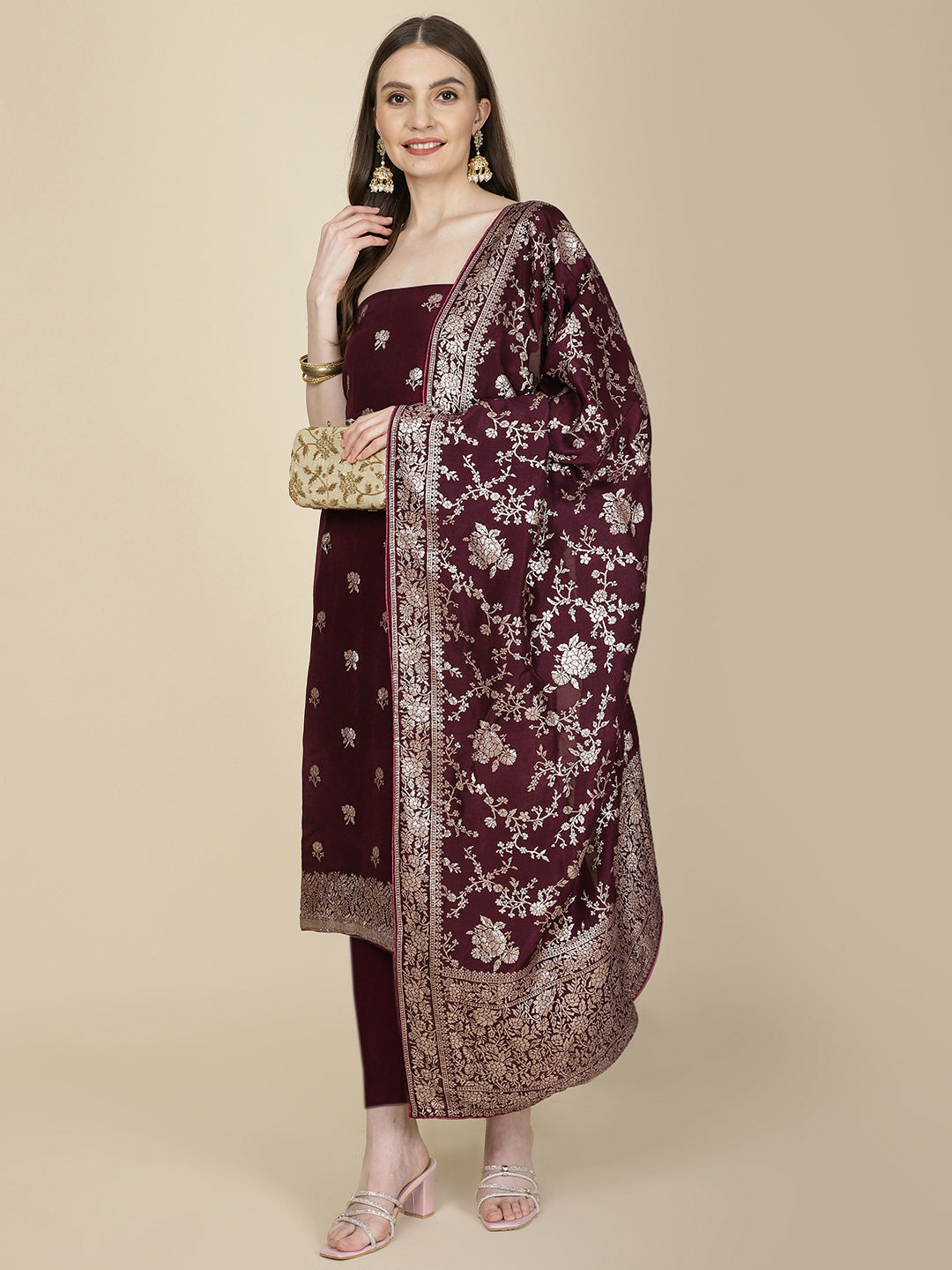 Woven Chanderi Unstitched Suit Piece With Dupatta
