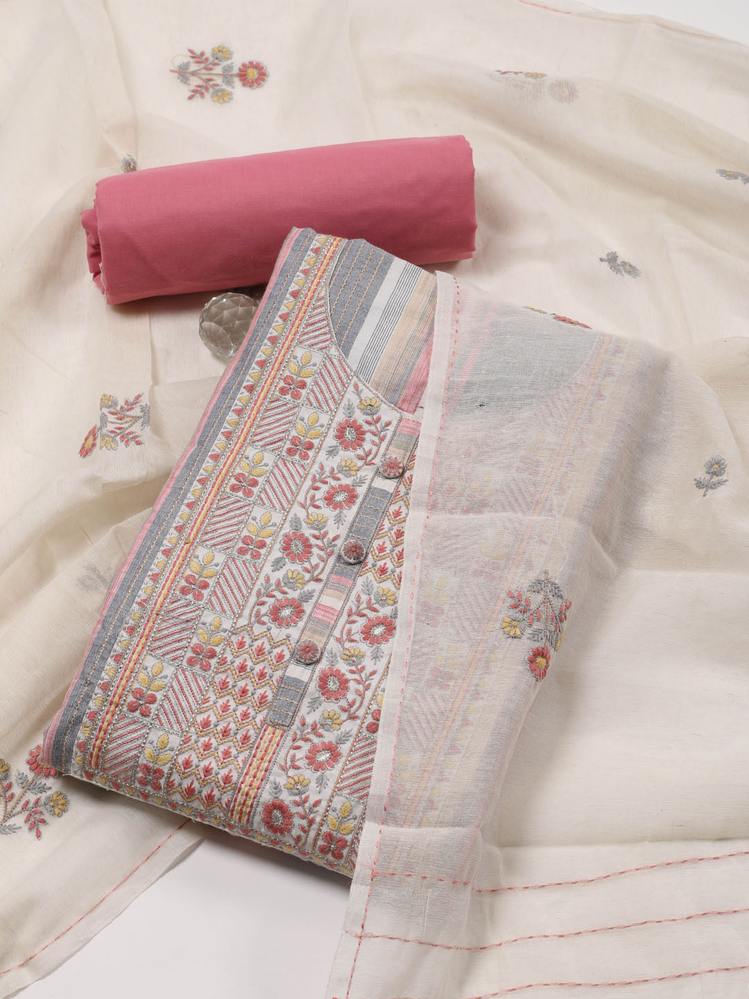 Neck Embroidery Cotton Blend Unstitched Suit With Dupatta