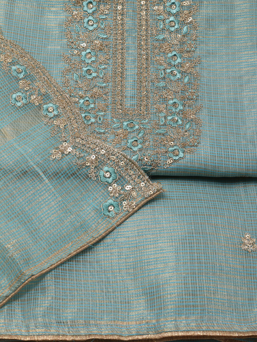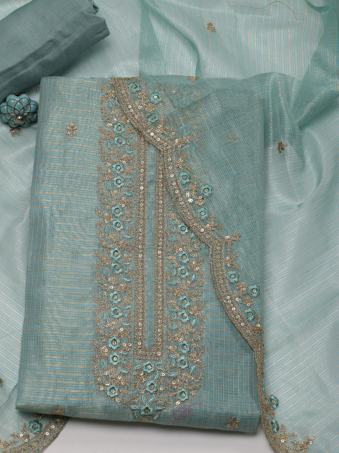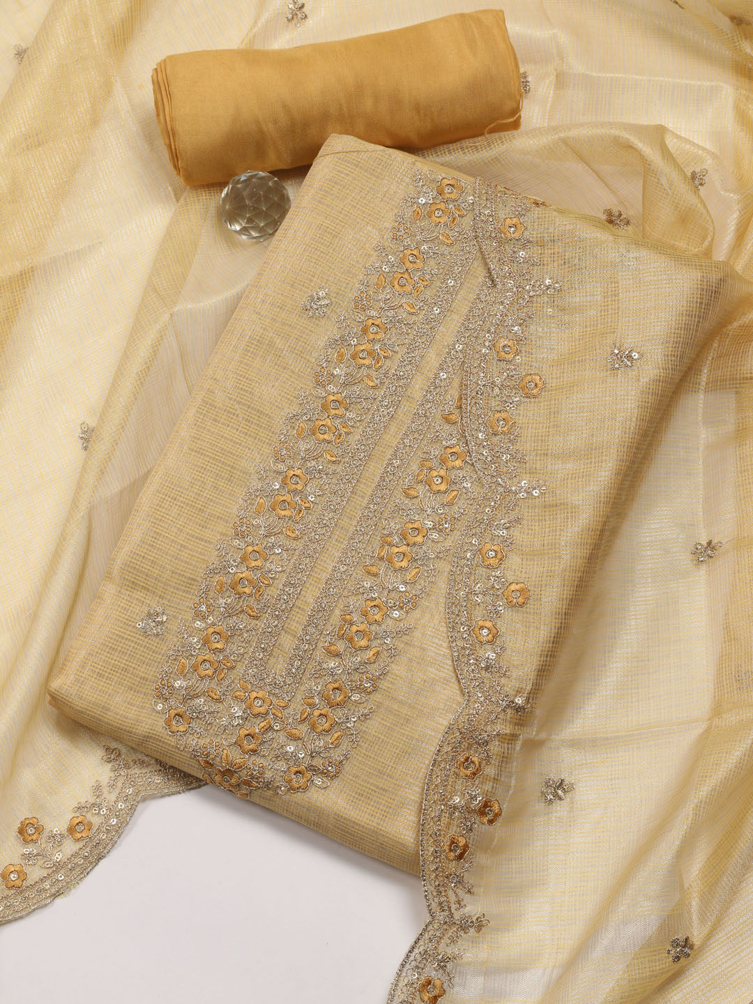 Neck Embroidered Chanderi Unstitched Suit Piece With Dupatta