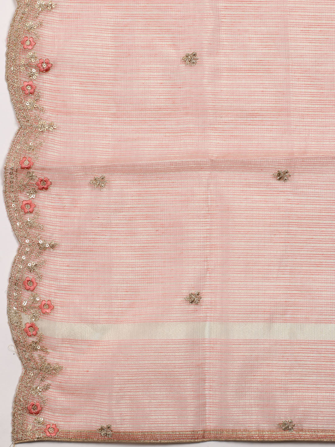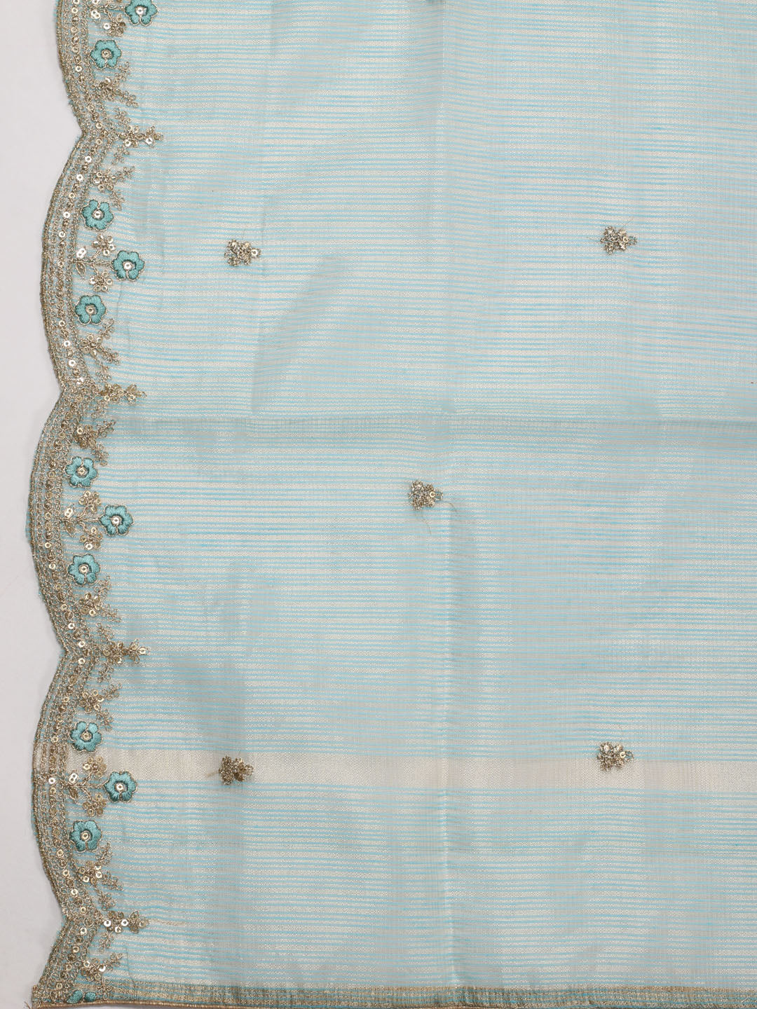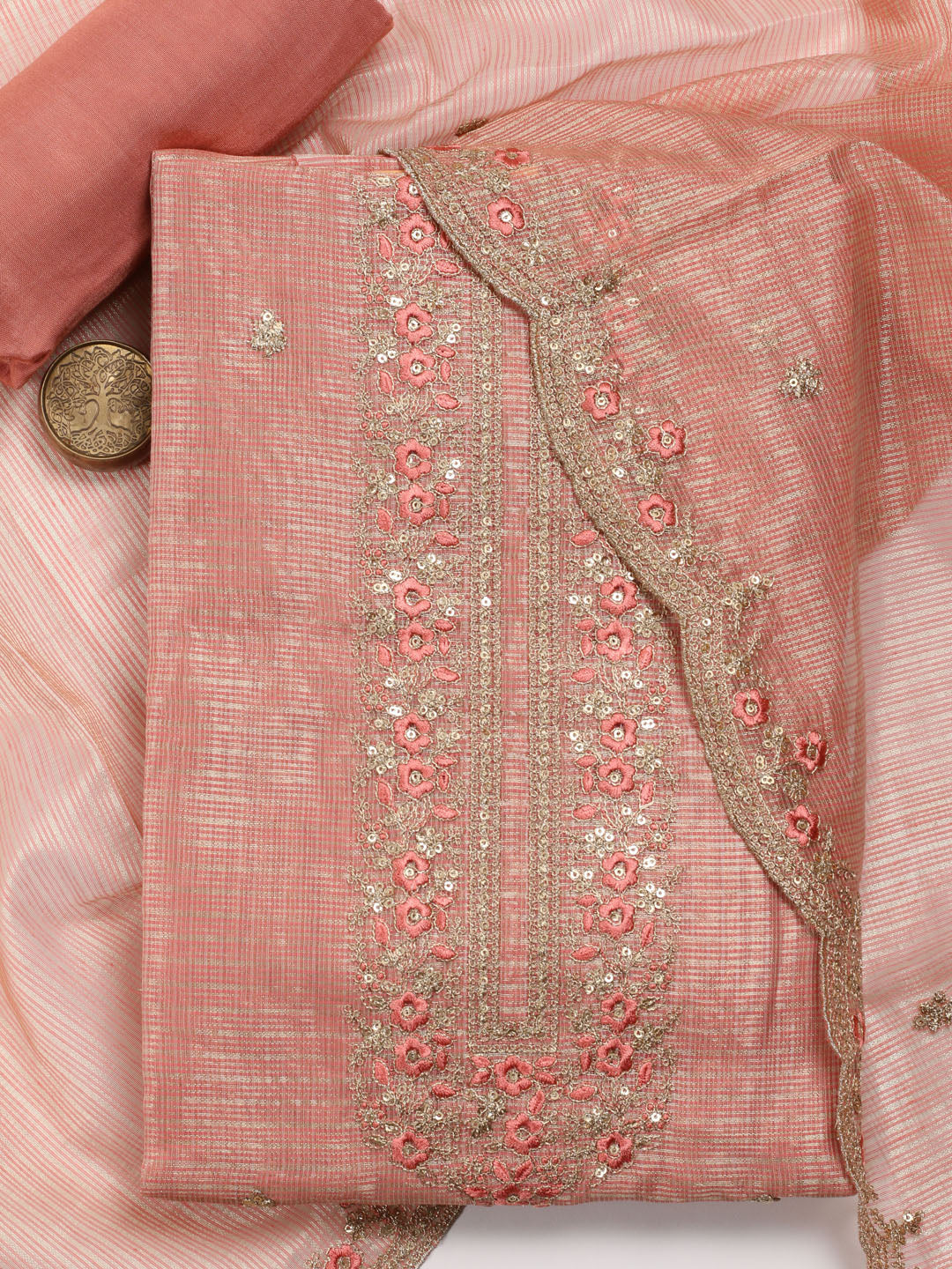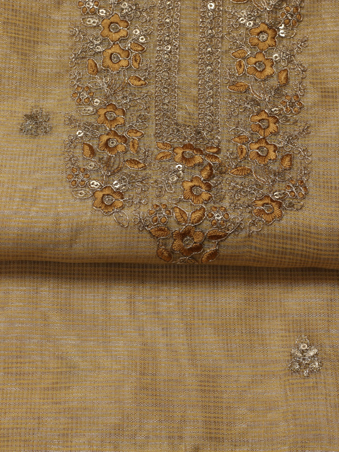 Neck Embroidered Chanderi Unstitched Suit Piece With Dupatta
